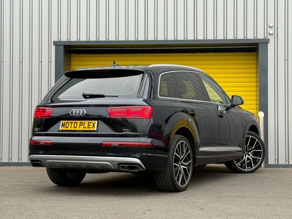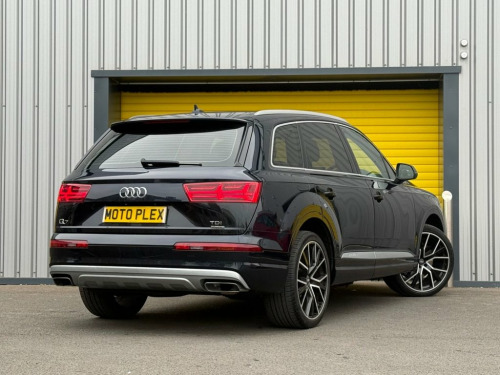 This 2017 Audi Q7 TDI V6 SE presents an exceptional opportunity with its remarkably low mileage of just 62,500 miles for a vehicle of its age, complemented by a clear vehicle history check. This impressive seven seater SUV is equipped with a powerful 3.0 litre diesel engine and a four wheel drive system, ensuring confident performance in all conditions. Its Euro 6 emission class signifies efficient operation. Notable features include large 22 inch alloy wheels, heads up display, a Bluetooth interface for seamless connectivity, Xenon Plus headlights with LED daytime running lights and adaptive functionality for enhanced visibility, and heated front seats for added comfort. The deluxe dual zone electronic climate control and light and rain sensor further contribute to a refined driving experience. The Audi Q7 TDI V6 SE offers a compelling blend of performance and practicality, highlighted by its swift 0-60mph acceleration in just 6.3 seconds, indicating a more dynamic driving experience compared to many similar vehicles. Its substantial towing weight of 2800 kg makes it a versatile choice for those needing to tow. Furthermore, its placement in a low insurance group is a significant advantage, suggesting lower running costs. This combination of low mileage, impressive performance, practical features, and cost saving benefits makes this Q7 a standout option. 19in Alloy Wheels - 5-Spoke Star Design, 6-Airbag System, 7 Seats, Aluminium Roof Rails, Aluminium Window Trims, Anti Theft Locking Wheel Bolts, Anti-Theft Alarm, Audi Connect Infotainment Services - 36 , Audi Connect Safety and Service, Audi Drive Select, Audi Hill Hold Assist, Audi Parking System Plus, Audi Pre-Sense City, Audi Smartphone Interface, Audi Sound System, Auto-Dimming Rear-View Mirror, Automatic Headlight Adjustment, Bluetooth Interface, Cloth Headlining, Colour Drivers Information System with 7, Cruise Control with Speed Limiter, Deluxe Dual-Zone Electronic Climate Cont, Door Mirrors - Heated-Electrically Adjus, Door Sills with Aluminium Inlays, Dynamic Suspension, ESC - Elec