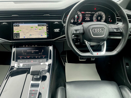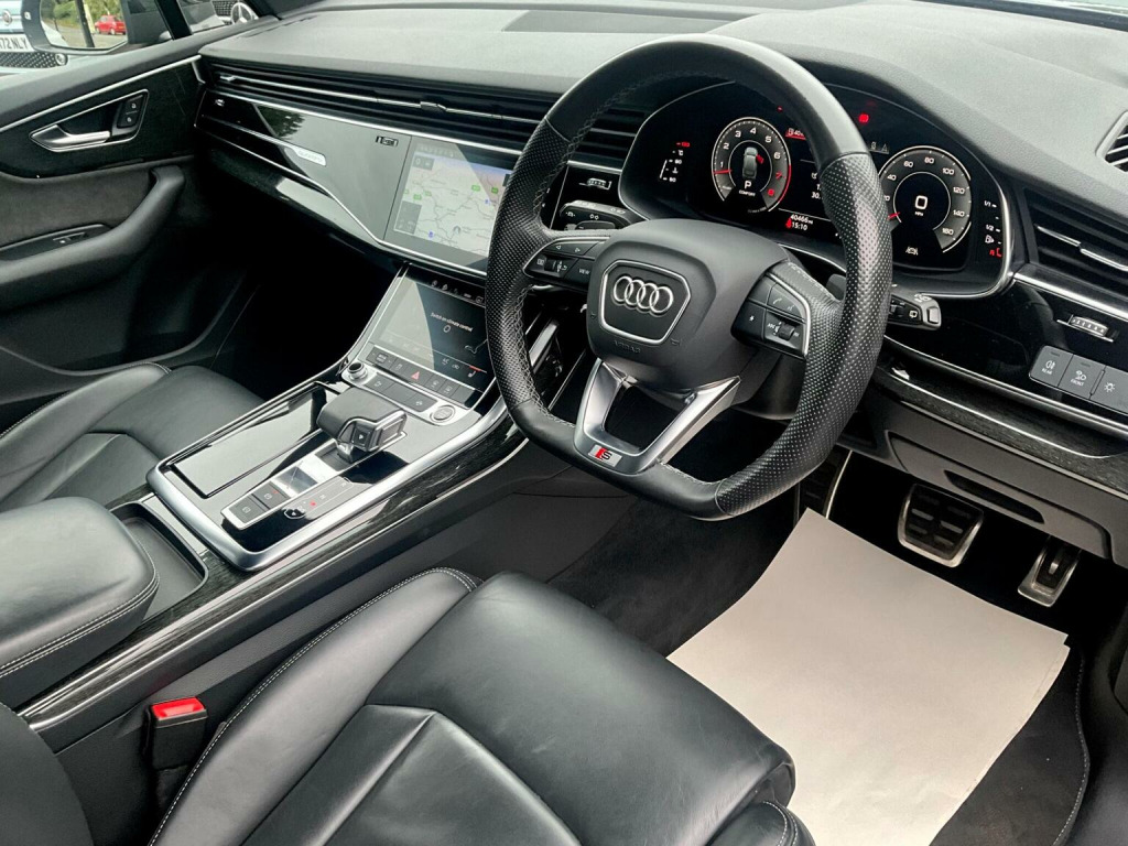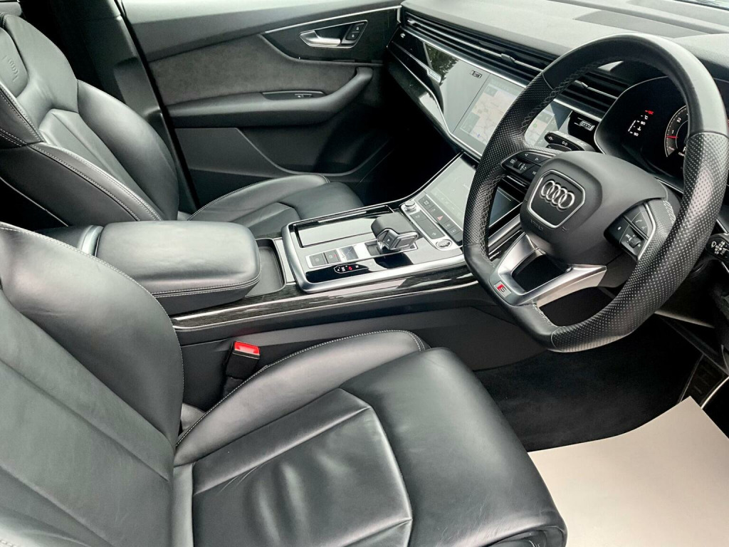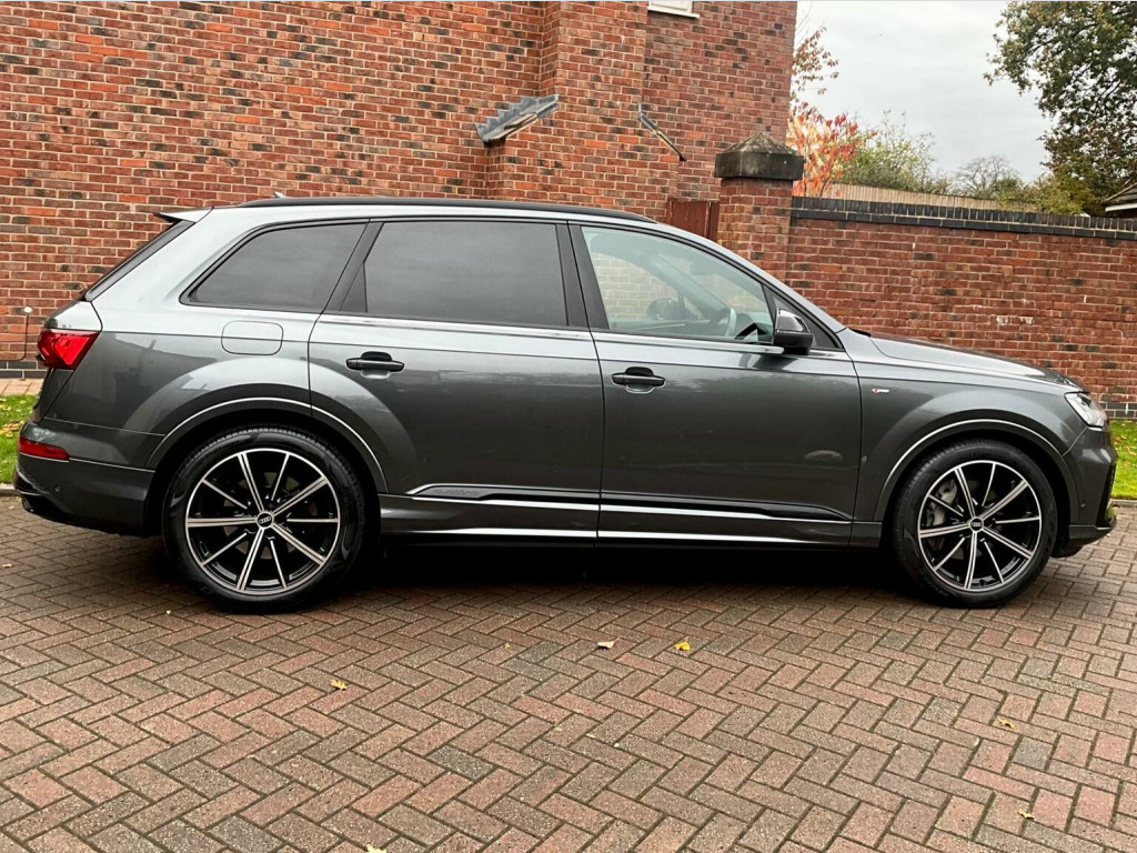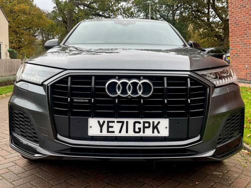 This 2022 Audi Q7 TFSI V6 Black Edition boasts a full dealership service history and has had only one owner from new, offering excellent provenance. This impressive seven seat SUV features a powerful 3.0 litre petrol engine paired with four wheel drive, ensuring confident performance in all conditions. The Black Edition trim enhances its striking appearance, while the Euro 6 emission class reflects its modern efficiency. Notable features include advanced Audi Matrix LED headlights with dynamic indicators, a helpful rear view camera with parking assistance, and heated front seats for added comfort. Inside, youll find deluxe four zone automatic climate control and the convenience of the Audi Phone Box with wireless charging. The Audi Q7 TFSI V6 Black Edition offers a compelling blend of performance and practicality. Its acceleration from 0 to 62mph in just 5.9 seconds highlights its dynamic capability, outperforming many similar vehicles. This model also benefits from a low insurance group, making it an economical choice. Furthermore, the generous boot space provides ample room for luggage or shopping, a significant advantage over other SUVs. With a substantial towing weight of 3500 kg, it is well equipped for towing caravans or trailers. This vehicle comes with a six month warranty for your peace of mind.