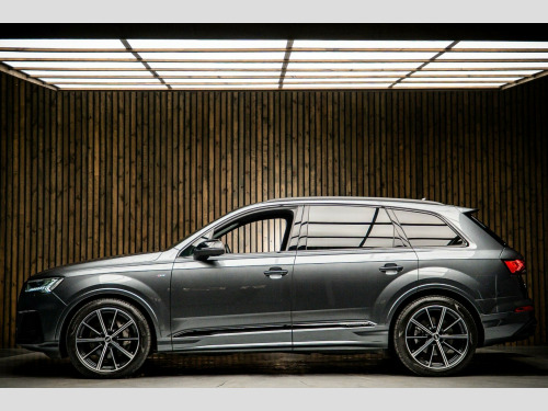 Boasting exceptionally low mileage for its age, this 2021 Audi Q7 TFSI V6 Black Edition presents a remarkable opportunity. With only one owner and a mere 19,506 miles on the clock, this Euro 6 compliant, four wheel drive model is equipped with a powerful 3.0 litre petrol engine and offers seating for seven. Its Black Edition trim ensures a striking presence, complemented by advanced features such as Audi Matrix LED headlights with dynamic front and rear indicators, and the Audi Parking System Plus with front and rear sensors, all designed to enhance your driving experience.This Audi Q7 stands out with its impressive performance, achieving 0-62mph in just 5.9 seconds, a testament to its dynamic capabilities. The Deluxe Four-Zone Automatic Climate Control provides personalised comfort for all occupants, while the Audi Smartphone Interface, compatible with both Android Auto and Apple CarPlay, keeps you seamlessly connected. Practicality is also a key strength, with generous boot space for all your needs and a substantial towing weight of 3500 kg. Furthermore, its position within a low insurance group makes it an even more attractive proposition for discerning drivers.. 21in Alloy Wheels - 10-Spoke Star Style Design Audi Sport in Black with Gloss-Turned Finish, 7 Seats, AMI - Audi Music Interface, Adaptive Air Sport Suspension, Airbags - Driver - Front Passenger - Front Side - Curtain, Anti Theft Locking Wheel Bolts, Anti-Theft Alarm, Audi Connect (3 Year Subscription From New), Audi Connect Safety and Service, Audi Drive Select, Audi Hill Hold Assist, Audi Matrix LED Headlights with Dynamic Front and Rear Indicators, Audi Parking System Plus, Audi Phone Box with Wireless Charging, Audi Pre-Sense Front, Audi Smartphone Interface, Audi Sound System, Audi Virtual Cockpit, Auto Dimming and Frameless Rear View Mirror, Black Roof Rails, Camera-Based Traffic Sign Recognition, Cloth Headlining in Black, Comfort Front Centre Armrest, Cruise Control with Speed Limiter, DAB Digital Radio, Deluxe Four-Zone Automatic Climate Control, Door Mirrors - Heated - Electrically Adjustable - Folding and Auto Dimming with Memory Function, ESC - Electronic Stabilisation Control inc ABS - ASR and EDL, Electric Windows - Front and Rear, Electromechanical Parking Brake, Electromechanical Power Steering - Speed-Sensitive Provides a Precise Steering Feel at High Speeds and Excellent Assistance when Parking., Extended Pedestrian Protection Measures, First Aid Kit and Warning Triangle, Front Sun Visors with Illuminated Vanity Mirrors, Front and Rear Floor Mats, Heated Front Seats, Illuminated Door Sill Trims with S Logo, Inlays - Polished Oak with Grey Finish, Keyless Go with Remote Central Locking, LED Daytime Running Lights, LED Interior Ambient Lighting Pack, LED Rear Lights, Lane Departure Warning, Luggage Compartment Cover, Luggage Compartment Sill Protection in Stainless Steel, MMI Navigation Plus including MMI Touch, Natural Voice Recognition, Pedals in Stainless Steel, Power Operated Tailgate, Privacy Glass, Rear View Camera, S Line Badges on the Front Wings, S Line Roof Spoiler, Seat Belt Monitoring, Steering Wheel - 3-Spoke Leather-Multi-function-Flat Bottomed-Sports-Shift Paddles, Titanium Black Door Mirrors, Titanium Black Styling Pack, Tool Kit, Tyre Pressure Loss Indicator, Tyre Repair Kit, Windshield with Heat Insulated Glass, Daytona Grey Metallic.