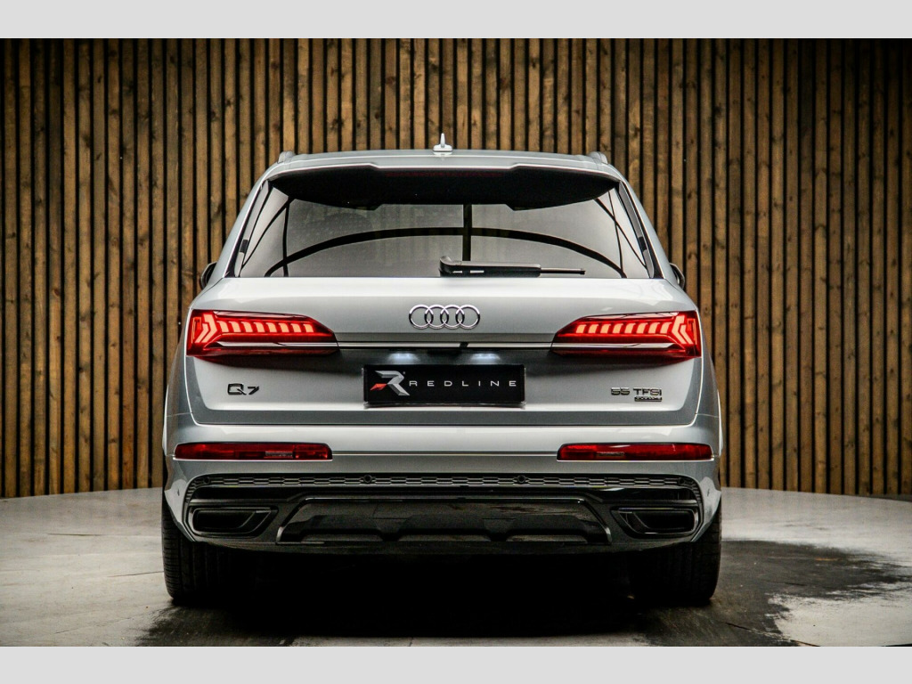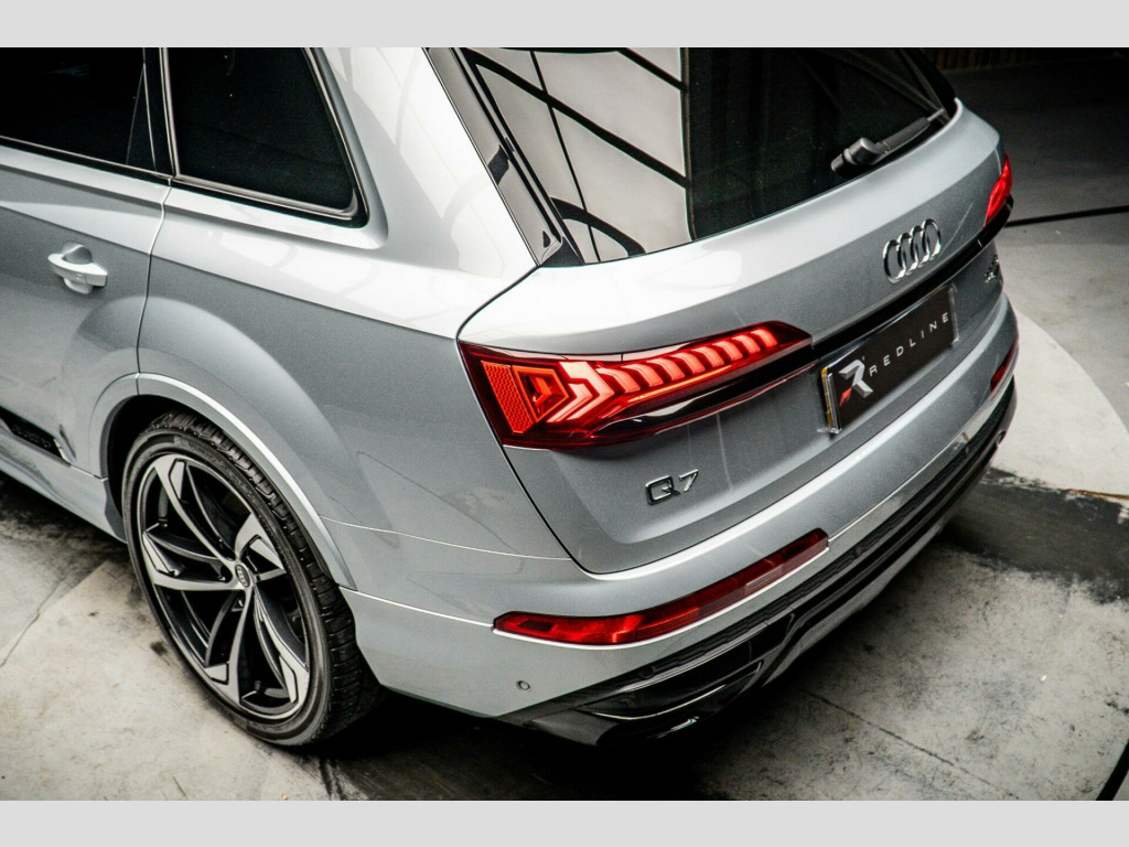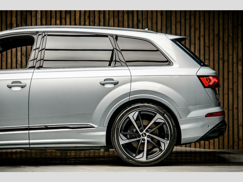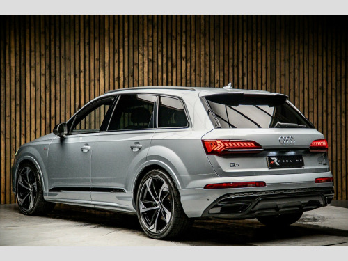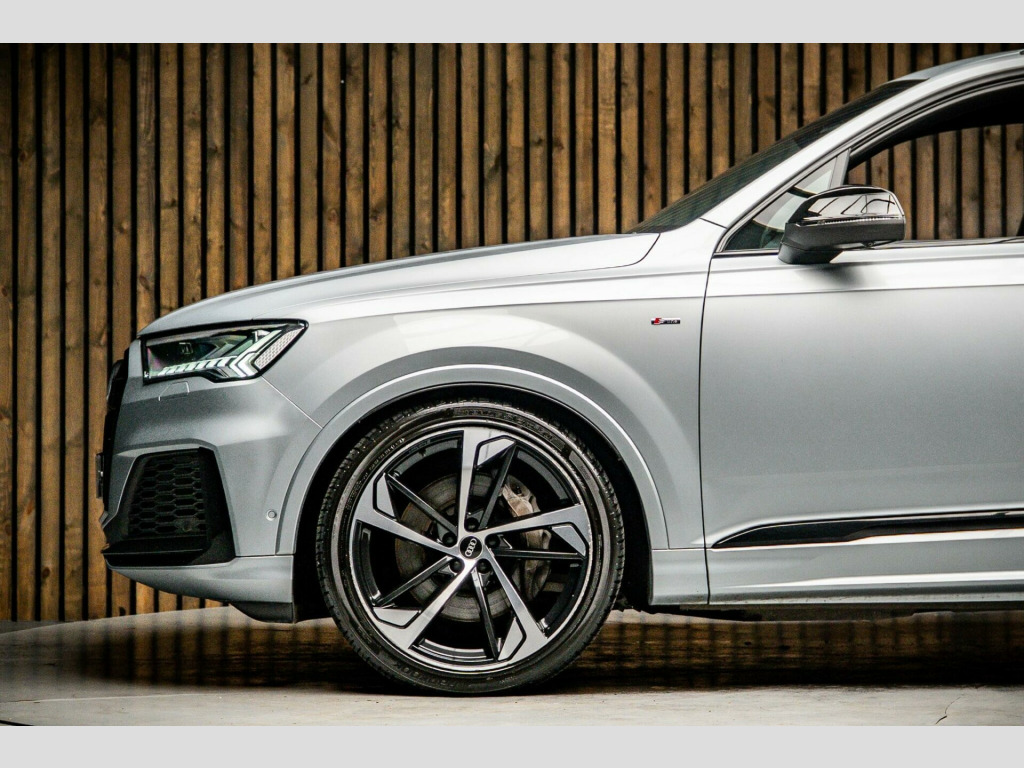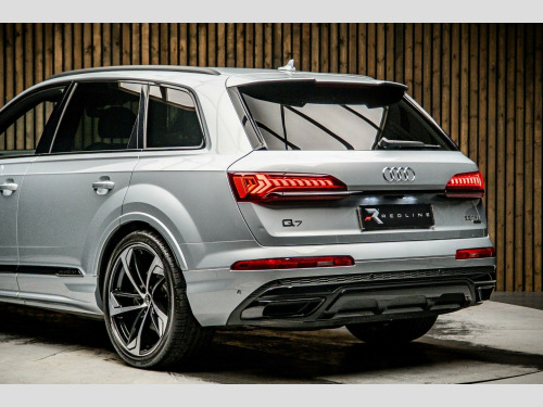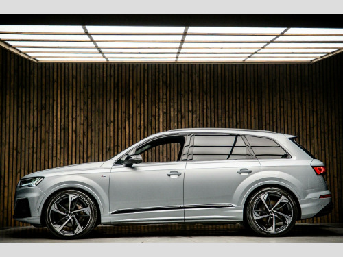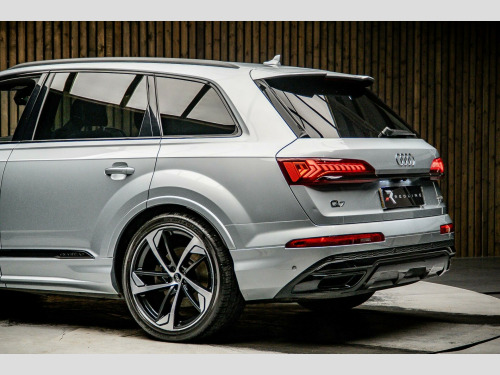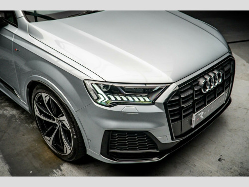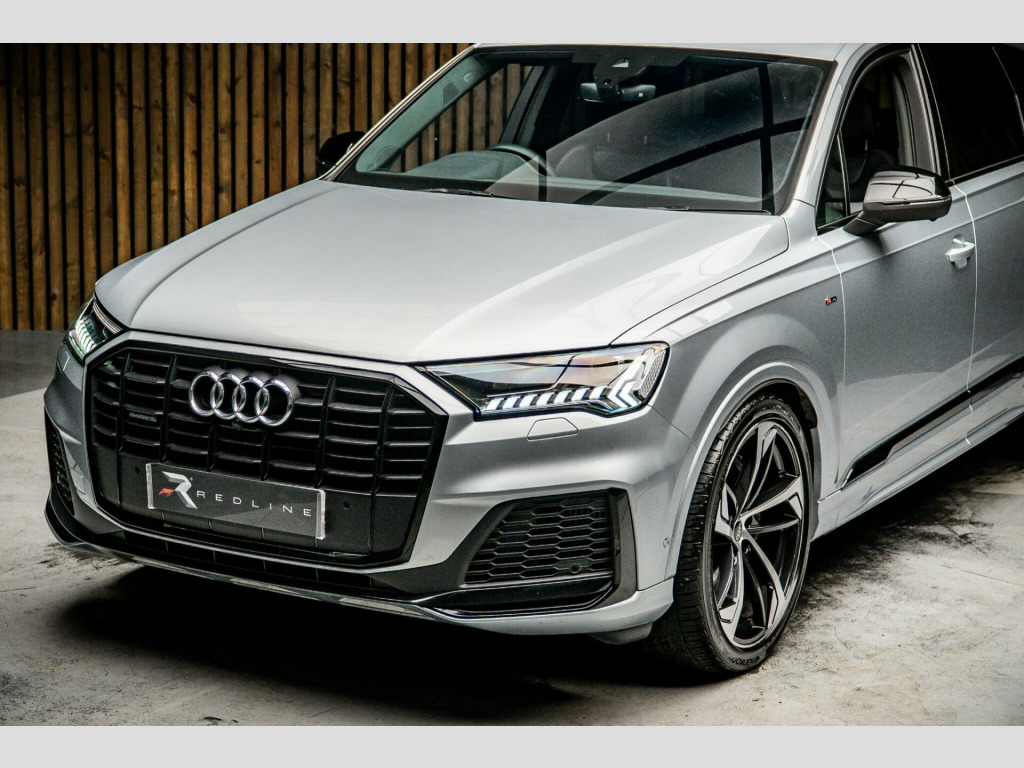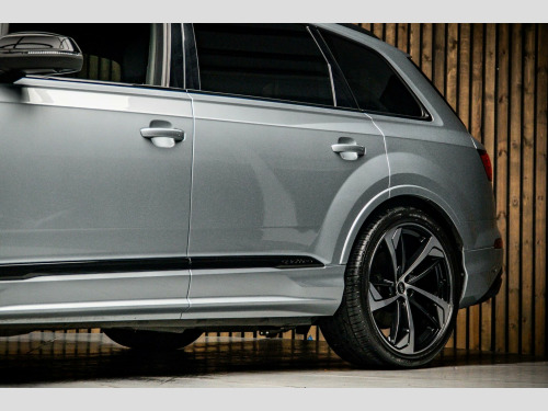 This 2023 Audi Q7 TFSI V6 Black Edition is a superb example, having had only one owner since new. This impressive four wheel drive SUV boasts a powerful 3.0 litre petrol engine and offers seating for seven occupants, making it ideal for families or those who require extra space. Its Euro 6 emission class ensures it meets current environmental standards. The Black Edition trim enhances its already striking appearance, and the vehicle is equipped with a generous towing weight of 3500 kg.Experience exceptional convenience with the Comfort and Sound Package, which includes a 360 degree camera for effortless parking and a premium branded sound system to elevate your journeys. The Audi Smartphone Interface seamlessly integrates your Android Auto or Apple CarPlay, while the Audi Parking System Plus, complete with front and rear sensors, along with a rear view camera, provides comprehensive parking assistance. Enjoy personalised comfort with the Deluxe Four Zone Automatic Climate Control. This Q7 also benefits from a low insurance group, a large boot space for all your needs, and a rapid 0-62mph acceleration time of just 5.9 seconds, demonstrating its superior performance compared to similar vehicles.. 21in Alloy Wheels - 9.5J 10-Spoke-Star Style Design in Black with Gloss turned Finish - Audi Sport, 7 Seats, AMI - Audi Music Interface, Adaptive Air Sport Suspension, Airbags - Driver - Front Passenger - Front Side - Curtain, Anti-Theft Alarm, Anti-Theft Wheel Bolts and Wheel Loosening Warning, Audi Connect (3 Year Subscription From New), Audi Connect Safety and Service - e-call, Audi Connect with Amazon Alexa Integration, Audi Drive Select, Audi Hill Hold Assist, Audi Parking System Plus, Audi Pre-Sense Front, Audi Smartphone Interface, Audi Sound System, Audi Virtual Cockpit, Auto Dimming and Frameless Rear View Mirror, Black Roof Rails, Bluetooth Interface, Camera-Based Traffic Sign Recognition, Cloth Headlining in Black, Comfort Front Centre Armrest, Cruise Control with Speed Limiter, DAB Digital Radio, Deluxe Four-Zone Automatic Climate Control, Door Mirrors - Heated - Electrically Adjustable - Folding and Auto Dimming with Memory Function, ESC - Electronic Stabilisation Control inc ABS - ASR and EDL, Electric Windows - Front and Rear, Electromechanical Parking Brake, Electromechanical Power Steering, Extended Pedestrian Protection Measures, First Aid Kit and Warning Triangle, Flat-Bottomed 3-Spoke Leather Multi-Function Sports Steering Wheel with Shift Paddles, Front Sun Visors with Illuminated Vanity Mirrors, Front and Rear Floor Mats, Fuel Tank 85L, Heated Front Seats, High Beam Assist, Illuminated Door Sill Trims with S Logo, Inlays - Polished Oak with Grey Finish, Keyless Go with Remote Central Locking, LED Daytime Running Lights, LED Headlights, LED Interior Ambient Lighting Pack, LED Rear Lights, Lane Departure Warning, Luggage Compartment Cover, Luggage Compartment Sill Protection in Stainless Steel, MMI Navigation Plus with MMI Touch, Natural Voice Recognition, Pedals in Stainless Steel, Power Operated Tailgate, Privacy Glass, Rear View Camera, S Line Roof Spoiler, Seat Belt Monitoring, Titanium Black Door Mirrors, Titanium Black Styling Pack, Tool Kit, Tyre Pressure Loss Indicator, Tyre Repair Kit, Windshield with Heat Insulated Glass, Comfort and Sound Package, Satellite Silver.