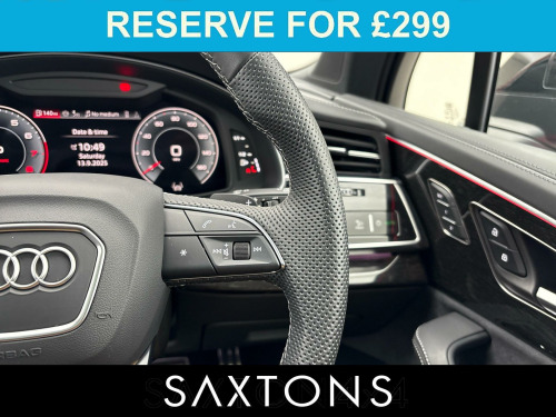 . LED Matrix Headlamps, Park Assist Remote, Night Vision Assist, LED Matrix Headlamps, LED Matrix Headlamps, Park Assist Plus, Adaptive Cruise Control, Traffic Assist, ISOFIX, Lane Keeping Aid, 4 Zone Climate Control, Air Suspension, ISOFIX, Electric Seat Adjustment for Both Front Seats with Memory System, Multi-Functional Sports Steering Wheel, Black Styling Package (Plus), Digital Audio Broadcasting, Audi Virtual Cockpit (Plus), 4-way Lumbar Support (Front Seats), S-Line Bumpers, Cruise Control Including Speed Limiter, Comfort Center Armrest, 3rd Seat Row, Quattro (With Self-locking Center Differential), Audi Pre Sense Front, Automatic Slip-Control Differential, Long Wheelbase, Panoramic Glass Roof, Gloss Black Exterior Mirrors, Comfort Key with SAFELOCK, Black Roof Rails, Roof Rack Detection System, Audi Side Assist, Camera-Based Traffic Sign Recognition, Privacy Glass, Audi Phone Box Light, Bang & Olufsen Premium Sound System with 3D Sound, Power Adjustable Exterior Mirrors, Heated Exterior Mirrors, Power Folding Exterior Mirrors, Auto Dimming Exterior Mirrors, Memory Exterior Mirrors, Scuff Plates with Aluminium Inserts in Front, Illuminated, with ''S'' Logo, Audi Drive Select, Multi-Colour Ambient Lighting Package, Electric Steering Wheel Adjustment, Multifunction Camera, 360-Degree Cameras, Audi Connect Emergency Call & Service with Audi Connect Remote & Control, Audi Connect Navigation & Infotainment, Separate Daytime Running Light, Park Assist with Parking Aid Plus, Audi Pre Sense Rear, Anti-theft Alarm System, Black Fabric Headliner, Driver and Front Passenger Airbag with Front Passenger Airbag Deactivation, Heated Front and Rear Seats, Increased Volume Fuel Tank, Head-up Display, Start-Stop System with Generative Braking, Electric Open/Close Luggage Compartment, Heat-Insulating Windshield Glass, Electric Parking Brake with Auto Hold Function, Auto-dimming Rear View Mirror, Curtain Airbag System for Front and Rear Passengers Including Side Airbags, Headlamp Washer System, Without partition Translation, Extended Pedestrian Protection Measures.