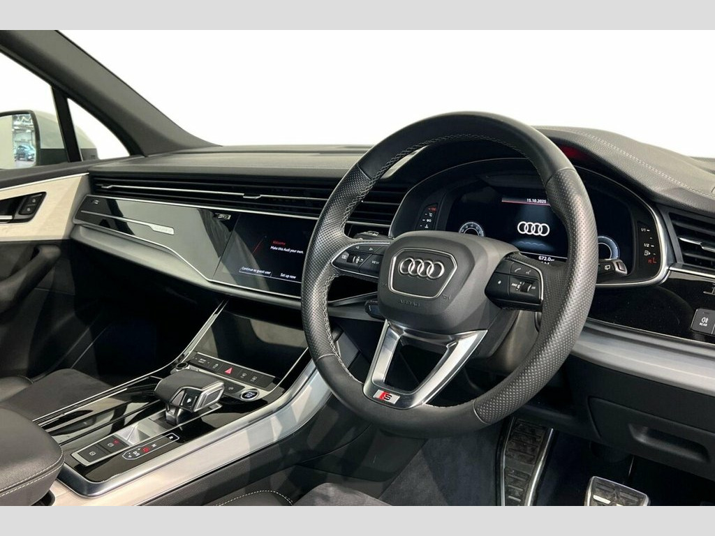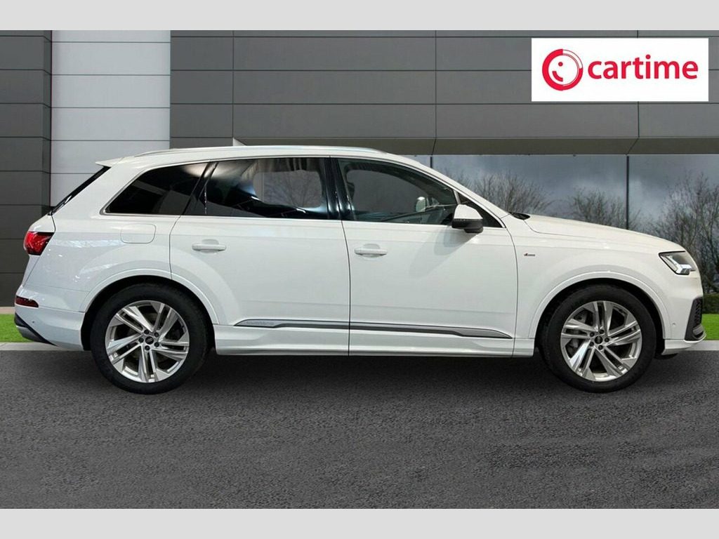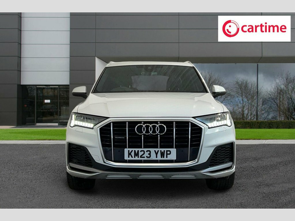 This 2023 Audi Q7 TFSI V6 S line boasts a clear vehicle history and has had only one owner, offering peace of mind. This impressive seven seat SUV features a powerful 3.0 litre petrol engine and Four Wheel Drive, ensuring capability in various conditions. As a Euro 6 compliant vehicle, it meets modern emissions standards. The S line trim enhances its already sophisticated presence, and with a substantial towing weight of 3500 kg, it is ready for demanding tasks. Inside, you will find a spacious cabin equipped with 2 Zone Automatic Climate Control for comfort, and the Audi Parking System Plus, complete with front and rear sensors and a rear view camera, makes manoeuvring effortless. Stay connected and charged with the Audi Phone Box Light offering wireless charging and the Audi Smartphone Interface, compatible with both Android Auto and Apple CarPlay. The Audi Q7 TFSI V6 S line offers a compelling driving experience, highlighted by its brisk acceleration from 0 to 60 mph in just 5.9 seconds, demonstrating its performance capabilities. Its large boot space provides exceptional practicality for families and adventurers alike, setting it apart from many other vehicles in its class. Furthermore, its placement in a low insurance group makes it an economical choice to own and run. This combination of performance, practicality, and cost effectiveness makes this Q7 a truly desirable option. 2-Zone Automatic Climate Control, 20in Alloy Wheels - 9J 5-Spoke-Turbine D, 4-Way Lumbar Support for Front Seats, 7 Seats, Adaptive Air Suspension, Airbags - Driver - Front Passenger - Fro, Aluminium Roof Rails, Aluminium Window Trims, AMI - Audi Music Interface, Anti-Theft Alarm, Anti-Theft Wheel Bolts and Wheel Looseni, Audi Connect (3 Year Subscription From N, Audi Connect Safety and Service - e-call, Audi Connect with Amazon Alexa Integrati, Audi Drive Select, Audi Hill Hold Assist, Audi Parking System Plus, Audi Phone Box Light with Wireless Charg, Audi Pre-Sense Front, Audi Smartphone Interface, Audi Sound System, Audi Virtual Cockpit, Auto Dimming and Frameless Rear View Mir, Body Col