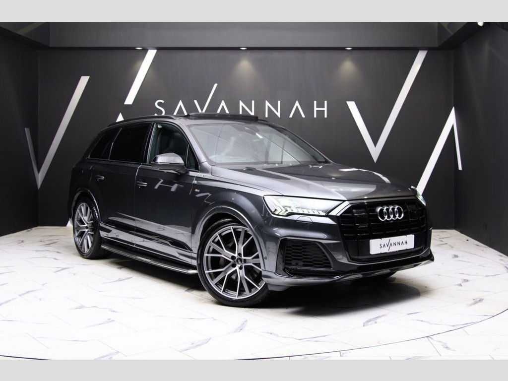 AUDI Q7 3.0 TFSI V6 55 Vorsprung SUV 5dr Petrol Tiptronic quattro Euro 6 (s/s) (340 ps) blends commanding power with refined elegance, presented here in striking Daytona Grey with bold 22in Audi Sport alloy wheels in a 5-V-spoke star design finished in matt titanium. This Vorsprung model is an exemplar of comfort, technology, and style—offering a luxurious seven-seat layout trimmed in Black Valcona leather S Super Sport seats with grey contrast stitching, ventilated and massaging front seats, and heated outer rear seats in the second row. A panoramic glass sunroof bathes the cabin in natural light, complementing inlays in polished grey oak and stainless-steel pedal detailing. The driver is treated to Audi Virtual Cockpit Plus, a head-up display, and MMI Navigation Plus with touch functionality, while the Audi Phone Box with wireless charging and Audi Smartphone Interface ensure seamless connectivity. Audi HD Matrix LED headlights with laser light, all-wheel steering, adaptive air sport suspension, and the titanium black styling pack complete the athletic profile. Enhanced further by safety and convenience features such as City Assist Pack, Tour Pack, power door closure, power-operated tailgate, and camera-based traffic sign recognition, the Q7 Vorsprung offers unrivalled prestige and practicality in one exceptional SUV. Valcona Leather - S Super Sport Seats - , Daytona Grey, Audi Virtual Cockpit Plus, 22in Alloy Wheels - 10.0J 5-V-Spoke - St, 7 Seats, AMI - Audi Music Interface, Adaptive Air Sport Suspension, Airbags - Driver - Front Passenger - Fro, All-Wheel Steering, Anti-Theft Alarm, Anti-Theft Wheel Bolts and Wheel Looseni, Audi Beam, Audi Connect - 3 Year Subscription, Audi Connect Safety and Service - e-call, Audi Drive Select, Audi HD Matrix LED Headlights with Audi , Audi Hill Hold Assist, Audi Music Interface in the Rear, Audi Parking System Plus, Audi Phone Box with Wireless Charging, Audi Pre-Sense Front, Audi Smartphone Interface, Audi Virtual Cockpit, Auto Dimming and Frameless Rear View Mir,