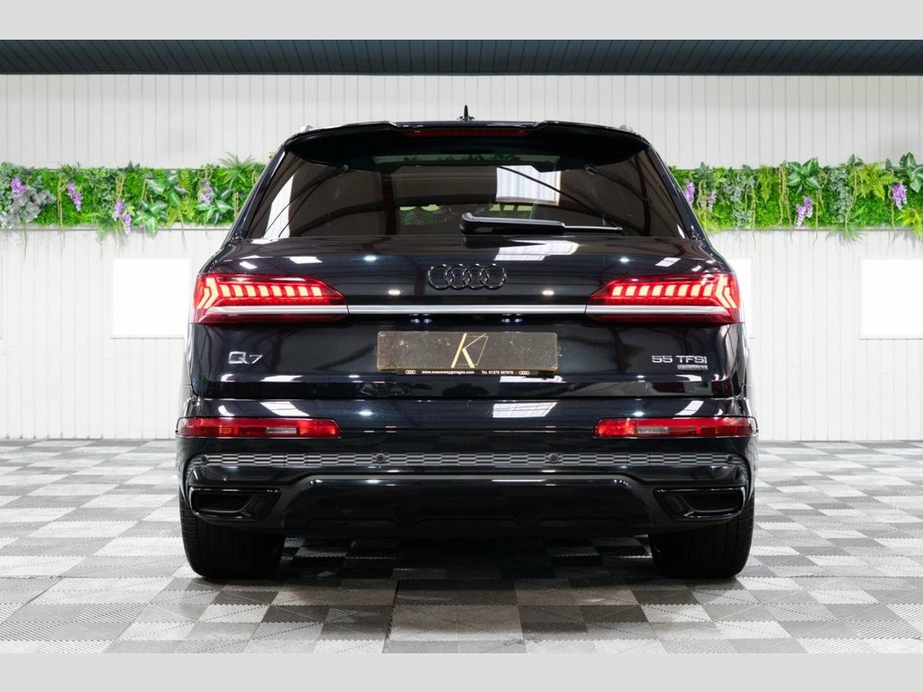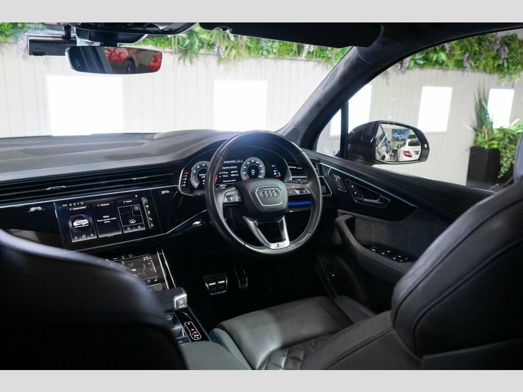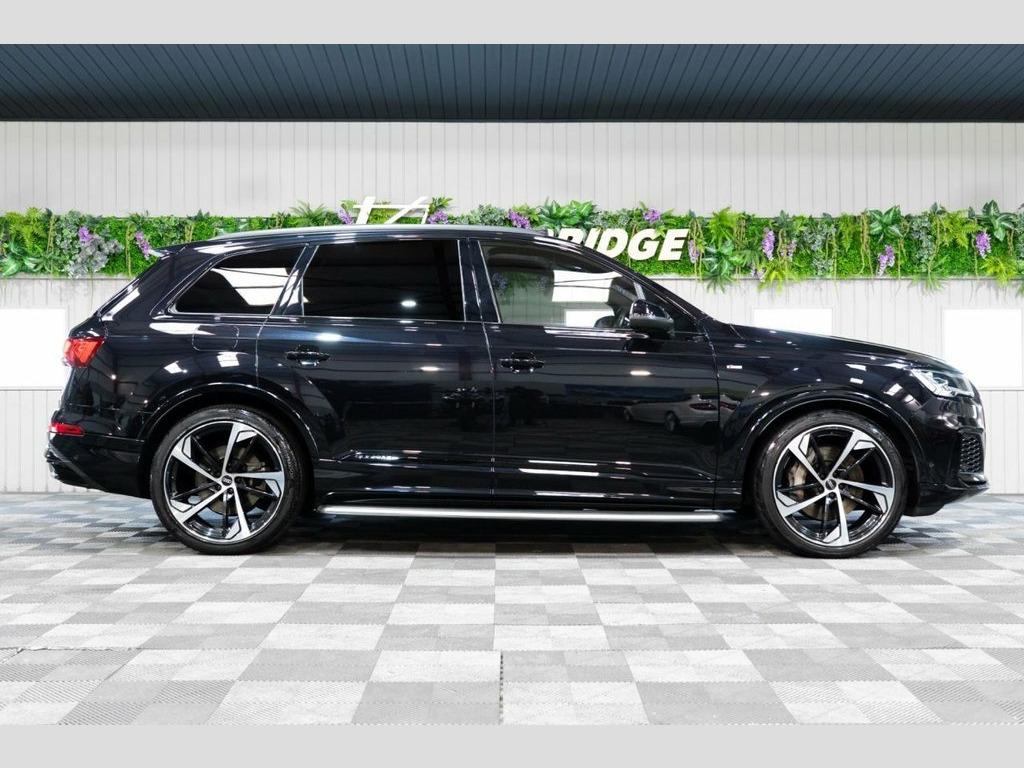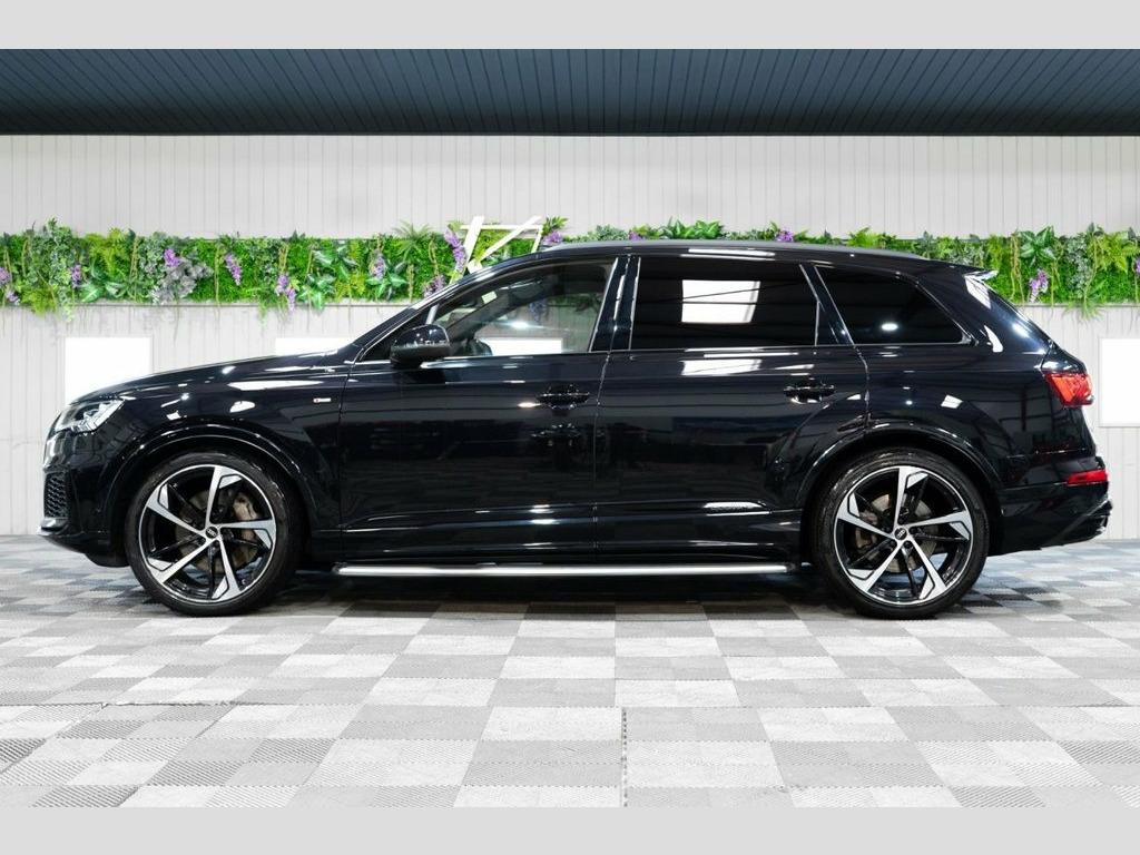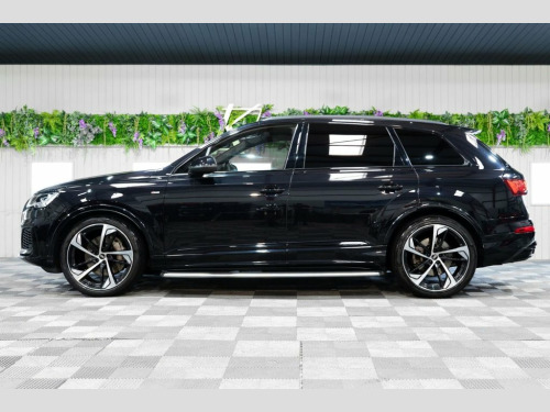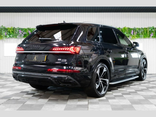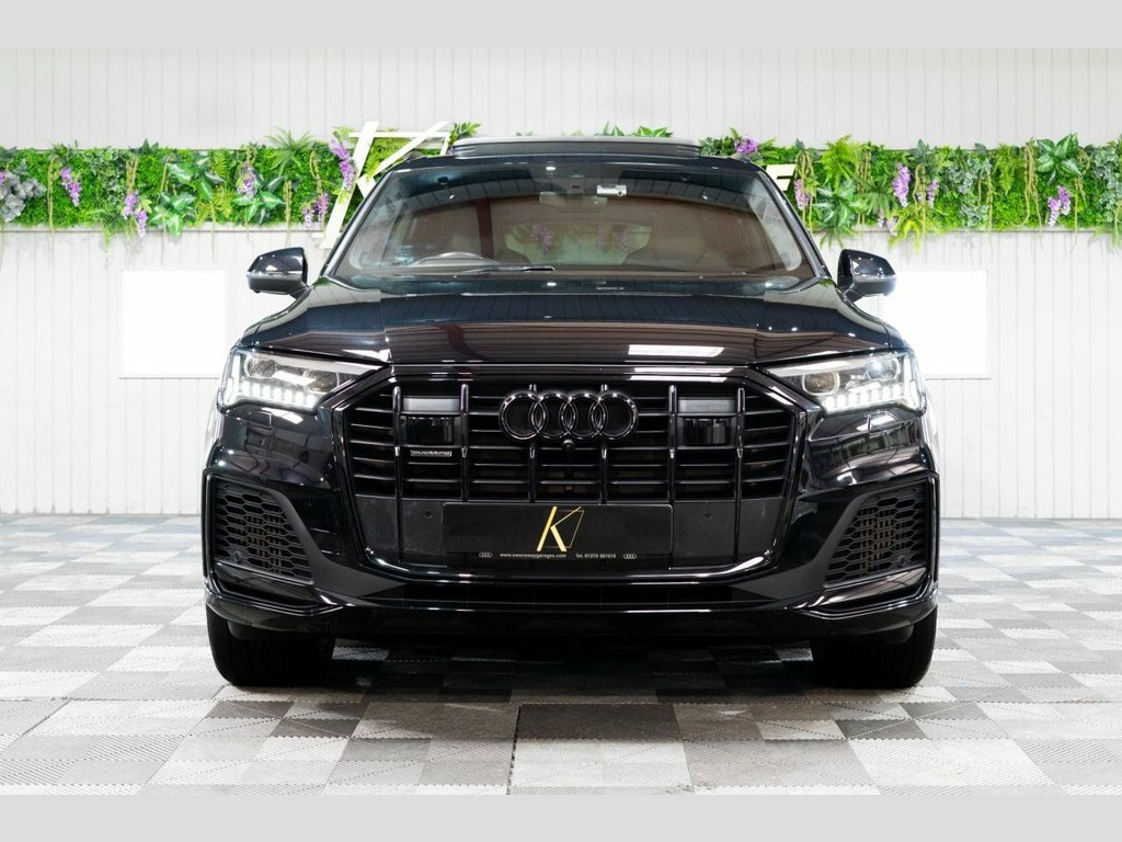This 2021 Audi Q7 Vorsprung 55 V6 TFSI Quattro 340 PS Tiptronic 3.0 has stunning 22" 5 arm trapezoid design alloy wheels. Air suspension gives you adjstable ride comfort. HD Matrix LED headlights with LED daytime running lights and LED rear lights are fitted providing full visibility of the road ahead in all weather conditions. Panoramic glass sunroof is fitted which is ideal on brighter days providing natural light throughout the cabin. 360 degree camera is fitted which is ideal for all maneuvers providing visibility all round the vehicle. Bang & Olufsen sound system is fitted which is ideal for all entertainment uses. Deluxe 4 zone climate control unit fitted which allows the driver to adjust temperatures to suit their preferences. Cruise control is fitted to this vehicle which provides extra comfort on those longer journeys allowing the driver to take their foot of the acceleration whilst just focusing on the steering of the vehicle. A gorgeous leather multi function plus steering wheel is fitted which controls the cockpit displays and allows to customize the different displays. Onto the multi media interface using the controls this allows the front passenger and driver to access the multimedia which includes the Drivers assist which is fitted with a variety of assists allowing a more comfortable and advanced driving experience. The Audi driver select allows the driver to adjust from comfort up to dynamic depending on their driving experience preferences. DAB/FM r Valcona Leather - S Super Sport Seats - , Mythos Black, 22in Alloy Wheels - 10.0J 5-Arm-Trapezoi, 2 USB-C Ports with Charging Functionalit, 22in Alloy Wheels - 10.0J 5-V-Spoke - St, 7 Seats, AMI - Audi Music Interface, Adaptive Air Sport Suspension, Airbags - Driver - Front Passenger - Fro, All-Wheel Steering, Anti-Theft Alarm, Anti-Theft Wheel Bolts and Wheel Looseni, Audi Beam, Audi Connect (3 Year Subscription From N, Audi Connect Safety and Service - e-call, Audi Connect with Amazon Alexa Integrati, Audi Drive Select, Audi Hill Hold Assist, Audi Music Interface in the Rear, Audi Parking System Plus, Audi Pre-Sense Front, Audi Smartphone Interface, Audi Virtual Cockpit, Auto Dimming and F
