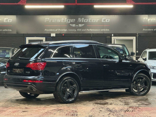 . 12V Power Socket - Centre Console, 12V Power Socket - Luggage Compartment, 12V Power Socket - Rear x2, 20GB Jukebox for Storing and Managing Music Files - WMA and MP3 Format, AMI - Audi Music Interface, Audi Connect, Charging Function for Various Mobile Devices, DAB Digital Radio, Display Screen Colour - 7in TFT High Resolution and Split Screen Mode for Route Information, DSP Sound System, Dynamic Route Guidance - TMC, European Navigation Data, FM-AM Radio, Hard Drive - 40GB, MMI Radio High, Mobile Telephone Preparation - High with Audi Connect, Satellite Navigation System - HDD Based, SD Card Reader x2, SDHC Card Reader x2, Single CD-DVD Player, Technology Package, Audi Parking System Advanced with Reversing Camera, Audi Parking System Rear with Acoustic Indicators, Colour Drivers Information System - DIS, Cruise Control, Efficiency Program in the Drivers Information System - DIS, Parking Sensors - Front, Trip Computer, Tyre Pressure Monitoring System, Voice Dialogue System, 21in Alloy Wheels - 5-Segment-Spoke Design, Aluminium Roof Rails, Anti Theft Locking Wheel Bolts, Bumpers - Contrasting, Door Mirrors - Heated-Electrically Adjustable-Folding, Double Glazing, Electric Windows - Front and Rear, LED Indicators, Privacy Glass, Rear Door Exit Lights, S Line Badges on Front Wings, S Line Badging, S Line Body Styling, Stainless Steel Running Boards, Tyre Repair Kit, Wheel Arch Extensions, Window Surrounds - Aluminium, Front Fog Lights, Headlights - Automatic Adjustment, Headlights - Bi-Xenon Plus, Headlights - Coming-Leaving Home Function, Headlights - Light Sensor, Headlights Washers, LED Daytime Running Lights, LED Rear Lights, 3D and Topographical Mapping, 7-Digit Postcode Recognition, Active Door Reflectors, Advanced 3D Building Display, Air Vent Sleeves - Aluminium Look, Ambient Lighting - Centre Console, Auto-Dimming Rear-View Mirror, Automatic Wipers with Rain Sensor, Cables x2 - MP3 Connection Including iPod, Car Jack, Cloth Headlining in Black, Comfort Front Centre Armrest, Cup Holders - Centre Console, Cup Holders in Rear Armrest x2, Cupholders in Front Centre Armrest, Cupholders x2 in Third Row, Door Panel - Alcantara, Door Sill Trims - S Line, Double Load Floor, Dual-Zone Electronic Climate Control, Electrically Adjustable 4-Way Lumbar Support, Folding Storage Compartment in Front Centre Armrest, Front and Rear Floor Mats, Front and Rear Footwell Lighting, Heated Front Seats, Illuminated Air Vents in B-pillar, Illuminated Ashtray in Rear, Illuminated Vanity Mirrors, Inlays - Matt Brushed Aluminium, Lighting Package, Luggage Compartment - Net, Luggage Compartment - Side Net, Luggage Compartment Cover, Pollen Filter, Power Operated Tailgate, Rear Centre Armrest, Remote Boot Release, Seats - Backrests - Storage Net, Seats - Electrically Adjustable, Seats - Front Electric Adjustment, Seats - Front Electric Height Adjustment, Seats - Split Folding for Second Row, Seats - Split Folding for Third Row, Steering Column - Rake and Reach Adjustment, Steering Wheel - 3-Spoke Leather-Multi-Function-Shift Paddles, Steering Wheel - Gear-Shift Paddles, Steering Wheel - Multi-function, Tailgate - Lid Closing Assistance Unit, Tailgate - Programmable Angle for the Luggage Compartment Lid, Through-Load Facility, Tool Kit, TP Memo - Automatically Saves Traffic News, Adaptive Air Suspension, EDL - Electronic Differential Lock, Power Steering - Servotronic Speed-Dependent, ABS - Anti-Lock Braking System, Acoustically and Visually Indicating Distances to Obstacles with Guiding Lines, Airbags - Driver, Airbags - Front Passenger, Airbags - Front Side System, Airbags - Sideguard Curtain, Airbags - Sideguard Curtain Rear, Alarm - Thatcham Category 1, EBD - Electronic Brakeforce Distribution, ESP - Electronic Stability Programme, First Aid Kit, Front Passenger Airbag Deactivation Switch, ISOFIX Child Seat Mounting for Front Passenger, ISOFIX Child Seat Mounting for Rear Seats, ISOFIX Child Seat Preparation for Rear Seats with Top Tether, Parkin.