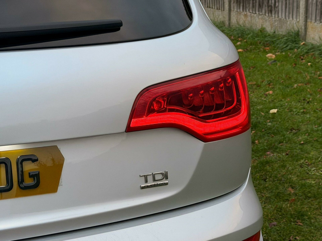 This 2012 Audi Q7 TDI V8 S line Plus presents a compelling proposition with its remarkably low mileage for its age, having covered just 99,500 miles, and a clear vehicle history check. This impressive seven seat SUV boasts a powerful 4.2 litre diesel engine paired with Audi's renowned four wheel drive system, ensuring confident performance in all conditions. The S line Plus trim level signifies a high specification, and this particular example includes desirable features such as heated front seats for enhanced comfort, acoustic parking sensors at the rear to aid manoeuvrability, and a high quality mobile telephone preparation system with Audi Connect for seamless connectivity. Dual zone electronic climate control allows for personalised cabin temperatures, while Bi Xenon Plus headlights provide excellent visibility.The Audi Q7 TDI V8 S line Plus offers a blend of performance and practicality, highlighted by its brisk 0 to 62mph acceleration in just 6.4 seconds, a figure that sets it apart from many vehicles in its class. This capability is matched by its substantial towing weight of 3200 kg, making it ideal for those needing to tow caravans or trailers. Furthermore, the generous boot space ensures ample room for luggage, shopping, or sports equipment, underscoring its versatility as a family vehicle. noramic glass sunroof, visibility package, panoramic sunroof - dark tinted, audi exclusive carpets, audi exclusive controls package, comfort package, extended leather package advanced, load package, 12v power socket, 12v power socket - luggage compartment, 21in alloy wheels - 5-segment-spoke design, abs - anti-lock braking system, ami - audi music interface, acoustic parking system - rear, adaptive air suspension, airbags - driver, airbags - front passenger, airbags - front side system, airbags - sideguard curtain, alarm - thatcham category 1, audi parking system advanced, audi parking system plus, auto-dimming rear-view mirror, automatic wipers with rain sensor, black roof rails, cd/radio, cloth headlining in black, colour drivers information system - dis, comfort front centre armrest, cruise control, cup holders - centre console, door mirrors - heated-electrically adjustable-folding, dual-zone electronic climate control, ebd - electronic brakeforce distribution, esp - electronic stability programme, electric windows - front and rear, electrically adjustable 4-way lumbar support, front fog lights, headlights - automatic adjustment, headlights - bi-xenon plus, headlights washers, heated front seats, isofix - front passenger second and third row seats with passenger airbag deactivation switch, inlays - matt brushed aluminium, lighting package, mmi radio plus with dsp sound system, mobile telephone preparation - high with audi connect, power operated tailgate, power steering - servotronic speed-dependent, privacy glass, remote central locking, satellite navigation system - hdd based, seats - front electric adjustment, stainless steel running boards, steering wheel - 3-spoke leather-multi-function-shift paddles, steering wheel - multi-function, technology package - high