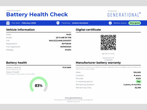 This 2020 Audi Q7 55 TFSI e Quattro S Line 5dr T Estate is currently available for £29,999 in Horsham Surrey with P/ElecPlug engine and Automatic gearbox. For more information or to arrange a viewing, click here to send us an email using form below.