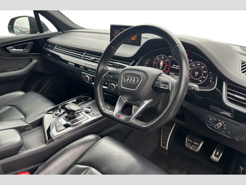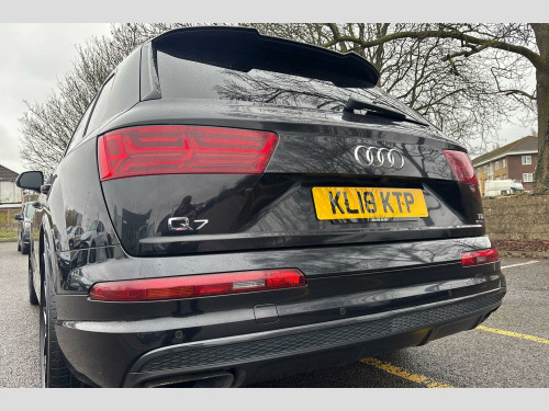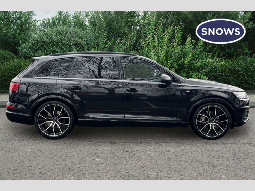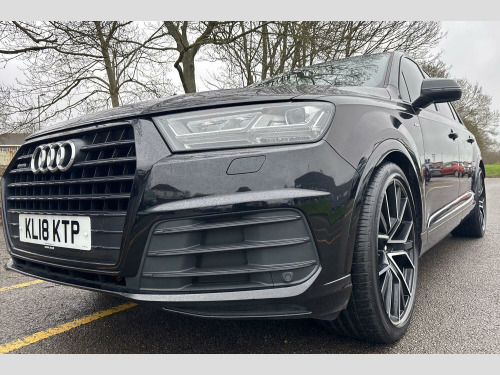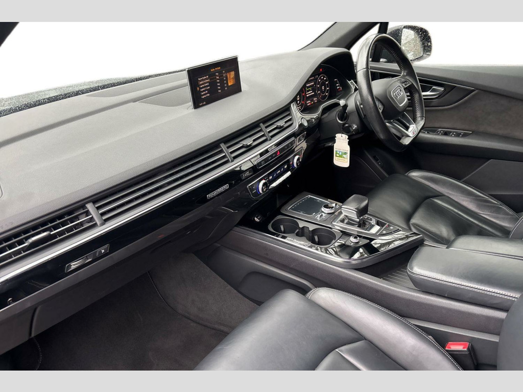 The Black Edition trim enhances the Q7's already striking appearance and includes a range of desirable features. Enjoy the convenience of Bluetooth connectivity, Deluxe Four Zone Automatic Climate Control for personalised comfort, and the Audi Parking System Plus with front and rear sensors to aid manoeuvring. For a more premium experience, this Q7 features heated front seats and a panoramic glass sunroof that opens up the cabin. Its acceleration from 0-62mph in just 6.5 seconds is a notable performance highlight, indicating a more dynamic driving experience compared to similar vehicles. Furthermore, its low insurance group makes it an economical choice for many drivers. With a substantial towing weight of 3500 kg, this Audi Q7 is as practical as it is refined. 21in Alloy Wheels - 5-Spoke Blade Design Anthracite Black-Polished-Gloss Turned Finish, 6-Airbag System, 7 Seats, Adaptive Air Sport Suspension, Anti Theft Locking Wheel Bolts, Anti-Theft Alarm, Audi Connect Infotainment Services - 36 Month Trial, Audi Connect Safety and Service, Audi Drive Select, Audi Hill Hold Assist, Audi Parking System Plus, Audi Pre-Sense City, Audi Smartphone Interface, Audi Sound System, Audi Virtual Cockpit, Auto-Dimming Rear-View Mirror, Automatic Headlight Adjustment, Bluetooth Interface, Cloth Headlining in Black, Colour Drivers Information System with 7in High-Resolution TFT Screen, Cruise Control with Speed Limiter, Deluxe Four-Zone Automatic Climate Control, Door Mirrors - Heated-Electrically Adjustable-Folding, ESC - Electronic Stabilisation Control inc ABS - ASR and EDL, Electric Windows - Front and Rear, Electrically Adjustable 4-Way Lumbar Support, Electrically Adjustable Front Seats, Electromechanical Parking Brake, Email and Text Messages can be Displayed on your Vehicles MMI, Extended LED Interior Lighting Package - Multi-Coloured, First Aid Kit and Warning Triangle, Front Centre Armrest - Adjustable, Front and Rear Floor Mats, Heated Front Seats, High-Beam Assist, Hill Descent Control, ISOFIX Child Seat Mounting, Interior Light Package, Keyless Go, LED Headlights with LED Rear Lights and Dynamic Rear Indicators and High-Beam Assist, Light and Rain Sensor, Luggage Compartment Sill Protection in Stainless Steel, MMI Navigation Plus including MMI Touch, MMI Radio Plus and DAB, Online Media Streaming - Audi MMI Connect App Required, Panoramic Glass Sunroof, Pedals in Stainless Steel, Power Operated Tailgate, Power Steering, Privacy Glass, Rear View Camera, Remote Central Locking, Seat Belt Monitoring, Steering Wheel - 3-Spoke Leather-Multi-function-Flat Bottomed-Sports-Shift Paddles, Titanium Black Door Mirrors, Titanium Black Styling Pack with Black Roof Rails, Tool Kit, Tyre Pressure Loss Indicator, Tyre Repair Kit, Upper Inlays in Piano Black and Lower Inlays in Chrome Paint - Slate Grey, Voice Control System