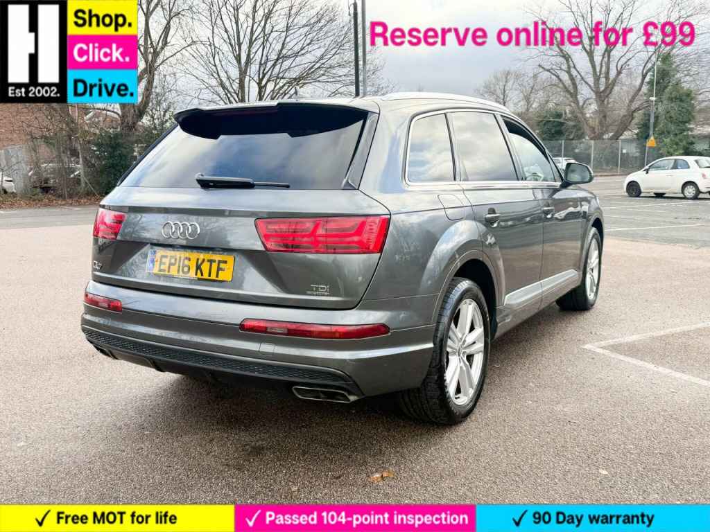 Audi Virtual Cockpit - 12.3in High Resolution LCD Display, 20in Alloy Wheels - 10-Spoke Star Design, Full Leather Package, Upper Inlays in Brushed Aluminium-Sono with Lower Inlays in Aluminium-Beaufort Black, Valcona Leather - S Line Sports Seats - Black, 2 x SDXC Card Readers, 20in Alloy Wheels - 5-Parallel Spoke Design, 3D Map Display of Places of Interest and City Models, ABS - Anti-Lock Braking System, AMI - Audi Music Interface, ASR - Anti Slip Regulation, AUX-IN Socket, Acoustic and Visual Parking System - Front, Acoustic and Visual Parking System - Rear, Air Conditioning - Deluxe Automatic at the Rear, Airbags - Curtain, Airbags - Driver, Airbags - Front Passenger, Airbags - Front Side System, All Weather LED Headlights, Aluminium Roof Rails, Amplifier - 6 Channel, Anti Theft Locking Wheel Bolts, Anti-Theft Alarm, Audi Connect - 3 Month Trial, Audi Drive Select, Audi Hill Hold Assist, Audi Parking System Plus, Audi Sound System, Auto-Dimming Rear-View Mirror, Automatic Wipers with Rain Sensor, Autonomous Braking System, Bluetooth Audio Streaming, Body Coloured Bumpers, Body Coloured Door Mirrors, Cloth Headlining in Black, Colour Drivers Information System - DIS, Colour Touchscreen Display - 8.3in, Comfort Front Centre Armrest, Contour Door and Dashboard Lighting, Cruise Control with Speed Limiter, Cup Holders in Rear Armrest x2, DAB Digital Radio, DVD Player, Dashboard - Upper and Lower - Black, Deluxe 4-Zone Automatic Climate Control, Display Screen Colour TFT 7in High Resolution, Door Handles - Body Coloured, Door Handles - Inside Lights, Door Mirrors - Heated-Electrically Adjustable-Folding, Door Mirrors - Kerb View Function, Door Sill Trims with S Line Logo, Dynamic Rear Indicators, Dynamic Suspension, EBD - Electronic Brakeforce Distribution, EDL - Electronic Differential Lock, ESC - Electronic Stabilisation Control, Electric Windows - Front and Rear, Electrically Adjustable 4-Way Lumbar Support, Electrically Adjustable Front Seats, Electromechanical Parking Brake, Entrance Lighting, First Aid Kit, Flash Memory for Music - 10GB, Front Centre Armrest - Adjustable, Front Passenger Airbag Deactivation Switch, Front and Rear Floor Mats, Front and Rear Reading Lights, Glovebox - Illuminated, Head Restraints - Front Adjustable, Headlights - Adaptive, Headlights - Automatic, Headlights - High-Beam Assist, Headlights Washers, Heated Front Seats, Hill Descent Control, ISOFIX Child Seat Preparation for Rear Seats with Top Tether, ISOFIX for Front Passenger Seat, Illuminated Footwell Lighting, Illuminated Vanity Mirrors, Interior Light Package, Keyless Go, LED Daytime Running Lights, LED Rear Lights, Lighting - Tailgate, Luggage Compartment - Lighting, MMI Navigation Plus including MMI Touch, MMI Radio Plus, MMI Search, MMI Touch, Mobile Telephone Preparation - Bluetooth Interface, Outside Temperature Display, Platinum Grey Front Spoiler Lip and Diffuser Insert with Honeycomb Grid in Black, Power Operated Tailgate, Power Steering - Servotronic, Pre-Sense City, Privacy Glass, Rear Centre Armrest, Rear Diffuser - S Line Design, Remote Central Locking, S Line Badges on Front Wings, S Line Body Styling, S Line Bumpers-Side Ventilation Grilles-Side Skirts and Roof Spoiler, S Line Roof Spoiler, Seat Belt Monitoring, Seats - 2nd Row Split - 35-30-35, Seats - 3rd Row Electrically Folding - 50-50, Seats - Dark Silver Stitching, Seats - Front Height Adjustment, Seats - Sports - S Line, Smoking Package, Speakers x10, Speed Limit Display, Stainless Steel Loading Sill Protector, Steering Wheel - 3-spoke S line Multi-function Leather, Steering Wheel - Gear Shift Paddles, Steering Wheel - Height and Reach Adjustable, Steering Wheel - Multi-function, Subwoofer, Tool Kit and Car Jack, Two Cup-Holders in Centre Console, Tyre Pressure Loss Indicator, Tyre Repair Kit, USB Connection x2, Upper Inlays in Brushed Aluminium-Sono and Lower Inlays in Chrome Paint Finish-Slate Grey, Voice Control - Navigation, Warning Triangle, Window Surrounds - Aluminium