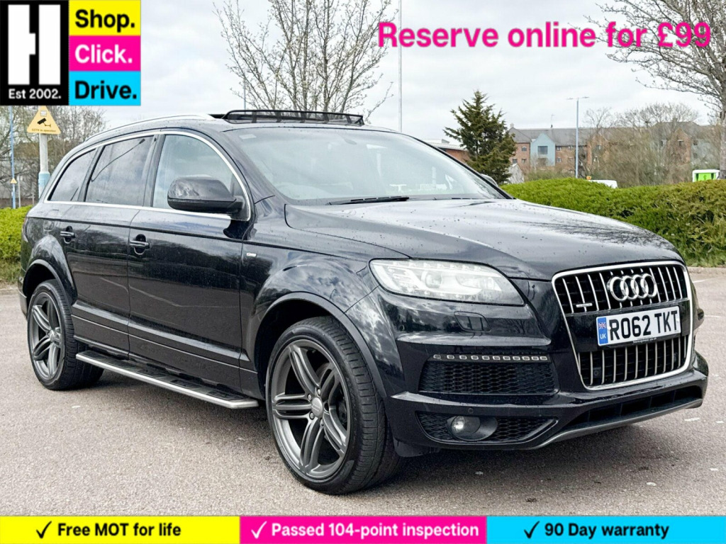 Side Steps, 21in Alloy Wheels - 5-Segment-Spoke Design Titanium Finish, Panoramic Glass Sunroof, Privacy Glass - Double Glazing, 12V Power Socket, 12V Power Socket - Luggage Compartment, 21in Alloy Wheels - 5-Segment-Spoke Design, ABS - Anti-Lock Braking System, AMI - Audi Music Interface, Acoustic Parking System - Rear, Adaptive Air Suspension, Airbags - Driver, Airbags - Front Passenger, Airbags - Front Side System, Airbags - Sideguard Curtain, Alarm - Thatcham Category 1, Audi Parking System Advanced, Audi Parking System Plus, Auto-Dimming Rear-View Mirror, Automatic Wipers with Rain Sensor, Black Roof Rails, CD/Radio, Cloth Headlining in Black, Colour Drivers Information System - DIS, Comfort Front Centre Armrest, Cruise Control, Cup Holders - Centre Console, Door Mirrors - Heated-Electrically Adjustable-Folding, Dual-Zone Electronic Climate Control, EBD - Electronic Brakeforce Distribution, ESP - Electronic Stability Programme, Electric Windows - Front and Rear, Electrically Adjustable 4-Way Lumbar Support, Front Fog Lights, Headlights - Automatic Adjustment, Headlights - Bi-Xenon Plus, Headlights Washers, Heated Front Seats, ISOFIX - front passenger second and third row seats with passenger airbag deactivation switch, Inlays - Matt Brushed Aluminium, Lighting Package, MMI Radio Plus with DSP Sound System, Mobile Telephone Preparation - High with Audi Connect, Power Operated Tailgate, Power Steering - Servotronic Speed-Dependent, Privacy Glass, Remote Central Locking, Satellite Navigation System - HDD Based, Seats - Front Electric Adjustment, Stainless Steel Running Boards, Steering Wheel - 3-Spoke Leather-Multi-Function-Shift Paddles, Steering Wheel - Multi-function, Technology Package - High, 12V Power Socket - Centre Console, 12V Power Socket - Rear x2, 6.5in Display Screen, Active Door Reflectors, Air Vent Sleeves - Aluminium Look, Aluminium Roof Rails, Ambient Lighting - Centre Console, Anti Theft Locking Wheel Bolts, Audi Parking System Advanced with Rear View Camera, Bumpers - Contrasting, Car Jack, Collapsible Spare Wheel, Cup Holders in Rear Armrest x2, Cupholders in Front Centre Armrest, Cupholders x2 in Third Row, Display Screen Colour 7in High Resolution, Door lock switches on all 4 doors, Door Mirrors - Puddle Lights, Door Sill Trims - S Line, Double Load Floor, EDL - Electronic Differential Lock, First Aid Kit, Folding Storage Compartment in Front Centre Armrest, Front and Rear Floor Mats, Front and Rear Footwell Lighting, Front Door Exit Lights, Front Passenger Airbag Deactivation Switch, Hard Drive - 40GB, Illuminated Air Vents in B-pillar, Illuminated Ashtray in Rear, Illuminated Vanity Mirrors, ISOFIX - front passenger - second and third row seats, LED Daytime Running Lights, LED Indicators, LED Rear Lights, Light and Rain Sensor Package, Luggage Compartment - Net, Luggage Compartment - Side Net, Luggage Compartment Cover, MP3 and WMA Compatible CD Player, Parking Brake - Foot Operated, Parking Sensors - Front, Rear Centre Armrest, Rear Door Exit Lights, Rear Parking Sensors, S Line Badge on Wings, S Line Body Styling, SD Card Reader x2, SDHC Card Reader x2, Seats - Backrests - Storage Net, Service Key, Side Impact Protection, Split-Folding Rear Seats, Steering Wheel - Gear Shift Paddles, Storage - Glasses Holder in Roof Module, Through-Load Facility, Tool Kit, TP Memo - Automatically Saves Traffic News, Trailer Stabilisation System via the Electronic Stability Programme, Voice Dialogue System, Warning Triangle, Window Surrounds - Aluminium