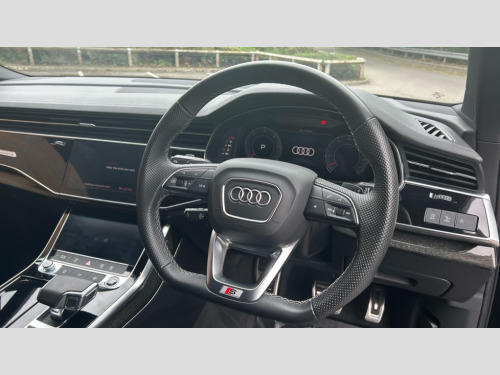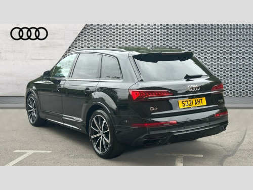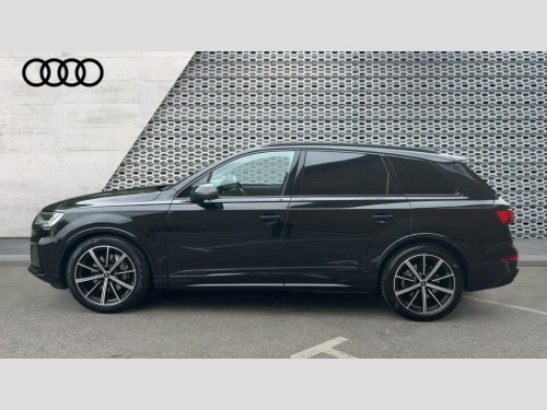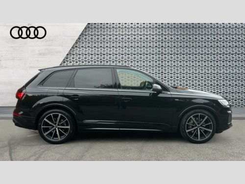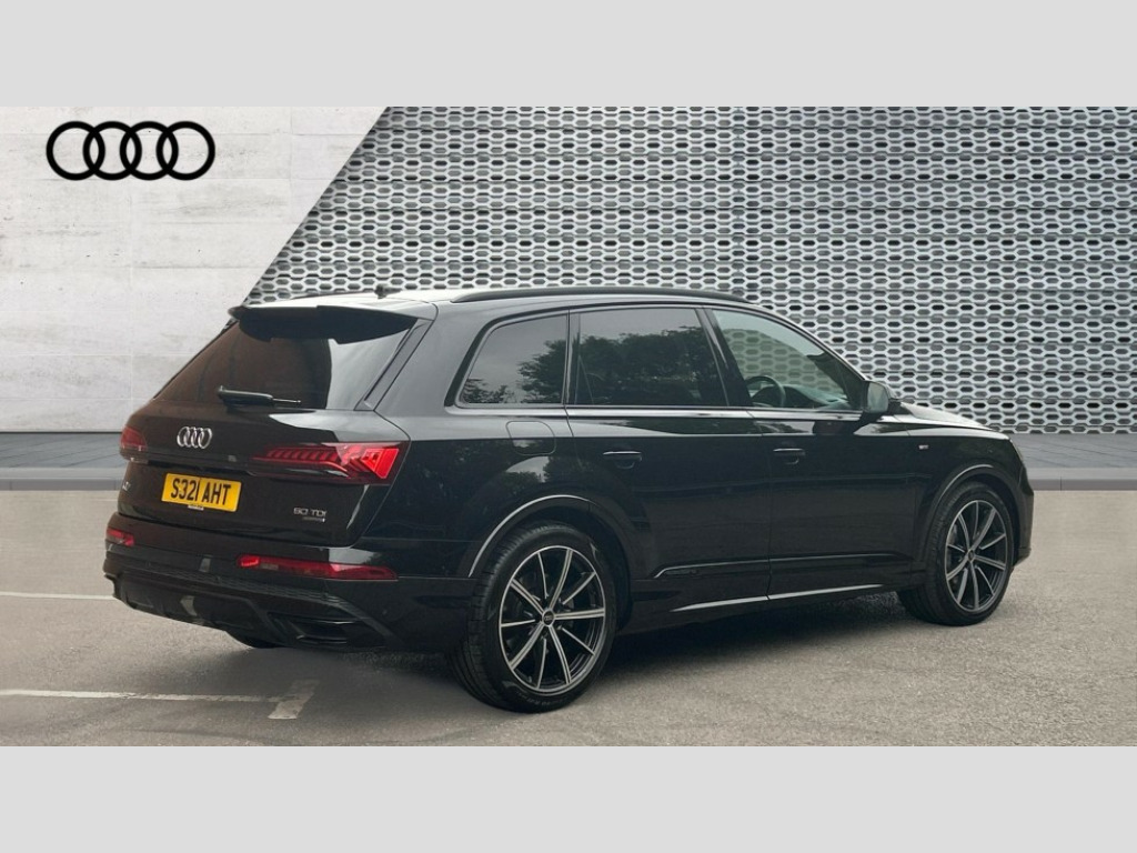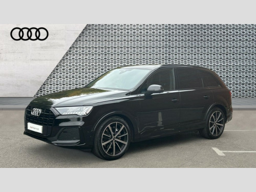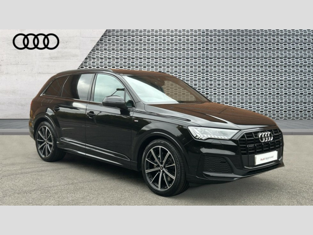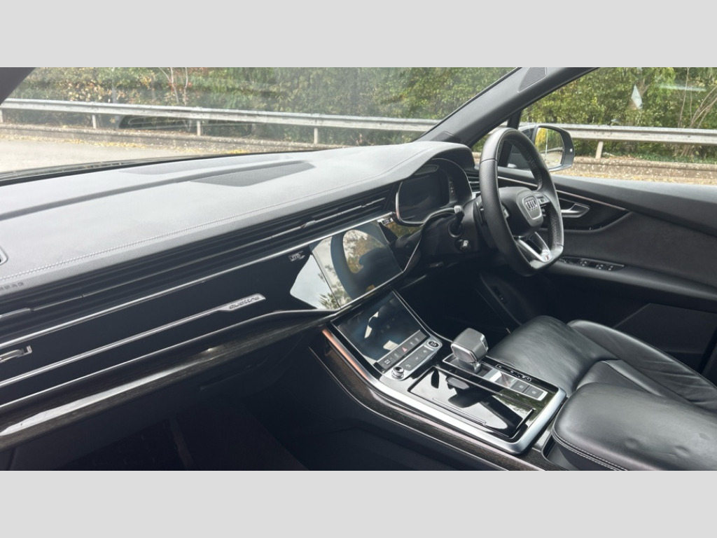 Audi Q7 50 TDI Quattro Black Edition 5dr Tiptronic Audi connect safety and service (e-call), Audi connect with Amazon Alexa Integration, Audi drive select (Auto, Comfort, Dynamic, Efficiency, Individual, Off-road and All road), Audi phone box light with wireless charging, Audi virtual cockpit - 12.3" high-resolution LCD display with fully customisable instrument cluster, Bluetooth interface, Camera based traffic sign recognition, Electromechanical steering, MMI navigation plus with MMI touch screens includes 10.1" and 8.6" screens with haptic feedback, Natural voice recognition, Parking system plus with 360 degree display (front, rear and side sensors) - acoustic and visual park assist system, Power operated tailgate, Rear view camera, Smartphone interface includes wireless Apple carplay/Android Auto, Start/stop system, 48V Mild hybrid technology, Adaptive air sports suspension, Quattro all wheel drive with self locking centre differential, Audi music interface - front 2 USB-C ports with charger and data functions, Audi sound system with 6 channel amplifier, 180 watt amplifying capacity and 10 loudspeakers including subwoofer, DAB digital radio module, 3rd brake light, Aluminium window trim, Audi Beam uses LEDs to project S emblem with red rhombus onto the ground when opening the side doors (front/rear), Auto dimming frameless rear view mirror, Black roof rails, Bumpers in contrast paint scandium grey finish includes door trim and wheel arch trim strips, inlays in door strip contain quattro embossing, Dark tinted Matrix LED headlights with dynamic front and rear indicators, Electrically adj heated/folding + automatically dimming exterior mirrors with memory + automatic kerb side function for passenger side exterior mirror, Heat insulating glass in windshield, Integrated LED indications in door mirrors, LED daytime running lights, LED rear tail lights, Privacy glass - dark tinted rear and rear side windows from B-pillar backwards, Rear side wing doors, Rear wiper, 2 seat bench in 3rd row, 2 zone automatic climate control, 3 seat bench in 2nd row, 7 seat layout with ISOFIX points for the front passenger seat and rear passenger seat, Black cloth headlining, Comfort front centre armrest, Electric adjustable front seat with 4 way lumbar support, driver memory functionality, Folding rear seats, Front head restraints, Front/rear floor mats, Heated front seats, Illuminated door sill trims with S logo, LED interior ambient lighting, Luggage compartment cover, Luggage compartment sill protection in stainless steel, Rear head restraints, Single front passenger seat, Stainless steel pedals, Sunvisors with illuminated vanity mirrors, Black styling pack plus - Q7, 3 point seatbelts on all rear seats, Audi pre sense front, Child locks on rear doors, Driver and front passenger, front side and curtain airbags, Electromechanical parking brake, Electronic Stabilisation Control (ESC) including ABS, ASR and EDL, Extended pedestrian protection measures, Hill hold assist, Seatbelt monitoring, Tyre pressure loss indicator, Warning triangle and first aid kit, Anti theft alarm, Anti-theft wheel bolts and wheel loosening detection, Keyless Go, Remote central locking, Polished oak trim with grey finish inlay, Tool kit, Tyre repair kit