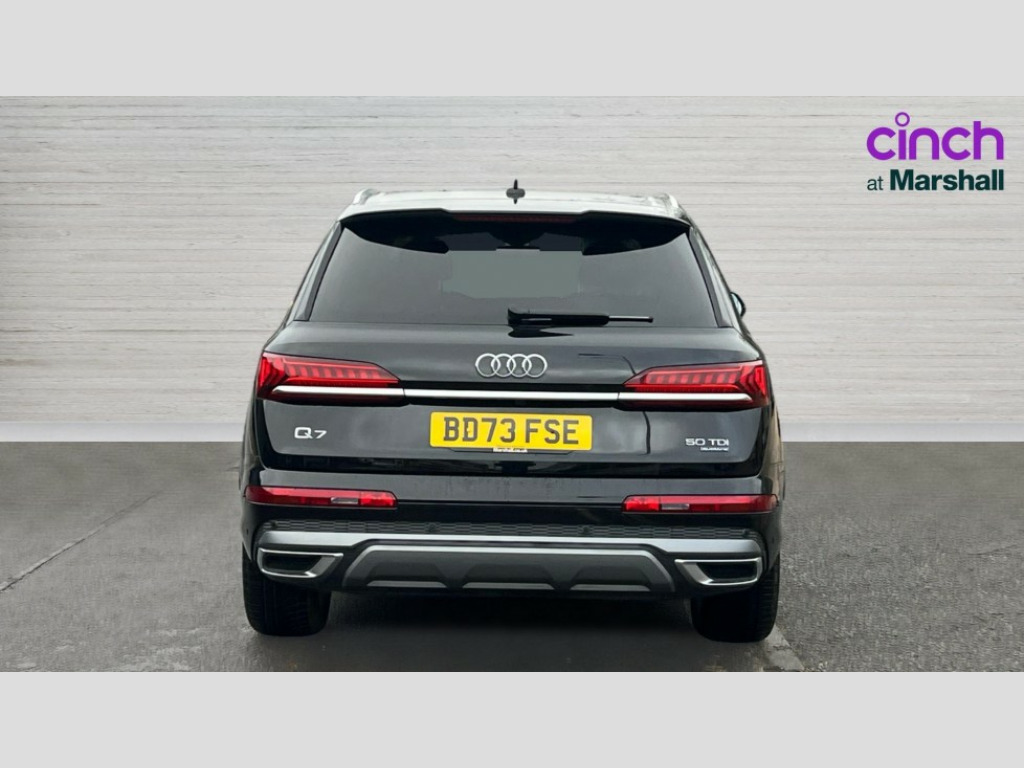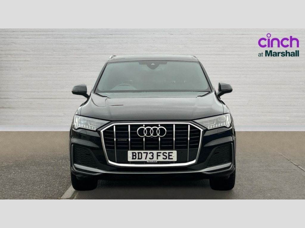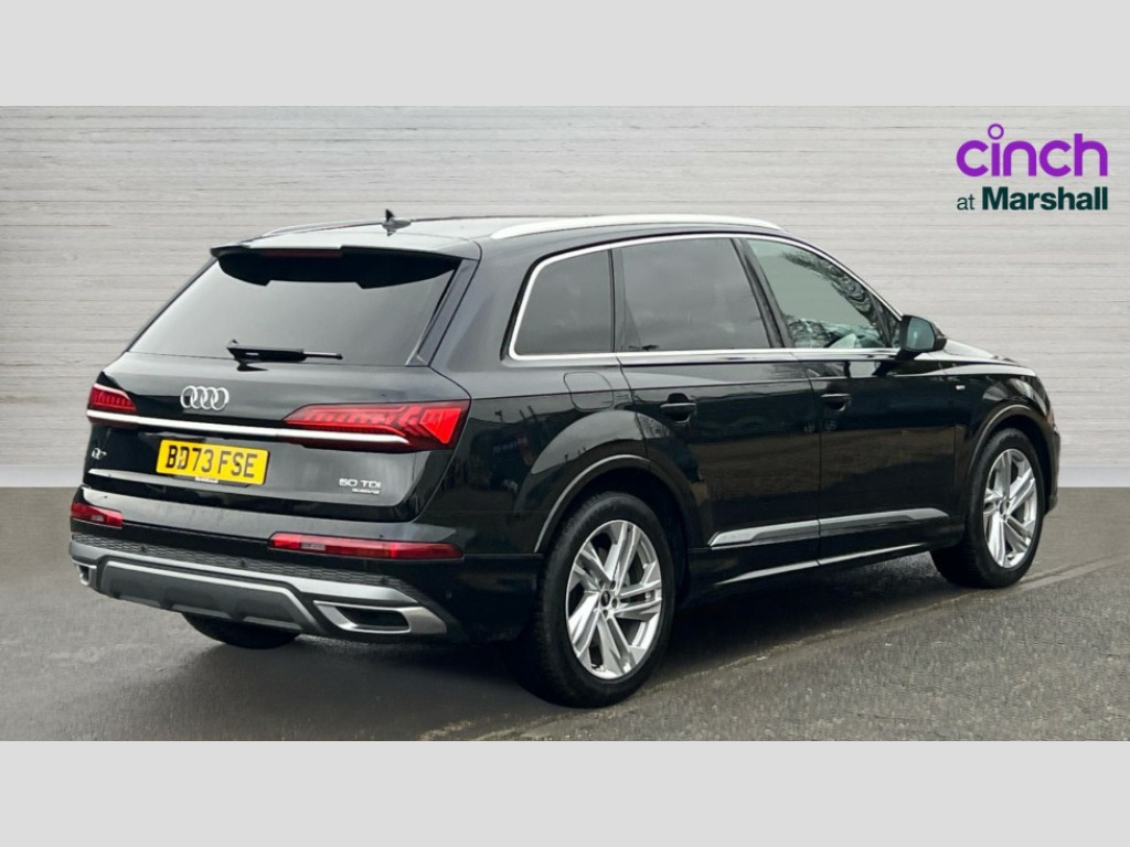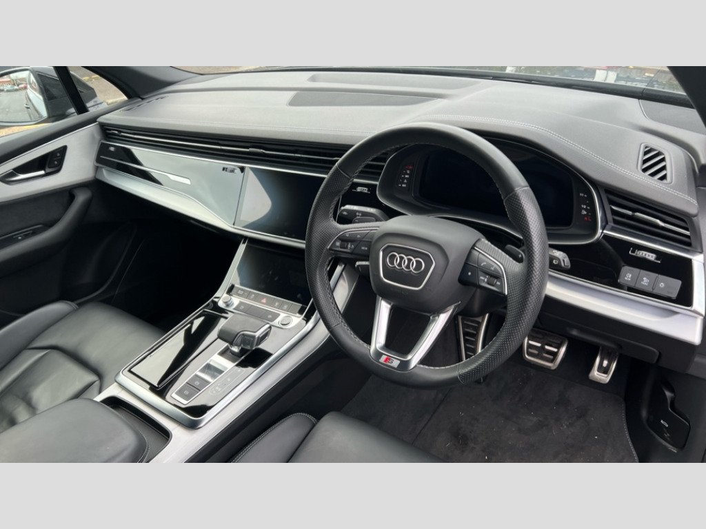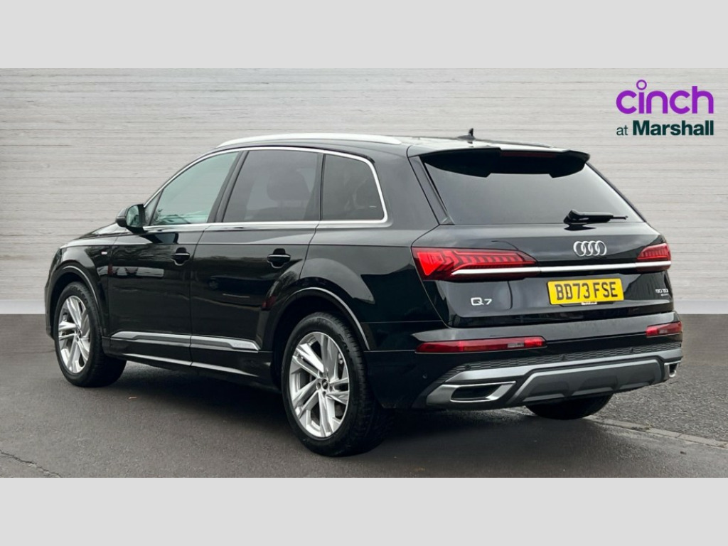 Audi Q7 50 TDI Quattro Black Edition 5dr Tiptronic Audi connect safety and service (e-call), Audi connect with Amazon Alexa Integration, Audi drive select (Auto, Comfort, Dynamic, Efficiency, Individual, Off-road and All road), Audi phone box light with wireless charging, Audi virtual cockpit - 12.3" high-resolution LCD display with fully customisable instrument cluster, Bluetooth interface, Camera based traffic sign recognition, Electromechanical steering, MMI navigation plus with MMI touch screens includes 10.1" and 8.6" screens with haptic feedback, Natural voice recognition, Parking system plus with 360 degree display (front, rear and side sensors) - acoustic and visual park assist system, Power operated tailgate, Rear view camera, Smartphone interface includes wireless Apple carplay/Android Auto, Start/stop system, 48V Mild hybrid technology, Adaptive air sports suspension, Quattro all wheel drive with self locking centre differential, Audi music interface - front 2 USB-C ports with charger and data functions, Audi sound system with 6 channel amplifier, 180 watt amplifying capacity and 10 loudspeakers including subwoofer, DAB digital radio module, 3rd brake light, Aluminium window trim, Audi Beam uses LEDs to project S emblem with red rhombus onto the ground when opening the side doors (front/rear), Auto dimming frameless rear view mirror, Black roof rails, Bumpers in contrast paint scandium grey finish includes door trim and wheel arch trim strips, inlays in door strip contain quattro embossing, Dark tinted Matrix LED headlights with dynamic front and rear indicators, Electrically adj heated/folding + automatically dimming exterior mirrors with memory + automatic kerb side function for passenger side exterior mirror, Heat insulating glass in windshield, Integrated LED indications in door mirrors, LED daytime running lights, LED rear tail lights, Privacy glass - dark tinted rear and rear side windows from B-pillar backwards, Rear side wing doors, Rear wiper, 2 seat bench in 3rd row, 2 zone automatic climate control, 3 seat bench in 2nd row, 7 seat layout with ISOFIX points for the front passenger seat and rear passenger seat, Black cloth headlining, Comfort front centre armrest, Electric adjustable front seat with 4 way lumbar support, driver memory functionality, Folding rear seats, Front head restraints, Front/rear floor mats, Heated front seats, Illuminated door sill trims with S logo, LED interior ambient lighting, Luggage compartment cover, Luggage compartment sill protection in stainless steel, Rear head restraints, Single front passenger seat, Stainless steel pedals, Sunvisors with illuminated vanity mirrors, Black styling pack plus - Q7, 3 point seatbelts on all rear seats, Audi pre sense front, Child locks on rear doors, Driver and front passenger, front side and curtain airbags, Electromechanical parking brake, Electronic Stabilisation Control (ESC) including ABS, ASR and EDL, Extended pedestrian protection measures, Hill hold assist, Seatbelt monitoring, Tyre pressure loss indicator, Warning triangle and first aid kit, Anti theft alarm, Anti-theft wheel bolts and wheel loosening detection, Keyless Go, Remote central locking, Polished oak trim with grey finish inlay, Tool kit, Tyre repair kit
