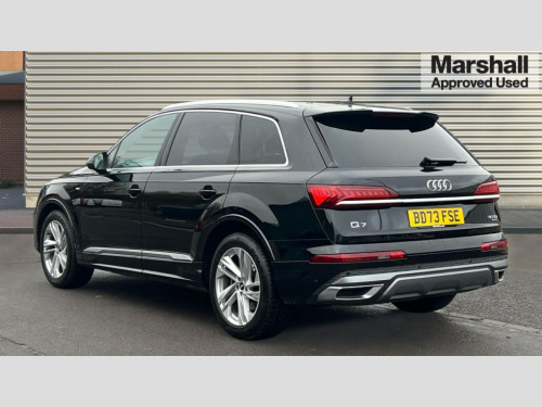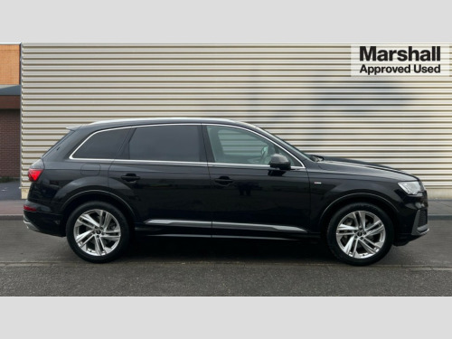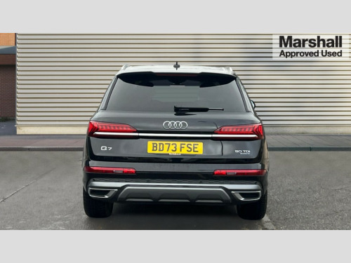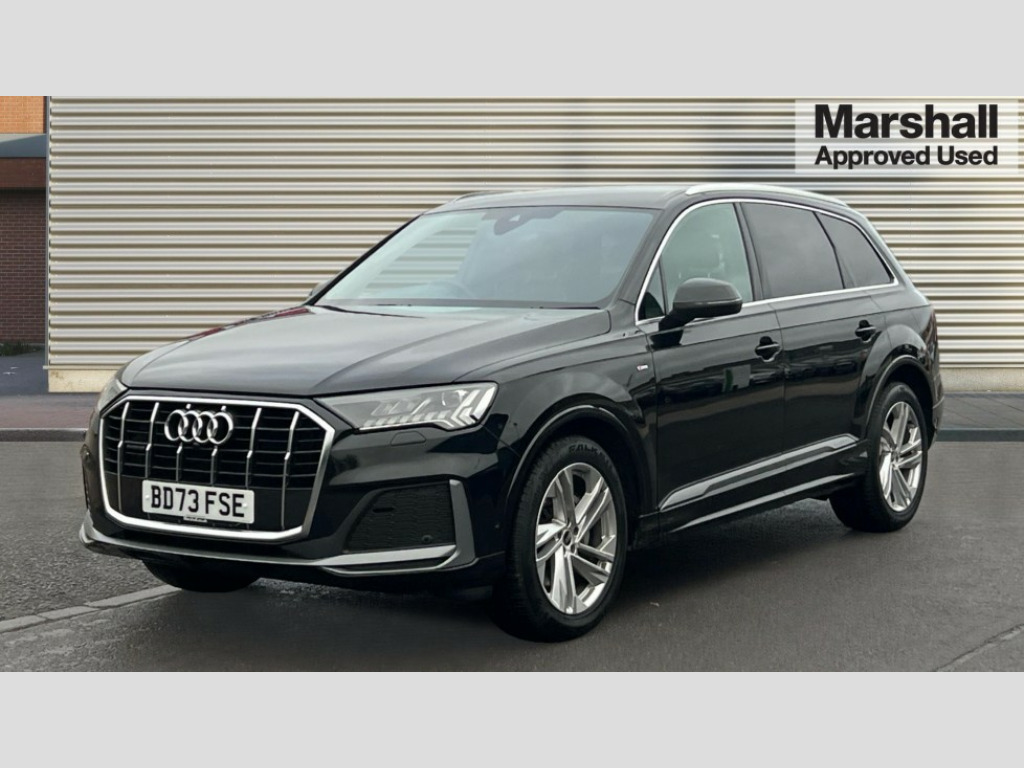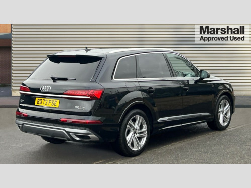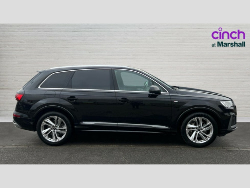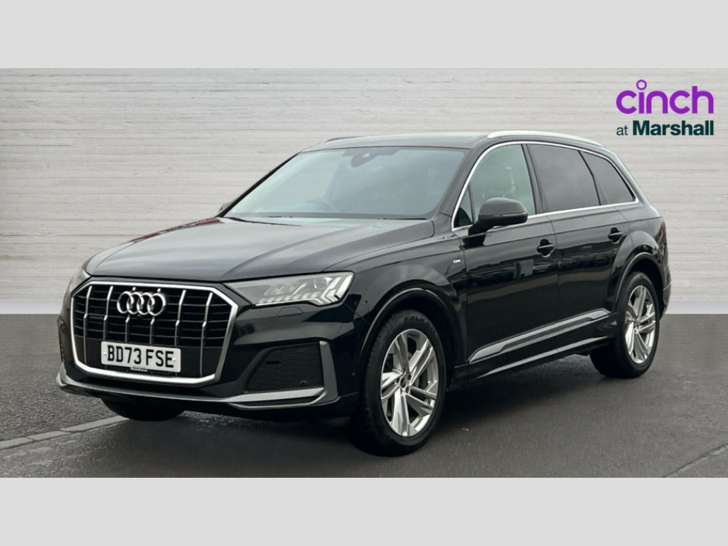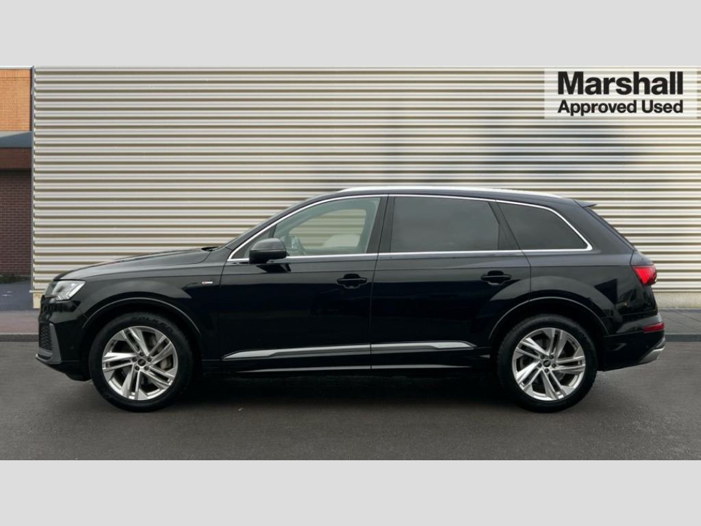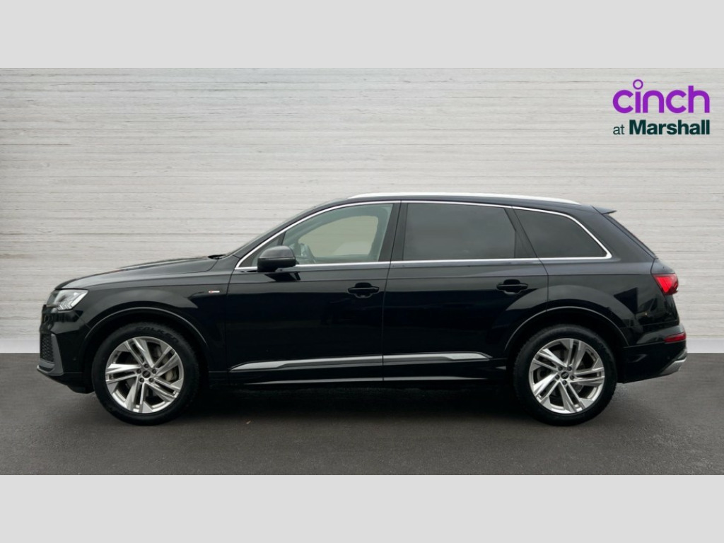 Audi Q7 50 TDI Quattro Black Edition 5dr Tiptronic Audi connect safety and service (e-call), Audi connect with Amazon Alexa Integration, Audi drive select (Auto, Comfort, Dynamic, Efficiency, Individual, Off-road and All road), Audi phone box light with wireless charging, Audi virtual cockpit - 12.3" high-resolution LCD display with fully customisable instrument cluster, Bluetooth interface, Camera based traffic sign recognition, Electromechanical steering, MMI navigation plus with MMI touch screens includes 10.1" and 8.6" screens with haptic feedback, Natural voice recognition, Parking system plus with 360 degree display (front, rear and side sensors) - acoustic and visual park assist system, Power operated tailgate, Rear view camera, Smartphone interface includes wireless Apple carplay/Android Auto, Start/stop system, 48V Mild hybrid technology, Adaptive air sports suspension, Quattro all wheel drive with self locking centre differential, Audi music interface - front 2 USB-C ports with charger and data functions, Audi sound system with 6 channel amplifier, 180 watt amplifying capacity and 10 loudspeakers including subwoofer, DAB digital radio module, 3rd brake light, Aluminium window trim, Audi Beam uses LEDs to project S emblem with red rhombus onto the ground when opening the side doors (front/rear), Auto dimming frameless rear view mirror, Black roof rails, Bumpers in contrast paint scandium grey finish includes door trim and wheel arch trim strips, inlays in door strip contain quattro embossing, Dark tinted Matrix LED headlights with dynamic front and rear indicators, Electrically adj heated/folding + automatically dimming exterior mirrors with memory + automatic kerb side function for passenger side exterior mirror, Heat insulating glass in windshield, Integrated LED indications in door mirrors, LED daytime running lights, LED rear tail lights, Privacy glass - dark tinted rear and rear side windows from B-pillar backwards, Rear side wing doors, Rear wiper, 2 seat bench in 3rd row, 2 zone automatic climate control, 3 seat bench in 2nd row, 7 seat layout with ISOFIX points for the front passenger seat and rear passenger seat, Black cloth headlining, Comfort front centre armrest, Electric adjustable front seat with 4 way lumbar support, driver memory functionality, Folding rear seats, Front head restraints, Front/rear floor mats, Heated front seats, Illuminated door sill trims with S logo, LED interior ambient lighting, Luggage compartment cover, Luggage compartment sill protection in stainless steel, Rear head restraints, Single front passenger seat, Stainless steel pedals, Sunvisors with illuminated vanity mirrors, Black styling pack plus - Q7, 3 point seatbelts on all rear seats, Audi pre sense front, Child locks on rear doors, Driver and front passenger, front side and curtain airbags, Electromechanical parking brake, Electronic Stabilisation Control (ESC) including ABS, ASR and EDL, Extended pedestrian protection measures, Hill hold assist, Seatbelt monitoring, Tyre pressure loss indicator, Warning triangle and first aid kit, Anti theft alarm, Anti-theft wheel bolts and wheel loosening detection, Keyless Go, Remote central locking, Polished oak trim with grey finish inlay, Tool kit, Tyre repair kit
