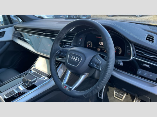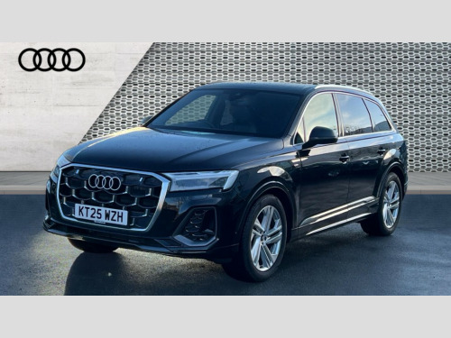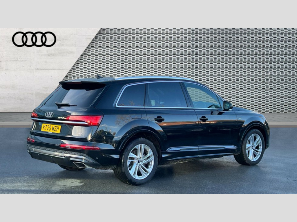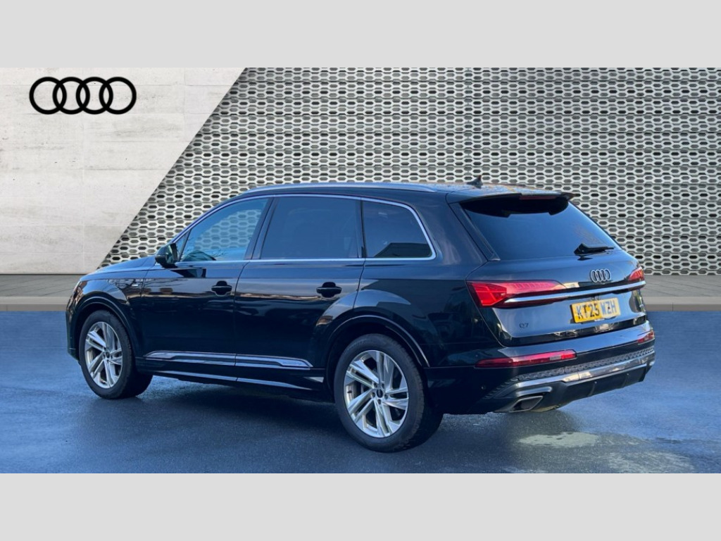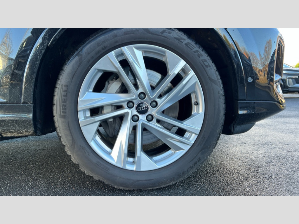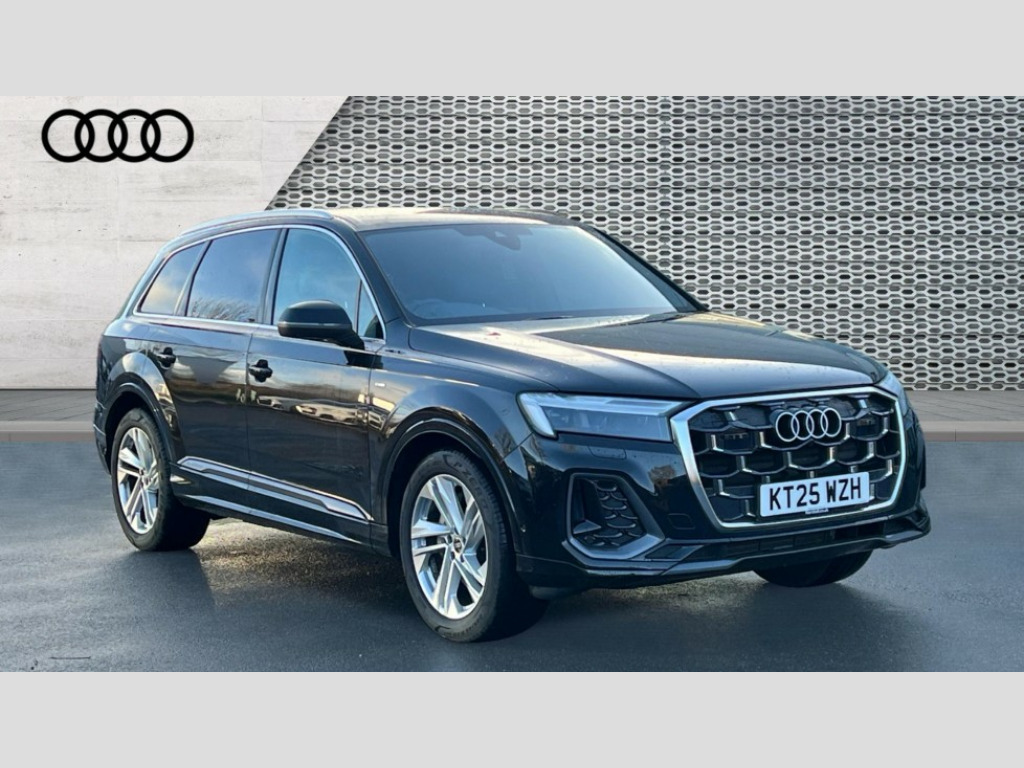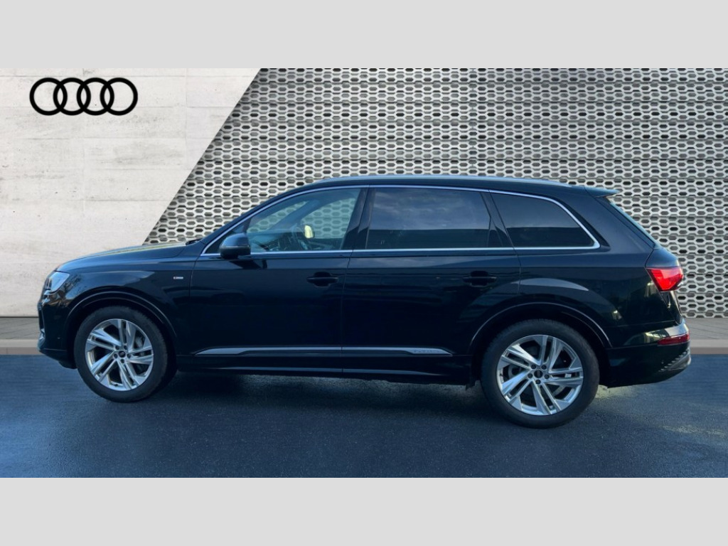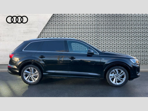 Audi Q7 50 TDI Quattro S Line 5dr Tiptronic Audi connect safety and service (e-call), Audi connect with Amazon Alexa Integration, Audi drive select (Auto, Comfort, Dynamic, Efficiency, Individual, Off-road and All road), Audi phone box light with wireless charging, Audi virtual cockpit - 12.3" high-resolution LCD display with fully customisable instrument cluster, Bluetooth interface, Camera based traffic sign recognition, Electromechanical power steering, MMI navigation plus with MMI touch screens includes 10.1" and 8.6" screens with haptic feedback, Natural voice recognition, Operating buttons in Matte black, Parking system plus with 360 degree display (front, rear and side sensors) - acoustic and visual park assist system, Power operated tailgate, Rear view camera, Smartphone interface includes wireless Apple carplay/Android Auto, Start/stop system, 48V Mild hybrid technology, Adaptive air suspension, Quattro all wheel drive with self locking centre differential, Audi music interface - front 2 USB-C ports with charger and data functions, Audi sound system with 6 channel amplifier, 180 watt amplifying capacity and 10 loudspeakers including subwoofer, DAB digital radio module, Aluminium roof rails, Aluminium window trim, Auto dimming frameless rear view mirror, Body coloured door mirrors, Electrically adj heated/folding + automatically dimming exterior mirrors with memory + automatic kerb side function for passenger side exterior mirror, Heat insulating glass in windshield, Integrated LED indications in door mirrors, LED 3rd brake light, LED daytime running lights, LED rear tail lights, Loading edge protection in stainless steel, Matrix LED headlights with dynamic front and rear indicators, Privacy glass - dark tinted rear and rear side windows from B-pillar backwards, Rear side wing doors, Rear wiper, S Line badge on wings, S Line body styling, S line bumpers in full body colour paint finish, S line roof spoiler, S line styling side ventilation grilles and side skirts, 2 seat bench in 3rd row, 2 zone automatic climate control, 3 seat bench in 2nd row, 7 seat layout with ISOFIX points for the front passenger seat and rear passenger seat, Black carpets, Black cloth headlining, Comfort front centre armrest, Electric adjustable front seat with 4 way lumbar support, driver memory functionality, Folding rear seats, Front head restraints, Front/rear floor mats, Heated front seats, Illuminated door sill trims with S logo, ISOFIX child seat mounting for front passenger seat and 2 outer rear seats with top tether child seat mounting for all 3 rear seats, LED interior ambient lighting, Luggage compartment cover, Luggage compartment sill protection in stainless steel, Rear head restraints, Rear seat bench plus for the second row, with forwards/backwards sliding adjustment and backrest angle adjustment, Single front passenger seat, Stainless steel pedals, Sunvisors with illuminated vanity mirrors, 3 point seatbelts on all rear seats, Audi pre sense front, Child locks on rear doors, Convenience key with safelock and gesture tailgate, Driver and front passenger, front side and curtain airbags, Electromechanical parking brake, Electronic Stabilisation Control (ESC) including ABS, ASR and EDL, Extended pedestrian protection measures, Hill hold assist, Seatbelt reminder, Tyre pressure loss indicator, Warning triangle and first aid kit, Anti theft alarm with tow away protection, Anti-theft wheel bolts and wheel loosening detection, Keyless Go, Remote central locking, Black dashboard, Darkened matt brushed aluminium inlays, Tool kit, Tyre repair kit