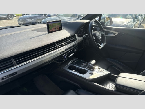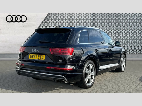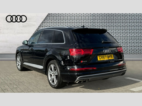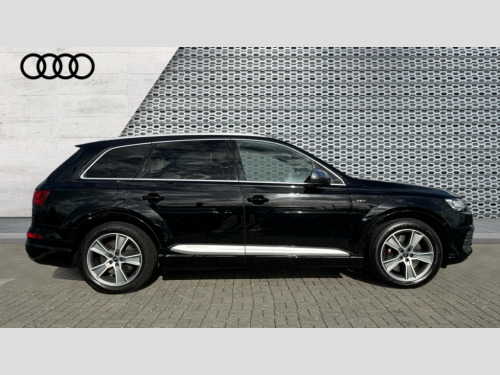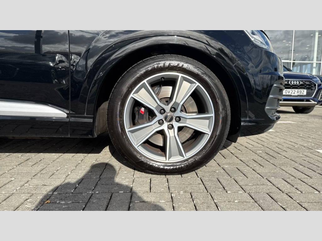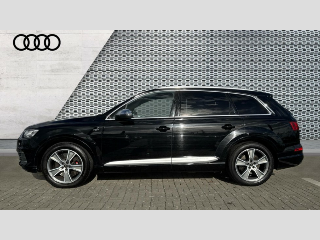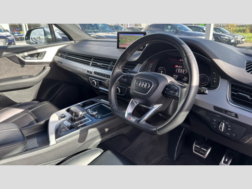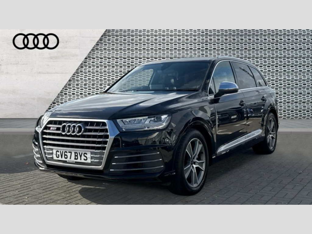 Audi Q7 SQ7 Quattro 5dr Tip Auto Audi drive select, Audi smartphone interface, Audi virtual cockpit - 12.3" high-resolution LCD display with fully customisable instrument cluster, MMI - Multi Media Interface control system, MMI navigation plus with touch and 8" colour display, DVD, SD card reader, 10GB music storage, Mobile phone preparation with bluetooth interface, Remote electric boot opening/closing, Service interval indicator, Servotronic speed related PAS, Speed limiter, Voice control system, 85 litre fuel tank, Adaptive air suspension, 2 USB ports, Audi music interface, Aux-in socket, DAB digital radio module, MMI radio plus, Acoustic windscreen, Active exhaust sound system, Auto dimming rear view mirror, Body coloured bumpers, Dual branch oval twin exhaust tailpipes, Dynamic rear indicators, Electric front+rear windows, Headlight washers, High beam assist, LED daytime running lights, LED tail lights, Loading sill protector in stainless steel, Platinum grey front lip spoiler, Rain and light sensors, Rear wiper, Roof spoiler, S body styling, 2 cupholders in front centre console, 35/30/35 split fold 2nd row seats, 4 way electrically adjustable lumbar support for drivers seat, 4 way electrically adjustable lumbar support for front passenger seat, Aluminium scuff plates, Black cloth headlining, Door sill trims with S line logo, Electric 3rd row 50/50 split/fold, Electric adjustable front seats, Four zone electronic climate control, Front ashtray and cigar lighter, Front centre comfort armrest with storage + cupholders, Front head restraints, Gearshift paddles, Heated front seats, ISOFIX on front passenger and rear outer seats, Leather gear knob, Rear centre armrest with 2 cupholders, Rear headrests, Stainless steel pedals, Sunvisors with illuminated vanity mirrors, Top tether anchor plate for isofix child seat, Interior light pack - Q7, 3 point seatbelts on all seats, ABS+Electronic Brake force Distribution, Curtain airbags, Driver and passenger airbags, EDL + ASR, Electrically operated child locks on rear doors, Electromechanical parking brake, ESP, Front passenger airbag deactivation, Front side airbags, Hill descent control, Hill hold assist, Seatbelt warning, Traction control, Tyre pressure monitoring system, Warning triangle and first aid kit, Alarm with interior monitoring, Immobiliser, Keyless Go access/ignition system, Locking wheel bolts, Remote central locking, Chrome door inserts, Tyre repair kit