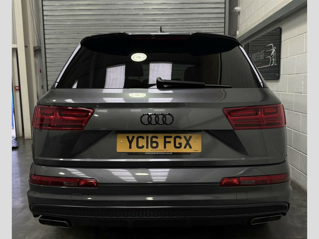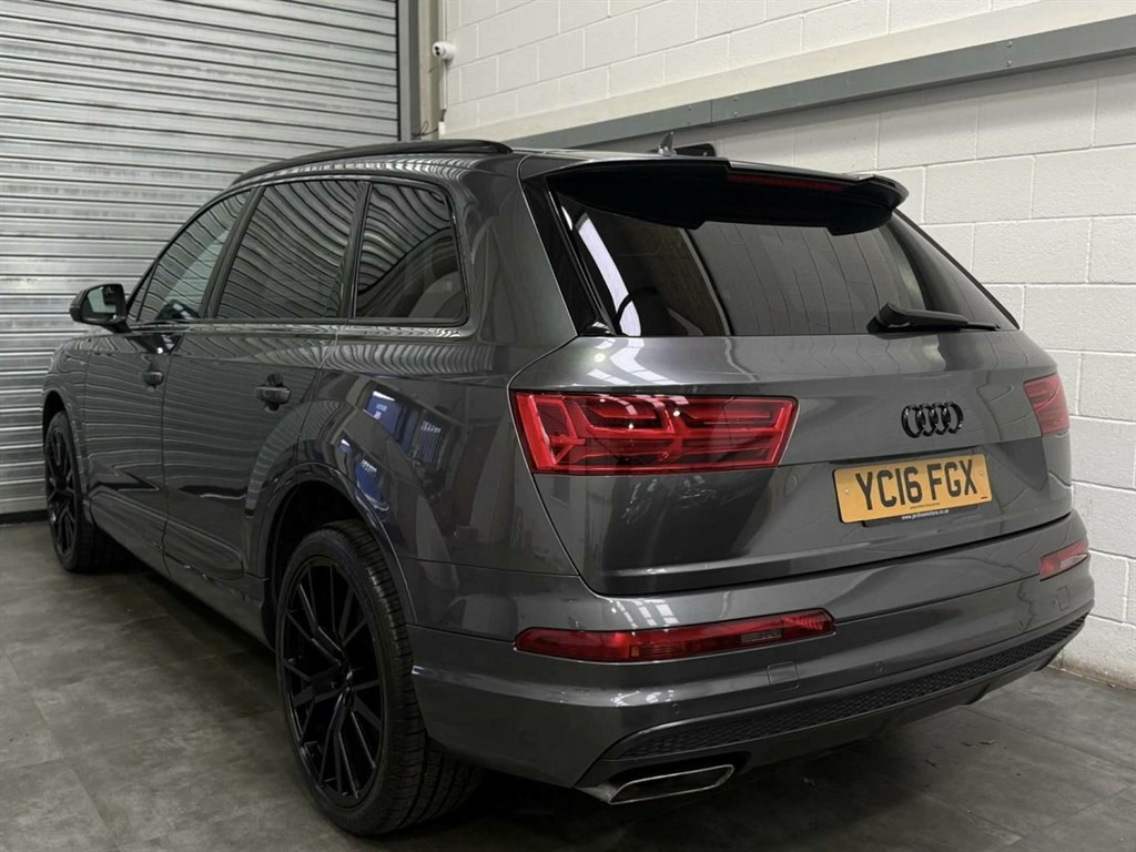 Full Service History, Sat Nav, Black Pack, Head Up Display, 22 Alloy Wheels, 7 Seats, 2 x SDXC Card Readers,3D Map Display of Places of Interest and City Models,ABS - Anti-Lock Braking System,AMI - Audi Music Interface,ASR - Anti Slip Regulation,AUX-IN Socket,Acoustic and Visual Parking System - Front,Acoustic and Visual Parking System - Rear,Air Conditioning - Deluxe Automatic at the Rear,Airbags - Curtain,Airbags - Driver,Airbags - Front Passenger,Airbags - Front Side System,All Weather LED Headlights,Aluminium Roof Rails,Amplifier - 6 Channel,Anti Theft Locking Wheel Bolts,Anti-Theft Alarm,Audi Drive Select,Audi Hill Hold Assist,Audi Connect - 3 Month Trial,Audi Sound System,Auto-Dimming Rear-View Mirror,Automatic Wipers with Rain Sensor,Autonomous Braking System,Audi Parking System Plus,Bluetooth Audio Streaming,Body Coloured Bumpers,Body Coloured Door Mirrors,Cloth Headlining in Black,Colour Drivers Information System - DIS,Colour Touchscreen Display - 8.3in,Comfort Front Centre Armrest,Contour Door and Dashboard Lighting,Cruise Control with Speed Limiter,Cup Holders in Rear Armrest x2,DAB Digital Radio,DVD Player,Dashboard - Upper and Lower - Black,Deluxe 4-Zone Automatic Climate Control,Display Screen Colour TFT 7in High Resolution,Door Handles - Body Coloured,Door Handles - Inside Lights,Door Mirrors - Heated-Electrically Adjustable-Folding,Door Mirrors - Kerb View Function,Door Sill Trims with S Line Logo,Dynamic Rear Indicators,Dynamic Suspension,EBD - Electronic Brakeforce Distribution,EDL - Electronic Differential Lock,ESC - Electronic Stabilisation Control,Electric Windows - Front and Rear,Electrically Adjustable 4-Way Lumbar Support,Electrically Adjustable Front Seats,Electromechanical Parking Brake,Entrance Lighting,First Aid Kit,Flash Memory for Music - 10GB,Front Centre Armrest - Adjustable,Front Passenger Airbag Deactivation Switch,Front and Rear Floor Mats,Front and Rear Reading Lights,Glovebox - Illuminated,Head Restraints - Front Adjustable,Headlights - Adaptive,Headlights - Automatic,Headlights - High-Beam Assist,Headlights Washers,Heated Front Seats,Hill Descent Control,ISOFIX Child Seat Preparation for Rear Seats with Top Tether,ISOFIX for Front Passenger Seat,Illuminated Footwell Lighting,Illuminated Vanity Mirrors,Interior Light Package,Keyless Go,LED Daytime Running Lights,LED Rear Lights,Lighting - Tailgate,Luggage Compartment - Lighting,MMI Navigation Plus including MMI Touch,MMI Radio Plus,MMI Search,MMI Touch,Mobile Telephone Preparation - Bluetooth Interface,Outside Temperature Display,Platinum Grey Front Spoiler Lip and Diffuser Insert with Honeycomb Grid in Black,Power Operated Tailgate,Power Steering - Servotronic,Pre-Sense City,Privacy Glass,Rear Centre Armrest,Rear Diffuser - S Line Design,Remote Central Locking,S Line Badges on Front Wings,S Line Body Styling,S Line Bumpers-Side Ventilation Grilles-Side Skirts and Roof Spoiler,S Line Roof Spoiler,Seat Belt Monitoring,Seats - 2nd Row Split - 35-30-35,Seats - 3rd Row Electrically Folding - 50-50,Seats - Dark Silver Stitching,Seats - Front Height Adjustment,Seats - Sports - S Line,Smoking Package,Speakers x10,Speed Limit Display,Stainless Steel Loading Sill Protector,Steering Wheel - 3-spoke S line Multi-function Leather,Steering Wheel - Gear Shift Paddles,Steering Wheel - Height and Reach Adjustable,Steering Wheel - Multi-function,Subwoofer,Tool Kit and Car Jack,Two Cup-Holders in Centre Console,Tyre Pressure Loss Indicator,Tyre Repair Kit,USB Connection x2,Upper Inlays in Brushed Aluminium-Sono and Lower Inlays in Chrome Paint Finish-Slate Grey,Voice Control - Navigation,Warning Triangle,Window Surrounds - Aluminium,Bluetooth Interface,DAB Digital Radio Reception,Gloss Package,Automatic Headlight Adjustment,7 Seats,Steering Wheel - 3-spoke S line Multi-function Leather with Paddle-shift,Power Steering,Child Locks,Driver and Front Passenger Airbag with Front Passenger Airbag Deactivation,ISOFIX Child Seat Mounting,Audi Virtual Cockpit - 12.3in High Resolution LCD Display,Head-Up Display,22in Alloy Wheels - 5-V-Spoke Aluminium Star Design - Titanium Diamond Cut,Black Styling Package,Heated Windscreen,Audi Matrix LED Headlights,Audi Virtual Cockpit,Leather-Alcantara - S Line Sports Seats - Black