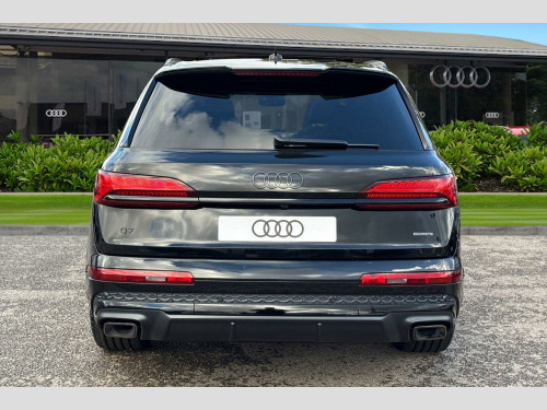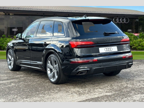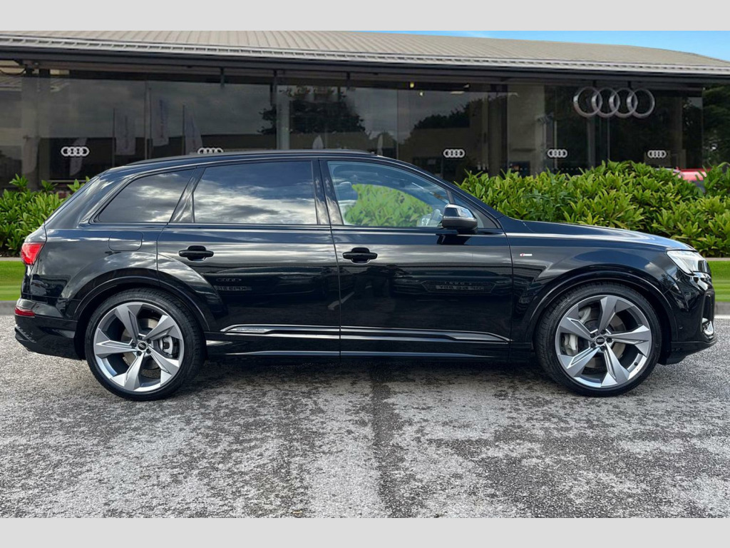 Take a look at this Brand-New Audi Q7 SUV Black Edition e quattro in Mythos Black with its 21" 5-twin spoke design alloy wheels which look superb out on the roads. The Matrix LED headlights with LED rear lights plus create that strong visibility in all weather conditions.