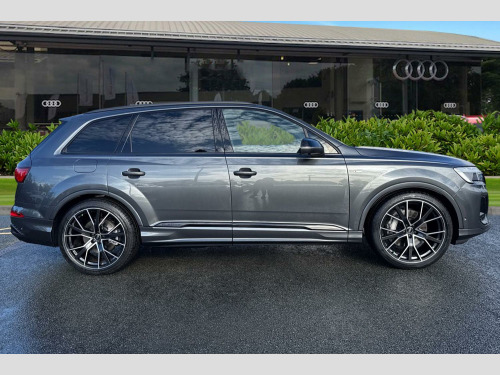 Price shown includes a deposit contribution of £4800 when purchased on finance by 31/12/25. Solutions Personal Contract Plan. 6.9% APR Representative. Audi Financial Services. Terms and Conditions apply. 22in Alloy Wheels - 10.0J 5 V-Spoke Star Audi Sport in Anthracite Black with High-Sheen Finish, Technology Pack, Fuel Tank 85L, 2 USB-C Ports with Charging Functionality in the Rear, 2-Zone Automatic Climate Control, 21in Alloy Wheels - 9.5J 5-Twin-Spoke Design in Silk Matt Grey Finish - Black Inserts, 3-Spoke Flat Bottomed Leather - Multifunction Sport Steering Wheel, 4-Way Lumbar Support for Front Seats, 7 Seats, Adaptive Air Sport Suspension, Airbags - Driver - Front Passenger - Front Side - Curtain, Aluminium Window Trims, Anti-Theft Alarm with Tow-Away Protection, Anti-Theft Wheel Bolts and Wheel Loosening Warning, Audi Application Store and Smartphone Interface, Audi Beam, Audi Connect Navigation and Infotainment (3 Year Subscription From New), Audi Connect Safety and Service - e-call, Audi Drive Select, Audi Music Interface in the Rear, Audi Phone Box Light with Bluetooth and Wireless Charging, Audi Pre Sense Basic, Audi Pre-Sense Front, Audi Sound System, Audi Virtual Cockpit, Auto Dimming and Frameless Rear View Mirror, Black Exhausts, Black Roof Rails, Black Styling Package Plus, Camera-Based Traffic Sign Recognition, Cloth Headlining in Black, Comfort Front Centre Armrest, Convenience Key and Safelock, Cruise Control with Speed Limiter, DAB Digital Radio, Door Mirrors - Anthracite Black, Door Mirrors - Heated - Electrically Adjustable - Folding and Auto Dimming with Memory Function, Electrically Adjustable Front Seats including Memory Function for Drivers Seat, Electromechanical Power Steering, First Aid Kit and Warning Triangle, Front Sport Seats with S Embossed Logo, Front and Rear Floor Mats, Heated Front Seats, Hold Assist, ISOFIX Child Seat Mounting for Front Passenger, Illuminated Door Sill Trims with S Logo, Inlays - Polished Oak with Grey Finish, LED Interior Ambient Lighting, LED Rear Lights Plus, Lane Departure Warning, Loading Edge Protection in Stainless Steel, Luggage Compartment Cover, Luggage Compartment Sill Protection in Stainless Steel, MMI Navigation Plus with MMI Touch, Matrix LED Headlights with Dynamic Front and Rear Indicators, Natural Voice Recognition, Operating Buttons in Matte Black, Parking System Plus with 360 Degree Display, Pedals in Stainless Steel, Power Operated Tailgate, Privacy Glass, Rear View Camera, S Line Badges on the Front Wings, S Line Roof Spoiler, S Line Styling Side Ventilation Grille and Side Skirts, Seat Belt Reminder, Smartphone Interface includes Wireless Apple CarPlay and Android Auto, Start-Stop System, Sun Visors with Illuminated Vanity Mirrors, Tool Kit, Tyre Pressure Loss Indicator, Tyre Repair Kit, Windshield with Heat Insulated Glass, quattro All-Wheel Drive with Self-Locking Centre Differential