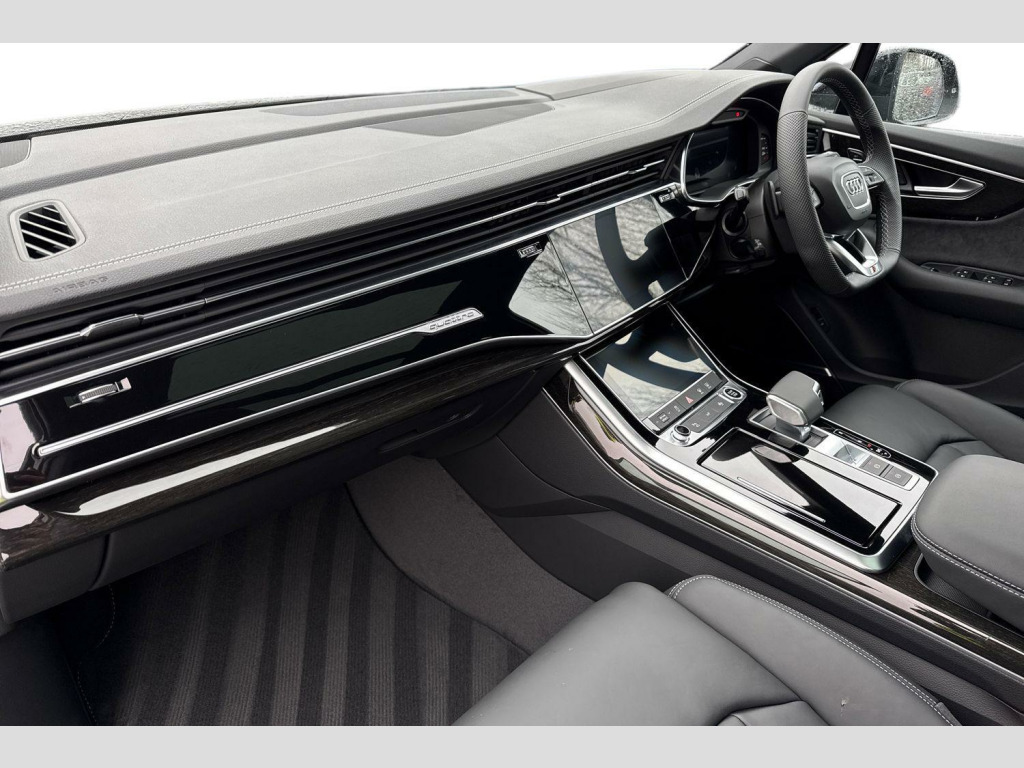Vehicle price shown includes a deposit contribution of £4500 when purchased on finance by 31/03/2026. Solutions Personal Contract Plan. 5.9% APR Representative. Audi Financial Services. Terms and Conditions Apply. Technology Pack Pro, Valcona Leather - Sports Seats with S Embossed Logo - Black with Grey Stitching, 22in Alloy Wheels - 10.0J 5 V-Spoke Star Audi Sport - Anthracite Black - High-Sheen - Audi Sport with 285/35 R22 Tyres, Body Coloured Door Mirrors, 2 USB-C Ports with Charging Functionality in the Rear, 2-Zone Automatic Climate Control, 21in Alloy Wheels - 9.5J 5-Twin-Spoke Module - Silk Matt Grey - Black Inserts - Audi Sport with 285/40 R21 Tyres, 3-Spoke Flat Bottomed Leather - Multifunction Sport Steering Wheel, 4-Way Lumbar Support for Front Seats, 7 Seats, Adaptive Air Sport Suspension, Airbags - Driver - Front Passenger - Front Side - Curtain, Aluminium Window Trims, Anti-Theft Alarm with Tow-Away Protection, Anti-Theft Wheel Bolts and Wheel Loosening Warning, Audi Application Store and Smartphone Interface, Audi Beam, Audi Connect Navigation and Infotainment (3 Year Subscription From New), Audi Connect Safety and Service - e-call, Audi Drive Select, Audi Music Interface in the Rear, Audi Phone Box Light with Bluetooth and Wireless Charging, Audi Pre Sense Basic, Audi Pre-Sense Front, Audi Sound System, Audi Virtual Cockpit, Auto Dimming and Frameless Rear View Mirror, Black Exhausts, Black Roof Rails, Black Styling Package Plus, Camera-Based Traffic Sign Recognition, Cloth Headlining in Black, Comfort Front Centre Armrest, Convenience Key and Safelock, Cruise Control with Speed Limiter, DAB Digital Radio, Door Mirrors - Anthracite Black, Door Mirrors - Heated - Electrically Adjustable - Folding and Auto Dimming with Memory Function, Electrically Adjustable Front Seats including Memory Function for Drivers Seat, Electromechanical Power Steering, First Aid Kit and Warning Triangle, Front Sport Seats with S Embossed Logo, Front and Rear Floor Mats, Heated Front Seats, Hold Assist, ISOFIX Child Seat Mounting for Front Passenger, Illuminated Door Sill Trims with S Logo, Inlays - Polished Oak with Grey Finish, LED Interior Ambient Lighting, LED Rear Lights Plus, Lane Departure Warning, Loading Edge Protection in Stainless Steel, Luggage Compartment Cover, Luggage Compartment Sill Protection in Stainless Steel, MMI Navigation Plus with MMI Touch, Matrix LED Headlights with Dynamic Front and Rear Indicators, Natural Voice Recognition, Operating Buttons in Matte Black, Parking System Plus with 360 Degree Display, Pedals in Stainless Steel, Power Operated Tailgate, Privacy Glass, Rear View Camera, S Line Badges on the Front Wings, S Line Roof Spoiler, S Line Styling Side Ventilation Grille and Side Skirts, Seat Belt Reminder, Smartphone Interface includes Wireless Apple CarPlay and Android Auto, Start-Stop System, Sun Visors with Illuminated Vanity Mirrors, Tool Kit, Tyre Pressure Loss Indicator, Tyre Repair Kit, Windshield with Heat Insulated Glass, quattro All-Wheel Drive with Self-Locking Centre Differential