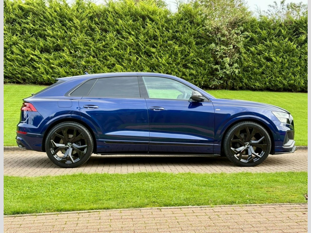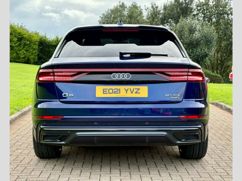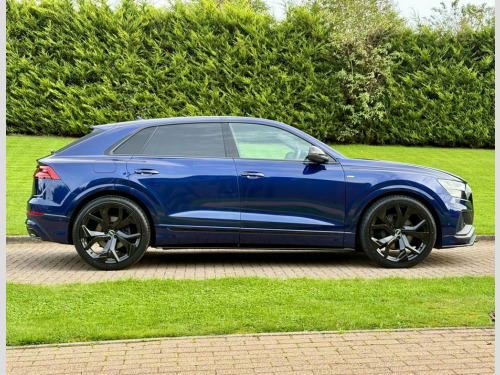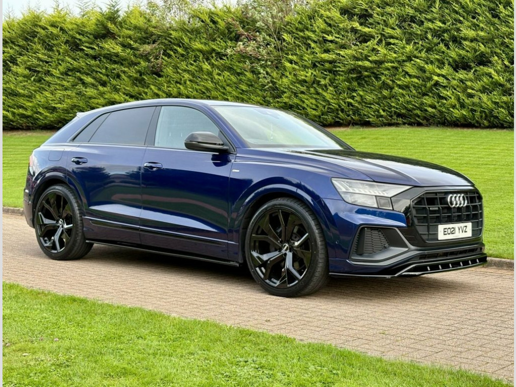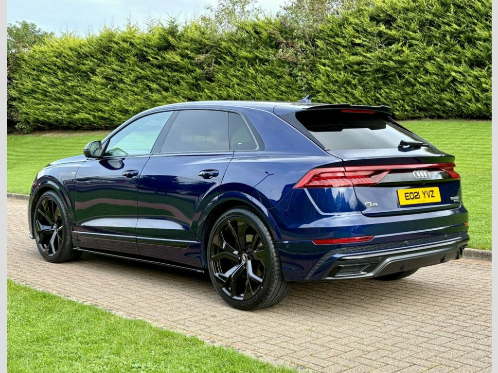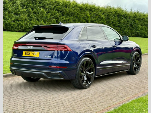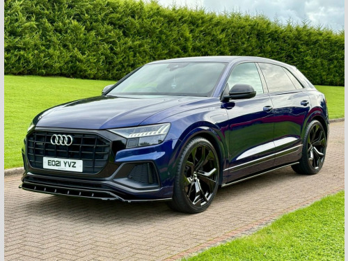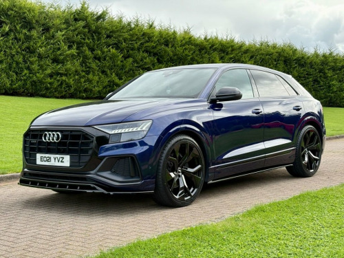 March 2021 Audi Q8 50TDI Quattro Black Edition Auto in Navarra Blue. Full Service History and MOT'd to August 2026. Loaded with spec including Full Heated Leather Interior, Electric Seats, Virtual Cockpit, Comfort & Sound Pack, Phonebox Wireless Charging, Navigation System, Cruise Control, Bluetooth, DAB Radio, Aero Styling Kit, Privacy Glass, Central Armrest, Adjustable Air Suspension, Black Pack etc. Fitted with Brand New 23" Alloys & Tyres (Optional Extra £1495) FINANCE AVAILABLE AT KEEN RATES!! Viewing by Appointment Only Please 22in Alloy Wheels - 5-Twin-Spoke Design, 4-Way Lumbar Support for Front Seats, Adaptive Air Sport Suspension, AMI - Audi Music Interface, Anti-Theft Alarm with Tow-Away Protectio, Anti-Theft Wheel Bolts and Wheel Looseni, Audi Connect, Audi Connect Safety and Service - e-call, Audi Drive Select with 7 Modes, Audi Phone Box with Wireless Charging, Audi Pre-Sense Front, Audi Smartphone Interface, Audi Sound System, Audi Virtual Cockpit - 12.3in High Resol, Auto Dimming and Frameless Rear View Mir, Black Cloth Headlining, Comfort Front Centre Armrest, Coming-Leaving Home Animations in Front , Cruise Control with Speed Limiter, DAB Digital Radio, Deluxe 4-Zone Automatic Climate Control, Door Mir