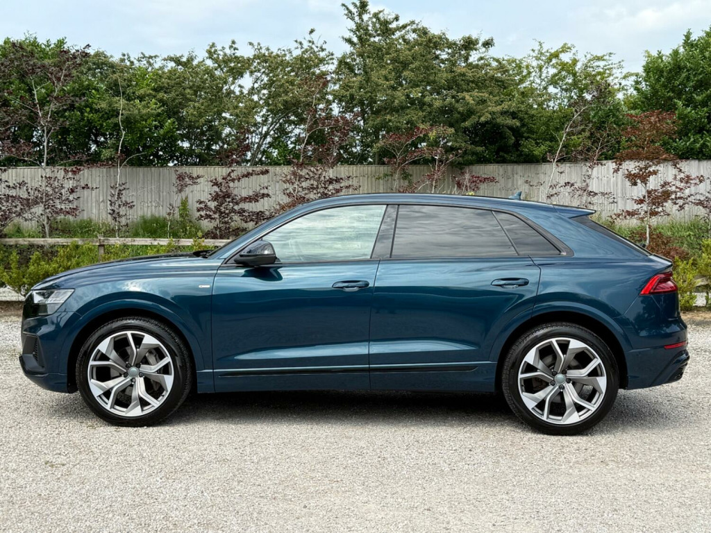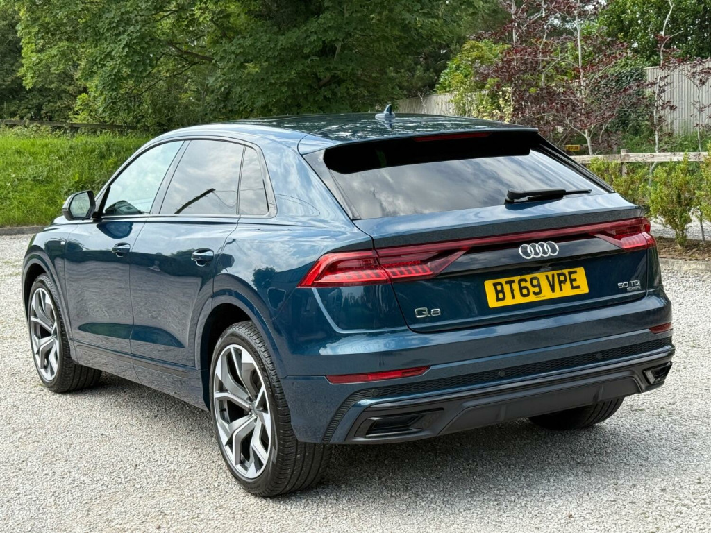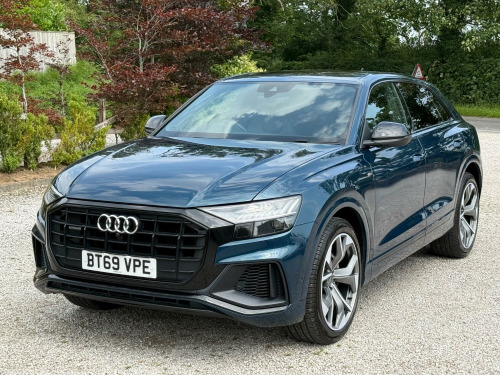 Fabulous Top Spec 2019 / 69 Audi Q8 3.0V6 TDi Quattro 50 Edition 1… Not Many Of These Around; And This Is The Cheapest Anywhere By A Country Mile! (Almost £2,000 Less Than AutoTrader RRP) Looks Beautiful In Metallic Galaxy Blue With Contrasting Black Nappa Leather Interior. 93000 Miles. Limited Range Topping Edition 1 Model: Has Panoramic Glass Sunroof, Unmarked 22 Inch Wheels With Pirelli Scorpion Tyres All Round, Matrix LED Headlights, Dynamic Sweeping Indicators, Virtual Cockpit, 360 Degree 3D Cameras, Bang & Olufsen, Alcantara Headlining, Leather Dash & Door Cards, Plus Lots More!! Call Now To Reserve! Part Exchange Welcome