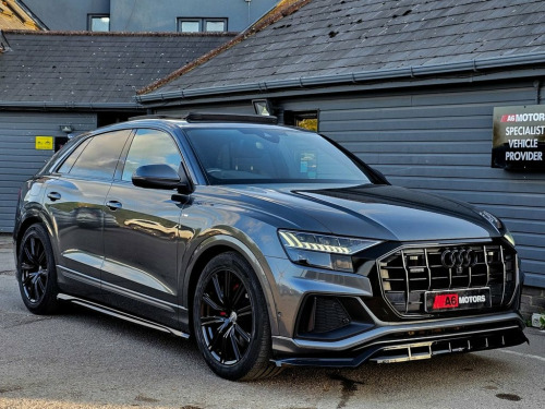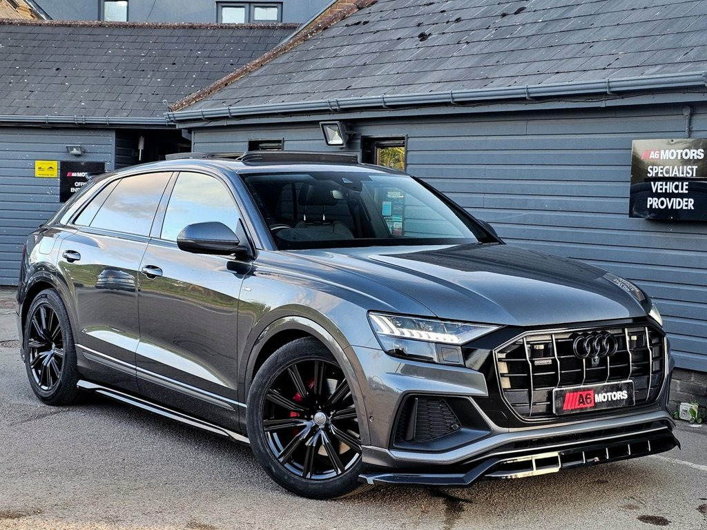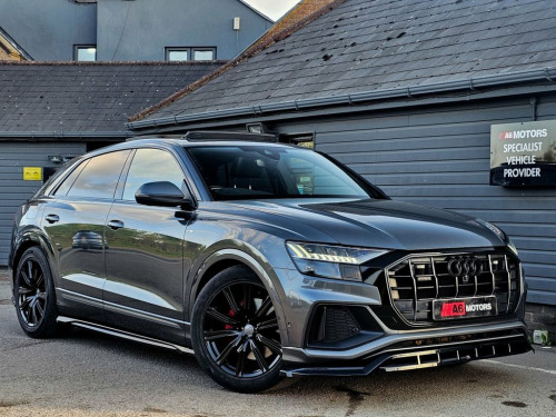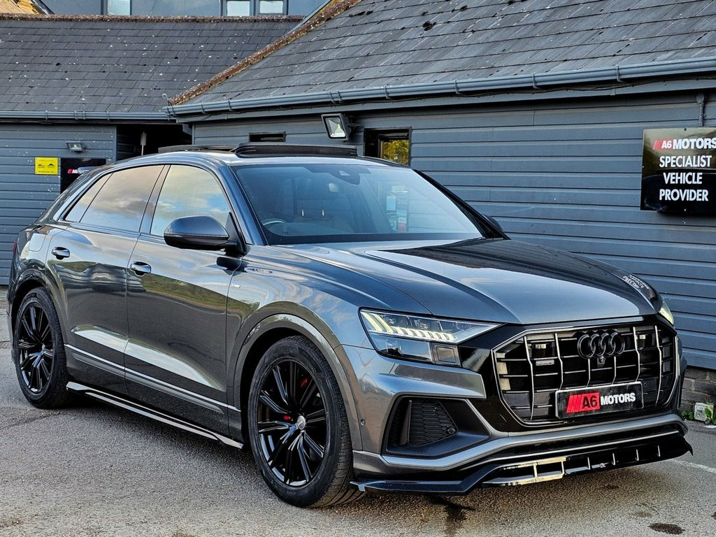 LOW RATE SAME DAY FINANCE AVAILABLE WITH £0 DEPOSIT. CALL OUR FINANCE TEAM FOR A QUOTATION TODAY. REQUEST A PERSONALISED VIDEO TODAY. STUNNING AUDI Q8 IN DAYTONA GREY BOASTING HUGE SPEC FROM FACTORY INCLUDING PANORAMIC ROOF, AMBIENT LIGHTING, B&O 3D SOUND, 360 CAMERA, ELECTRIC TOW BAR AND MUCH MORE. LOVELY CONDITION THROUGHOUT. LOOKS STUNNING WITH THE MAXTON DESIGN KIT AND MUST BE SEEN TO BE FULLY APPRECIATED! Comfort and Sound Package, Daytona Grey, Bang and Olufsen 3D Advanced Sound Syste, City Assist Pack, Heated Front and Rear Seats, Load-Area Fixing Kit, Extended LED Interior Lighting Package -, Deluxe 4-Zone Automatic Climate Control, Adaptive Windscreen Wipers, Trailer Hitch, Panoramic Glass Sunroof, 21in Alloy Wheels - 5-Arm Star Design - , 21in Alloy Wheels - 5-Segment-Spoke Desi, 48 Volt Mild Hybrid Technology, AMI - Audi Music Interface, Adaptive Air Sport Suspension, Airbags - Driver, Airbags - Front Curtain, Airbags - Front Passenger, Aluminium Window Trims, Anti Theft Locking Wheel Bolts and Wheel, Anti-Theft Alarm with Tow-Away Protectio, Audi Connect, Audi Connect Safety and Servic