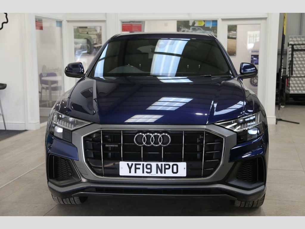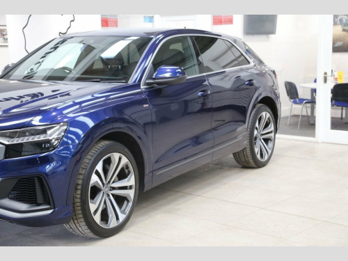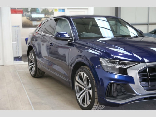 This stunning Audi Q8 3.0 TDI V6 50 S line SUV blends cutting-edge technology, performance, and luxurious design in a way that only Audi can. With its powerful 286 PS V6 TDI engine, this vehicle offers a thrilling driving experience, whether you're cruising on the motorway or tackling more challenging terrains with its quattro all-wheel-drive system. The advanced Tiptronic transmission allows for smooth, responsive shifts, while the Euro 6 compliance ensures it's both environmentally friendly and ready for the future. Finished in the striking Navarra Blue metallic paint, the Q8 turns heads wherever it goes. The bold, dynamic design is further enhanced by the darkened matt brushed aluminum accents, offering a sophisticated yet sporty aesthetic. Its 22" x 10.0J 5-double arm design contrast grey aluminium alloy wheels, paired with 285/40 R22 tyres, not only provide an aggressive stance but also ensure superior grip and performance on all roads. Inside, the Audi Q8 offers a premium and spacious cabin, designed with both luxury and comfort in mind. From the advanced infotainment system to the plush leather seating, every detail has been carefully crafted to elevate your driving experience. The inclusion of metallic paint adds a touch of elegance, while the sophisticated styling continues throughout the vehicle. Whether you're seeking a powerful, high-performance SUV or a comfortable, feature-packed vehicle for everyday use, this Audi Q8 delivers on all fronts. It's ready f Navarra Blue, 22in Alloy Wheels - 5-Parallel-Spoke Des, 21in Alloy Wheels - 5-Segment-Spoke Desi, 48 Volt Mild Hybrid Technology, AMI - Audi Music Interface, Adaptive Air Sport Suspension, Airbags - Driver, Airbags - Front Curtain, Airbags - Front Passenger, Aluminium Window Trims, Anti Theft Locking Wheel Bolts and Wheel, Anti-Theft Alarm with Tow-Away Protectio, Audi Connect, Audi Connect Safety and Service, Audi Drive Select, Audi HD Matrix LED Headlights, Audi Phone Box with Wireless Charging, Audi Pre-Sense Front, Audi Smartphone Interface, Audi Sound System, Audi Virtual Cockpit, Auto Dimming and Frameless Rear View Mir, Cloth Headlining in Black, Comfort Front Centre Armrest, Coming-L