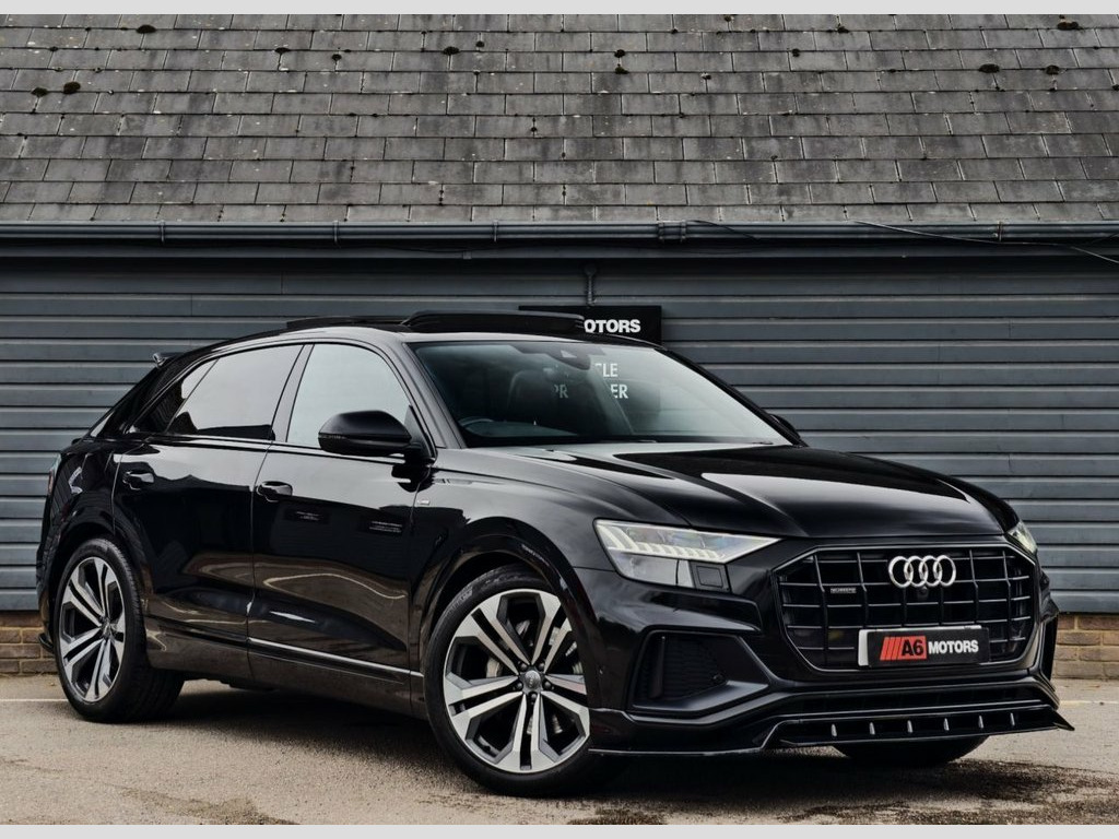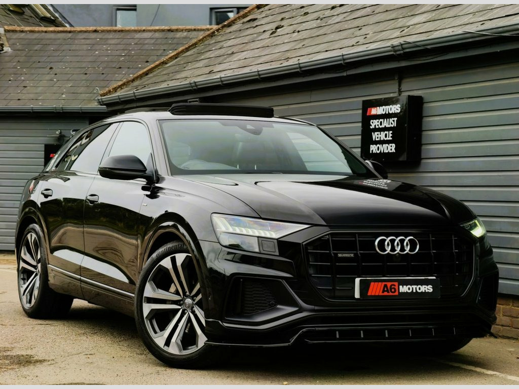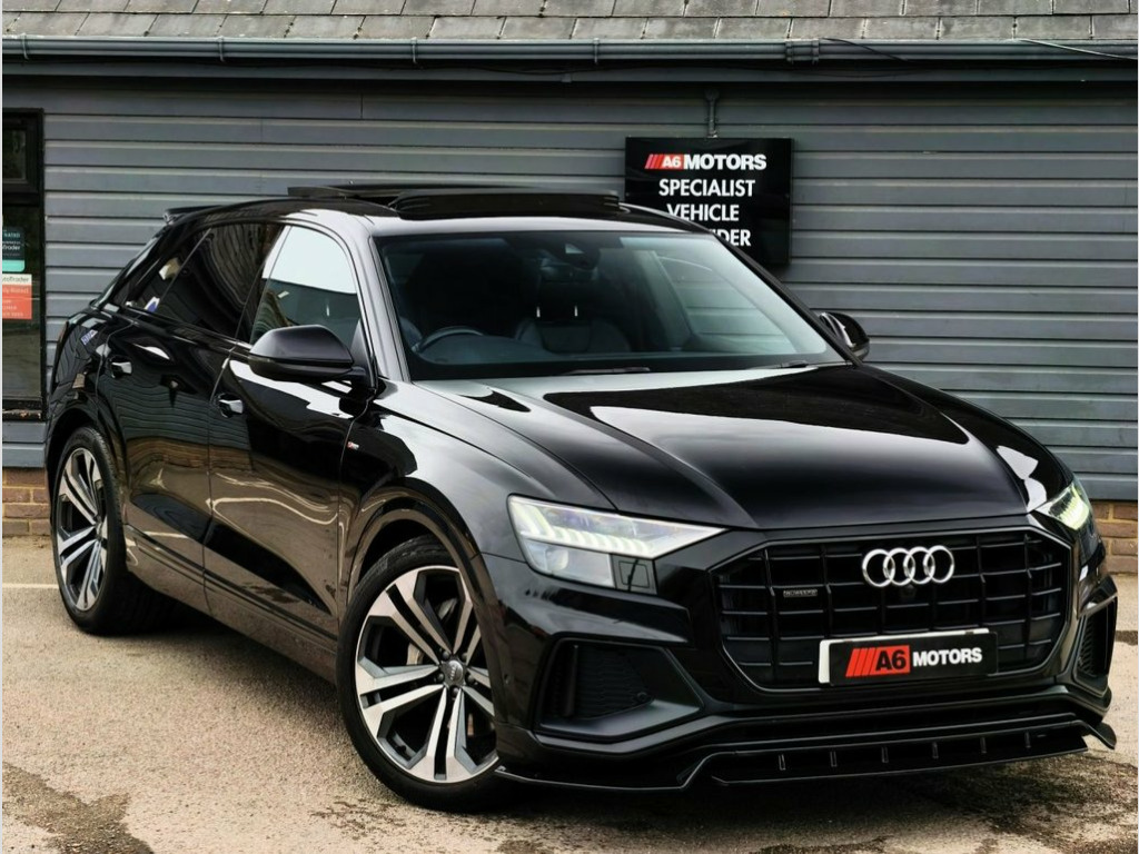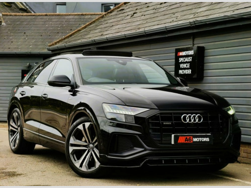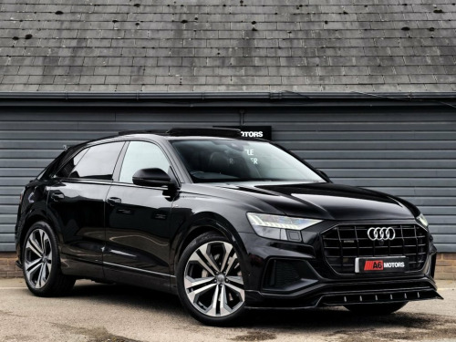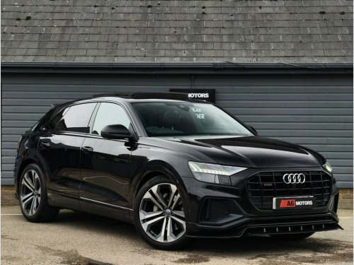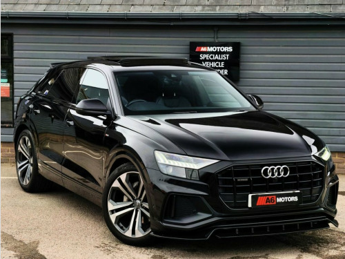 SAME DAY FINANCE AVAILABLE WITH £0 DEPOSIT. CALL OUR FINANCE TEAM FOR A QUOTATION TODAY. REQUEST A PERSONALISED VIDEO TODAY. STUNNING AUDI Q8 COMPLIMENTED BY A BIG A BIG FACTORY & BOASTING A GLOSS BLACK BODY STYLING KIT. THIS LOVELY EXAMPLE IS SUPPLIED HPI CLEAR & WITH A NATIONWIDE WARRANTY. GOOD CONDITION THROUGH OUT. DRIVES WELL. SPECIFICATION INCLUDES 22" ALLOY WHEELS, PANORAMIC GLASS SUNROOF, COMFORT & SOUND PACK WITH 360 CAMERA & BANG OLUFSEN SOUND SYSTEM, 3D CAMERA SYSTEM & REVERSING CAMERA, ADAPTIVE AIR SUSPENSION, CRUISE CONTROL, MULTI FUNCTION FLAT BOTTOM STEERING WHEEL, FRONT ELECTRIC SEATS WITH DRIVERS MEMORY, AUTO LIGHTS, FRONT HEATED SEATS, DAB RADIO, BLUETOOTH TELEPHONE, APPLE CAR PLAY & ANDROID AUTO, SAT NAV, AMBIENT LIGHTING, BLUETOOTH AUDIO & MORE. Orca Black, Audi Warranty 4 Years 75000 Miles, Flat-Bottomed 3-Spoke Leather-Trimmed Mu, Panoramic Glass Sunroof, Comfort and Sound Package, 22in Alloy Wheels - 5-Parallel-Spoke Des, 21in Alloy Wheels - 5-Arm Star Design - , 2-Zone Automatic Climate Control, 21in Alloy Wheels - 5-V-Spoke S Design -, 4-Way Lumbar Support for Front Seats, AMI - Audi Music Interface, Adaptive Air Sport Suspension, Airbags - Driver - Front Passenger - Fro, Aluminium Window Trims, Anti-Theft Alarm with Tow-Away Protectio, Anti-Theft Wheel Bolts and Wheel Looseni, Audi Connect, Audi Connect Safety and Service - e-call, Audi Drive Select with 7 Modes, Audi Phone Box with Wireless Charging, Audi Pre-Sense Front, Aud