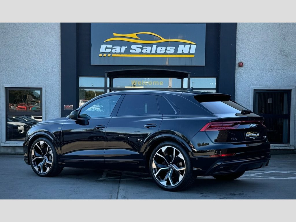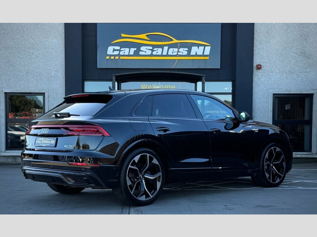 2023 AUDI Q8 S LINE QUATTRO 50 TDI V6 282 BHP 1 Owner from new, Covered 28k miles, Finished in Black, Key Features include: 23'' Upgraded alloy wheels (£2,000 Optional extra) Adaptive Air Suspension Rear privacy glass Black Edition styling Front and Rear Parking sensors 360* Parking Camera Full Leather S Line interior Leather Multifunctional steering wheel Paddle shift Heated front seats Electrically adjustable front seats Dual Climate control Virtual cockpit DAB Radio / Bluetooth / Sat Nav Bang and Olufsen Sound system Comfort and Sound Pack Electronic Tailgate AUDI Drive Mode Select ISOFIX Child seat points And so much more... Call today to arrange a test drive Tailored finance packages available to suit your needs (Excludes ROI) Comprehensive warranty on all cars Trade ins welcome Delivery to North and South of Ireland if required 2-Zone Automatic Climate Control, 21in Alloy Wheels - 5-V-Spoke S Design -, 4-Way Lumbar Support for Front Seats, AMI - Audi Music Interface, Adaptive Air Sport Suspension, Aluminium Window Trims, Anti-Theft Alarm with Tow-Away Protectio, Anti-Theft Wheel Bolts and Wheel Looseni, Audi Connect (3 Year Subscription From N, Audi Connect Safety and Service - e-call, Audi Connect with Amazon Alexa Integrati, Audi Drive Select with 7 Modes, Audi Phone Box Light, Audi Pre-Sense Front, Audi Smartphone Interface, Audi Sound System, Audi Virtual Cockpit - 12.3in High Resol, Auto Dimming and Frameless Rear View Mir, Black Cloth Headlining, Body Coloured Door Mirrors, Camera Based Traffic Sign Recogniti