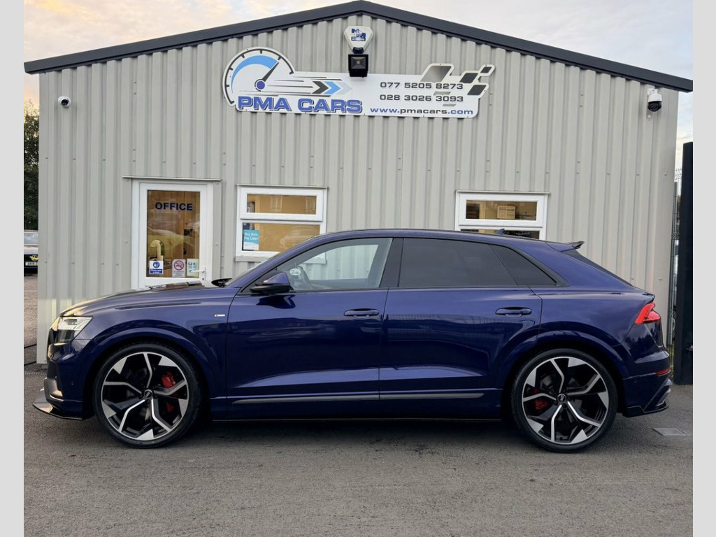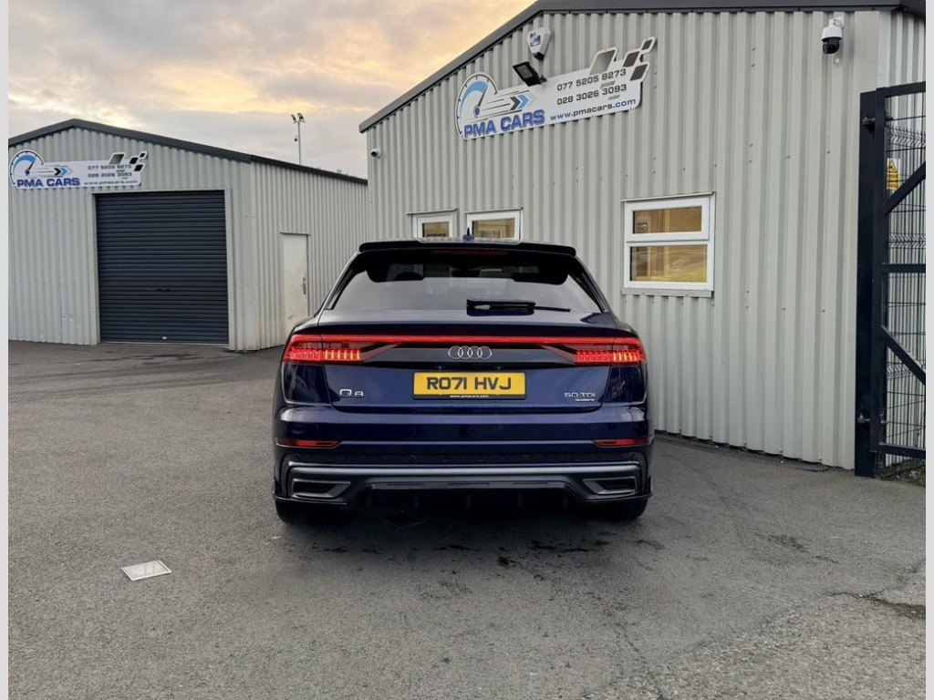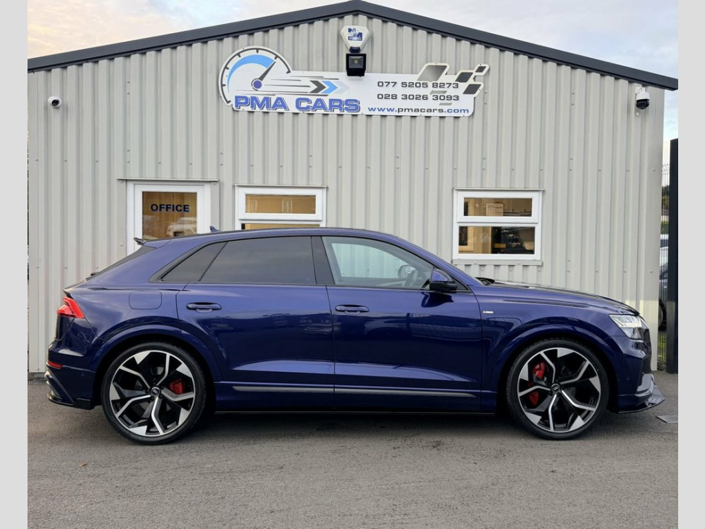 2021 Audi Q8 50 TDI S LINE Quattro 286 Bhp Automatic. Great Finance packages available Only 51,000 Miles Navara Blue With Black Leather interior Black Edition styling New 23" Alloy wheels are optional extra Styling kit Rear privacy glass Virtual Dash Satellite navigation system Reverse cameras Parking sensors Led daytime running lights Dab digital radio Air conditioning Heated seats Power tailgate Excellent condition throughout INSTANT IN-HOUSE FINANCE. Drive away today All Finance packages can be adjusted to best suit your budget Low deposit options available Credit and debit cards accepted £39995 07752058273 07763705142 02830263093 2-Zone Automatic Climate Control, 21in Alloy Wheels - 5-V-Spoke S Design -, 4-Way Lumbar Support for Front Seats, Adaptive Air Sport Suspension, Aluminium Window Trims, AMI - Audi Music Interface, Anti-Theft Alarm with Tow-Away Protectio, Anti-Theft Wheel Bolts and Wheel Looseni, Audi Connect Safety and Service - e-call, Audi Connect with Amazon Alexa Integrati, Audi Drive Select with 7 Modes, Audi Pre-Sense Front, Audi Smartphone Interface, Audi Sound System, Audi Virtual Cockpit - 12.3in High Resol, Auto Dimming and Frameless Rear View Mir, Black Cloth Headlining, Bluetooth Interface, Body Coloured Door Mirrors, Comfort Front Centre Armrest, Coming-Leaving Home Animations in Front , Cruise