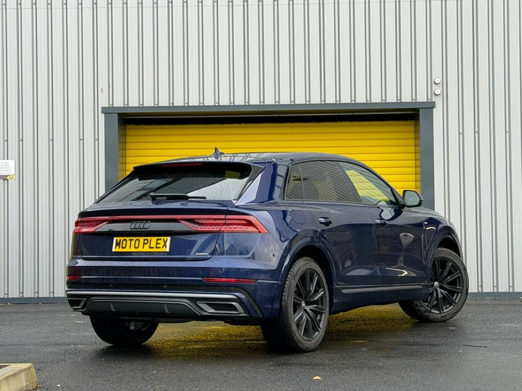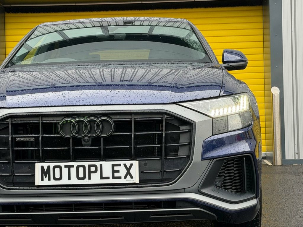 This 2020 Audi Q8 TDI V6 S line offers a compelling blend of performance and sophisticated design. As a Euro 6 compliant model, it features a powerful 3.0 litre diesel engine paired with Audi's renowned Four Wheel Drive system, ensuring excellent traction and stability in all conditions, Bang & Olufsen speaker system, 360 view camera parking system. The S line trim enhances its already striking presence, providing a sporty and luxurious feel both inside and out. With a substantial towing weight of 2800 kg, this Q8 is as practical as it is stylish, ready for any adventure. Experience the dynamic capabilities of this Q8, which accelerates from 0 to 60 miles per hour in a swift 6.1 seconds. This impressive acceleration demonstrates its superior performance compared to many other vehicles in its class. The combination of its potent engine, advanced drivetrain, and the premium S line specification makes this Audi Q8 a truly exceptional choice for those seeking a refined and capable SUV. 2-Zone Automatic Climate Control, 21in Alloy Wheels - 5-V-Spoke S Design -, 4-Way Lumbar Support for Front Seats, AMI - Audi Music Interface, Adaptive Air Sport Suspension, Airbags - Driver - Front Passenger - Fro, Aluminium Window Trims, Anti-Theft Alarm with Tow-Away Protectio, Anti-Theft Wheel Bolts and Wheel Looseni, Audi Connect, Audi Connect Safety and Service - e-call, Audi Drive Select with 7 Modes, Audi Phone Box with Wireless Charging, Audi Pre-Sense Front, Audi Smartphone Interface, Audi Sound System, Audi Virtual Cockpit - 12.3in High Resol, Auto Dimming and Frameless Rear View Mir, Black Cloth Headlining, Body Coloured Door Mirrors, Bumpers in Full Body Colour Paint Finish, Comf