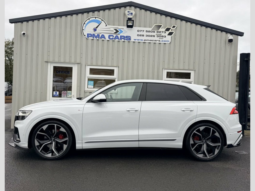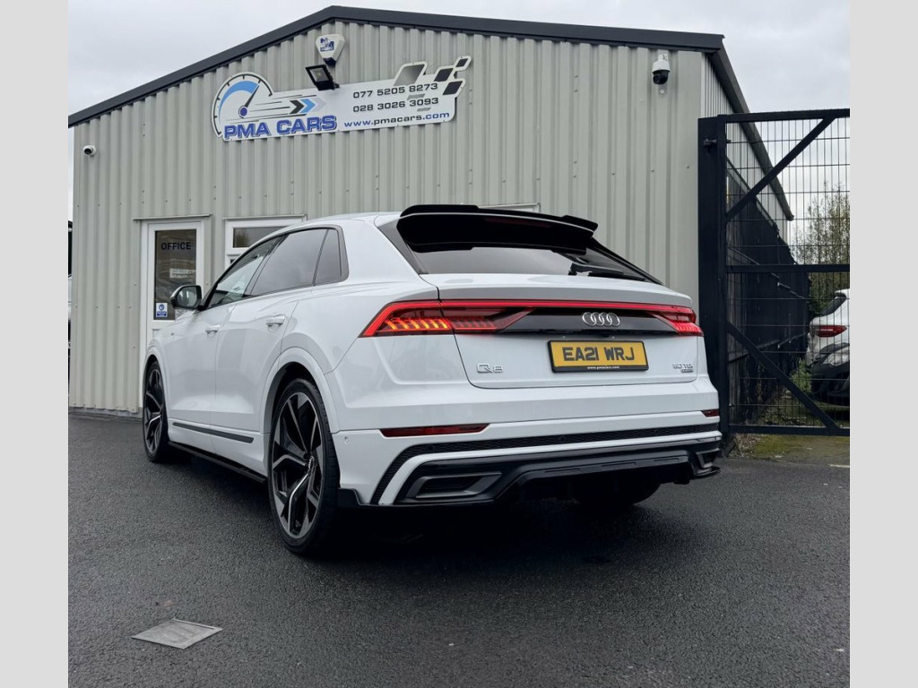 2021 Audi Q8 50 TDI S LINE Quattro 286 Bhp Automatic. Great Finance packages available Only 71,000 Miles Glacier White With Black Leather interior Black Edition styling New 23" Alloy wheels are optional extra Aero kit Rear privacy glass Comfort and sound pack Bang and olufsen premium sound system Virtual Dash Satellite navigation system Reverse cameras Parking sensors Led daytime running lights Dab digital radio Air conditioning Heated seats Power tailgate Excellent condition throughout INSTANT IN-HOUSE FINANCE. Drive away today All Finance packages can be adjusted to best suit your budget Low deposit options available Credit and debit cards accepted £36995 07752058273 07763705142 02830263093 2-Zone Automatic Climate Control, 21in Alloy Wheels - 5-V-Spoke S Design -, 4-Way Lumbar Support for Front Seats, Adaptive Air Sport Suspension, Aluminium Window Trims, AMI - Audi Music Interface, Anti-Theft Alarm with Tow-Away Protectio, Anti-Theft Wheel Bolts and Wheel Looseni, Audi Connect Safety and Service - e-call, Audi Connect with Amazon Alexa Integrati, Audi Drive Select with 7 Modes, Audi Pre-Sense Front, Audi Smartphone Interface, Audi Sound System, Audi Virtual Cockpit - 12.3in High Resol, Auto Dimming and Frameless Rear View Mir, Black Cloth Headlining, Bluetooth Interface, Body Coloured Door Mirrors, Comfort Front Centre Armrest, Coming-Leaving Home Animations in Front , Cruise