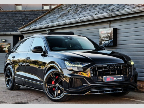 SAME DAY FINANCE AVAILABLE WITH £0 DEPOSIT. CALL OUR FINANCE TEAM FOR A QUOTATION TODAY. REQUEST A PERSONALISED VIDEO TODAY. STUNNING AUDI Q8 S LINE BOASTING A FULL AUDI SERVICE HISTORY & COMPLIMENTED BY A GOOD FACTORY SPEC FURTHER BENEFITIN FROM HAVING A GLOSS BLACK BODY STYLING KIT FITTED. THIS LOVELY EXAMPLE IS SUPPLIED HPI CLEAR & WITH A NATIONWIDE WARRANTY. GOOD CONDITION THROUGH OUT. DRIVES WELL. GOOD TYRES ALL ROUND. CLEAN PAINTWORK. 21in Alloy Wheels - 5-Segment-Spoke Desi, 48 Volt Mild Hybrid Technology, AMI - Audi Music Interface, Adaptive Air Sport Suspension, Airbags - Driver, Airbags - Front Curtain, Airbags - Front Passenger, Aluminium Window Trims, Anti Theft Locking Wheel Bolts and Wheel, Anti-Theft Alarm with Tow-Away Protectio, Audi Connect, Audi Connect Safety and Service, Audi Drive Select, Audi HD Matrix LED Headlights, Audi Phone Box with Wireless Charging, Audi Pre-Sense Front, Audi Smartphone Interface, Audi Sound System, Audi Virtual Cockpit, Auto Dimming and Frameless Rear View Mir, Cloth Headlining in Black, Comfort Front Centre Armrest, Coming-Leaving Home Animations in Front , Cruise Control with Sp