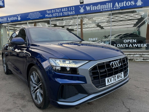 SUPERBLY MAINTAINED AUDI Q8 + IN EXCELLENT CONDITION ALL ROUND + TWO SETS OF KEYS + TWO OWNERS FROM NEW + LED DAYTIME RUNNING LIGHTS + FRONT & REAR PARKING ASSISTANCE WITH REVERSE CAMERA + ELECTRIC FOLDING EXTERNAL MIRRORS + CRUISE CONTROL + HEATED FRONT SEATS + REAR TV SCREENS + SATELLITE NAVIGATION SYSTEM + DAB DIGITAL RADIO + BLUETOOTH AUDIO & HANDSFREE + FULL AUDI SERVICE HISTORY + CONSISTS OF 5 SERVICES UP TO 76K + FREE PRE DELIVERY INSPECTION INCLUDED + CALL NOW TO AVOID DISAPPOINTMENT!****Family Run Company Serving The Area For Over 25 Years - All Vehicles PDI And HPI Checked With Genuine Verified Warranted Mileage - All Vehicles Inspection Are Done By Our Own Fully Qualified and Trained Technicians Through Our Own Independent Workshop - No Admin Fees - Open 7 Days A Week Also Opened On All Bank Holidays - Used Car Finance Authorised and Regulated By The FCA - Poor Credit Used Car Finance Available - Part Exchange Welcome - All Major Credit/Debit Cards Accepted - We Are Located on the A1 Southbound Dual Carriageway, Bedfordshire, Our Sat/Nav Postcode: SG19 1DZ- A Varity of Choice Of Up To 200+ Quality Used Cars For Sale All On One Site - For Further Information, Part Exchange Valuations or Finance Quotations Please Visit Our Website- www.WindmillAutosLtd.co.uk 2-Zone Automatic Climate Control, 21in Alloy Wheels - 5-V-Spoke S Design -, 4-Way Lumbar Support for Front Seats, Adaptive Air Sport Suspension, Aluminium Window Trims, AMI - Audi Music Interface, Anti-Theft Alarm with Tow-Away Protectio, Anti-Theft Wheel Bolts and Wheel Looseni, Audi Connect, Audi Connect Safety and Service - e-call, Audi Drive Select with 7 Modes, Audi Phone Box with Wireless Charging, Audi Pre-Sense Front, Audi Smartphone Interface, Audi Sound System, Audi Virtual Cockpit - 12.3in High Resol, Auto Dimming and Frameless Rear View Mir, Black Cloth Headlining, Body Coloured Door Mirrors, Comfort Front Centre Armrest, Coming-Leaving Home Animations in Front , Cruise Control w