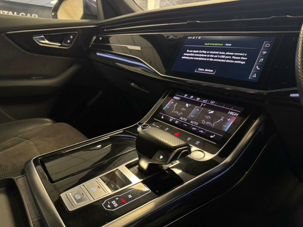 This 2019 Audi Q8 TDI V6 S line boasts a clear vehicle history, offering you peace of mind. This impressive four wheel drive model features a powerful 3.0 litre diesel engine, meeting Euro 6 emissions standards. Inside, you'll find deluxe 2 zone electronic climate control for personalised comfort, and the driver's seat offers memory function for easy adjustment. Navigating tight spaces is made simpler with the rear view camera and front and rear parking sensors, part of the Parking System Plus. Stay connected on the go with the Audi Smartphone Interface, compatible with both Android Auto and Apple CarPlay.Experience exhilarating performance with this Q8, capable of accelerating from 0 to 62 miles per hour in just 6.3 seconds, a testament to its dynamic capabilities. This performance, combined with its substantial 2800 kg towing weight, sets it apart from many other vehicles in its class. Furthermore, the generous boot space ensures practicality for all your needs, whether it's for everyday errands or longer journeys. in alloy wheels - 5-segment-spoke design, 48 volt mild hybrid technology, ami - audi music interface, adaptive air sport suspension, airbags - driver, airbags - front curtain, airbags - front passenger, aluminium window trims, anti theft locking wheel bolts and wheel loosening detection, anti-theft alarm with tow-away protection, audi connect, audi connect safety and service, audi drive select, audi hd matrix led headlights, audi phone box with wireless charging, audi pre-sense front, audi smartphone interface, audi sound system, audi virtual cockpit, auto dimming and frameless rear view mirror, cloth headlining in black, comfort front centre armrest, coming-leaving home animations in front and rear, cruise control with speed limiter, dab digital radio, deluxe 2-zone electronic climate control, door mirrors - heated-electrically adjustable-folding and auto dimming with memory function, esc - electronic stabilisation control inc abs - asr and edl, electric windows - front and rear, electrically adjustable front seats with memory function for drivers side, electromechanical parking brake, electromechanical power steering - speed-sensitive provides a precise steering feel at high speeds and excellent assistance when parking., extended pedestrian protection, exterior mirror housings in body colour, first aid kit and warning triangle, front and rear floor mats, front and rear side airbags with head airbag system, headlight washers, heat insulating glass - windscreen, heated front seats, hill descent control, hill hold assist, isofix child seat mounting for the front passenger seat with front passenger airbag deactivation and isofix child seat mounting and top tether for the outer rear seats, illuminated door sill trims with s logo, illuminated sun visors with vanity mirrors, inlays - darkened matt brushed aluminium, keyless go with remote central locking, led interior ambient lighting pack, lane departure warning, leather gear lever, light and rain sensor, luggage compartment sill protection in stainless steel, mmi navigation plus with mmi touch, natural voice recognition, operating buttons in black - glass look with haptic feedback, parking system plus - front and rear sensors, pedals in stainless steel, power operated tailgate, privacy glass, rear-view camera, s line badges on the front wings, s line body styling, s line styling, s line front and rear bumpers - air inlets - door trim strips, seat belt monitoring, seats - split folding rear - 40-20-40, signature led daytime-running lights, steering wheel - 3-spoke leather multi-function with shift paddles, tool kit, tyre pressure loss indicator, tyre repair kit, quattro all-wheel drive