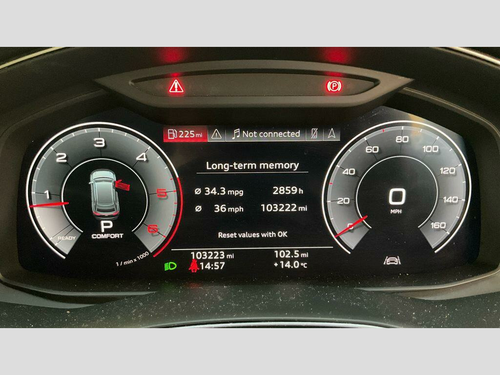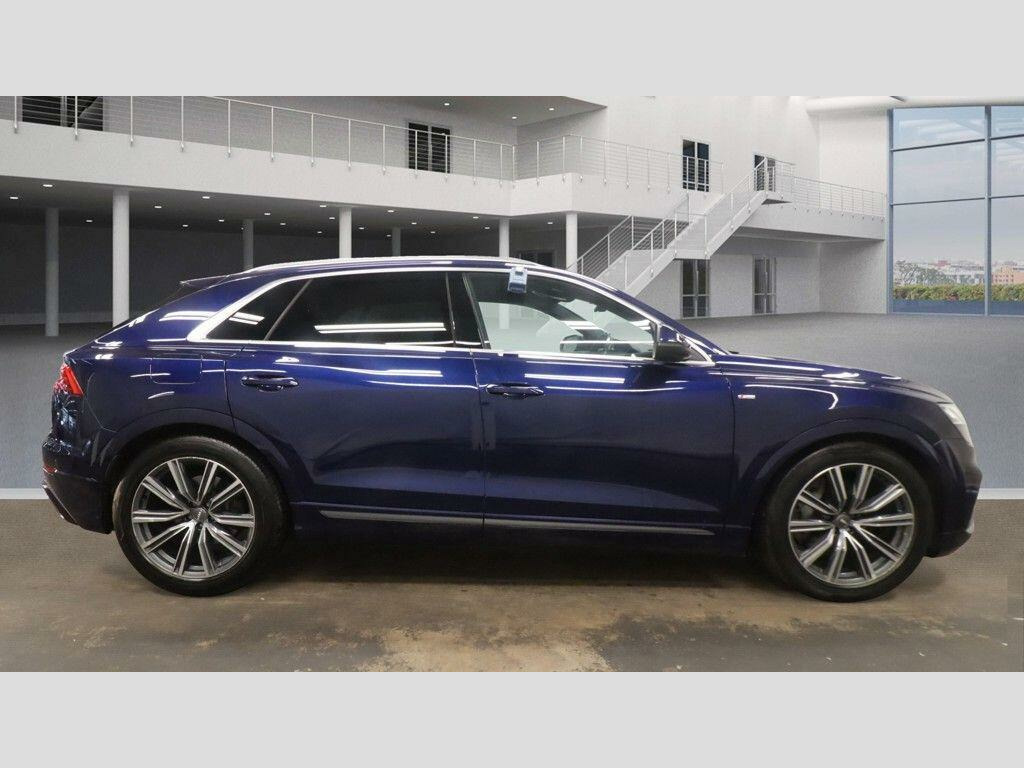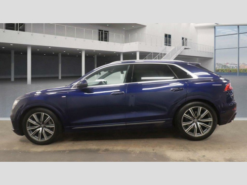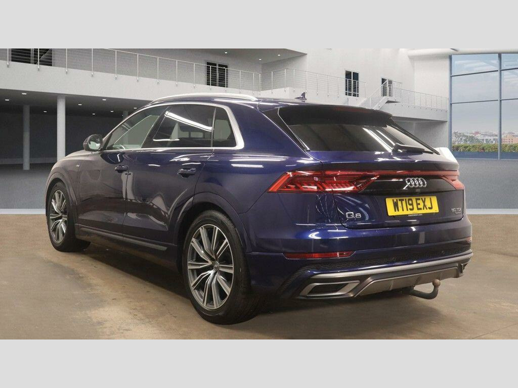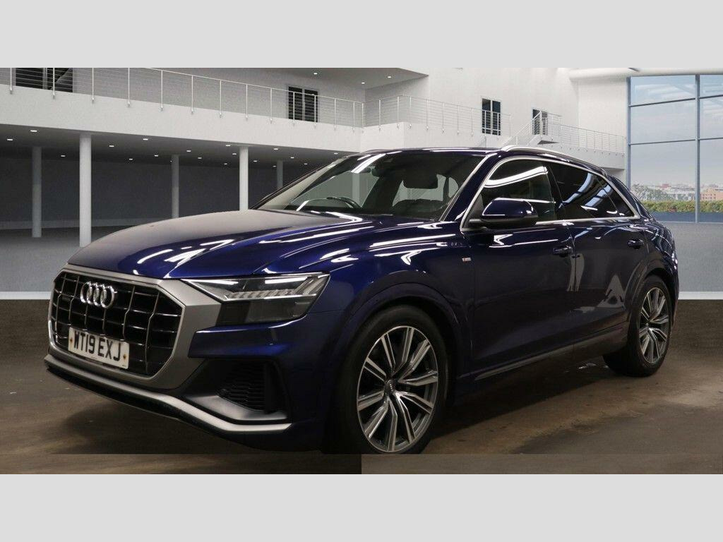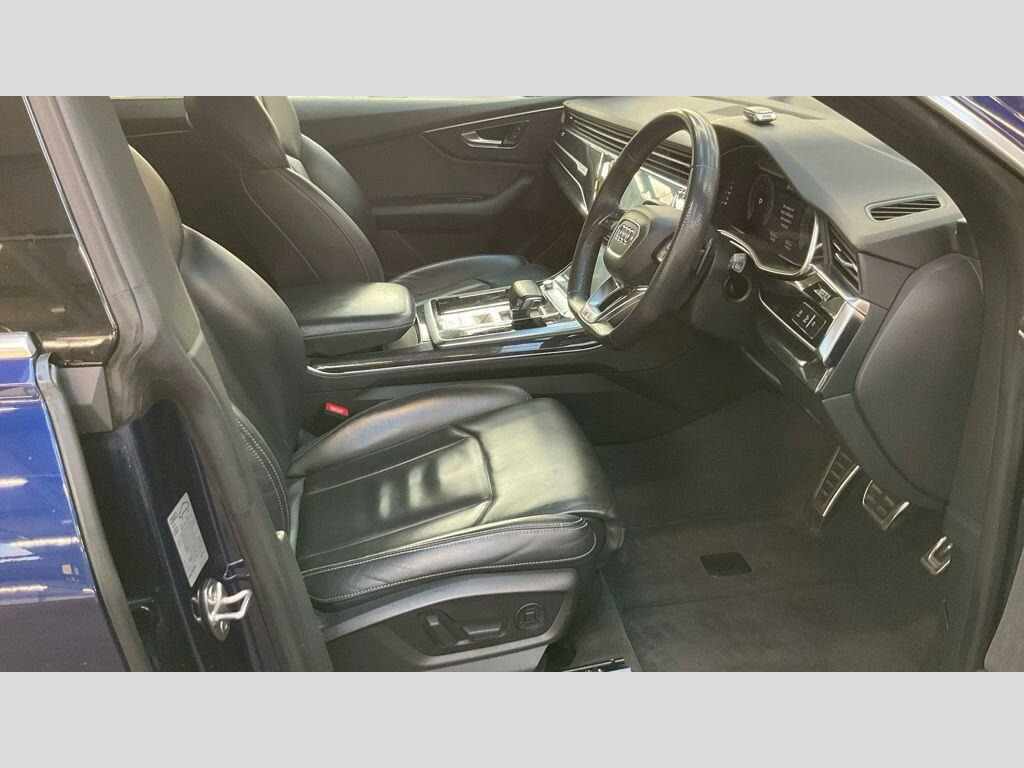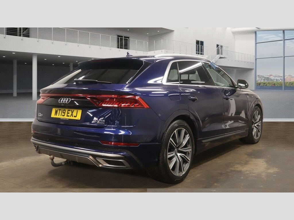 1 FORMER KEEPER2 KEYSFULL SERVICE HISTORY - 6 SERVICES - 4 MAIN DEALER SERVICES - SERVICE INTERVALS 18K, 37K, 54K, 73K, 82K, 91K, 101K - MOST RECENT SERVICE DONE 101,190 - BRAKE FLUID SERVICE DONE 73,608LOGBOOKThis 2019 Audi Q8 TDI V6 S line boasts a clear vehicle history, offering you peace of mind. This impressive four wheel drive SUV is powered by a 3.0 litre Euro 6 diesel engine, delivering a potent blend of performance and efficiency. The S line trim ensures a sporty aesthetic and a wealth of desirable features, including the Audi Smartphone Interface for seamless connectivity with Android Auto and Apple CarPlay, and heated front seats for enhanced comfort. You'll also appreciate the convenience of the Parking System Plus with front and rear sensors, the automatic headlights activated by the Light and Rain Sensor, and the electrically adjustable front seats with a memory function for the driver's side.Experience exhilarating performance with the Q8's rapid 0-62mph acceleration in just 6.3 seconds, a figure that sets it apart from many other vehicles in its class. This capability is matched by its substantial 2800 kg towing weight, making it a versatile choice for those who need to tow. Furthermore, the generous boot space provides ample room for luggage, shopping, or equipment, ensuring practicality for everyday life and longer journeys. lcona leather - black, 21in alloy wheels - 5-arm star design - contrasting grey - partly polished, 21in alloy wheels - 5-segment-spoke design, 48 volt mild hybrid technology, ami - audi music interface, adaptive air sport suspension, airbags - driver, airbags - front curtain, airbags - front passenger, aluminium window trims, anti theft locking wheel bolts and wheel loosening detection, anti-theft alarm with tow-away protection, audi connect, audi connect safety and service, audi drive select, audi hd matrix led headlights, audi phone box with wireless charging, audi pre-sense front, audi smartphone interface, audi sound system, audi virtual cockpit, auto dimming and frameless rear view mirror, cloth headlining in black, comfort front centre armrest, coming-leaving home animations in front and rear, cruise control with speed limiter, dab digital radio, deluxe 2-zone electronic climate control, door mirrors - heated-electrically adjustable-folding and auto dimming with memory function, esc - electronic stabilisation control inc abs - asr and edl, electric windows - front and rear, electrically adjustable front seats with memory function for drivers side, electromechanical parking brake, electromechanical power steering - speed-sensitive provides a precise steering feel at high speeds and excellent assistance when parking., extended pedestrian protection, exterior mirror housings in body colour, first aid kit and warning triangle, front and rear floor mats, front and rear side airbags with head airbag system, headlight washers, heat insulating glass - windscreen, heated front seats, hill descent control, hill hold assist, isofix child seat mounting for the front passenger seat with front passenger airbag deactivation and isofix child seat mounting and top tether for the outer rear seats, illuminated door sill trims with s logo, illuminated sun visors with vanity mirrors, inlays - darkened matt brushed aluminium, keyless go with remote central locking, led interior ambient lighting pack, lane departure warning, leather gear lever, light and rain sensor, luggage compartment sill protection in stainless steel, mmi navigation plus with mmi touch, natural voice recognition, operating buttons in black - glass look with haptic feedback, parking system plus - front and rear sensors, pedals in stainless steel, power operated tailgate, privacy glass, rear-view camera, s line badges on the front wings, s line body styling, s line styling, s line front and rear bumpers - air inlets - door trim strips, seat belt monitoring, seats - split folding rear - 40-20-40, signature led daytime-running lights, steering wheel - 3-spoke leather multi-function with shift paddles, tool kit, tyre pressure loss indicator, tyre repair kit, quattro all-wheel drive