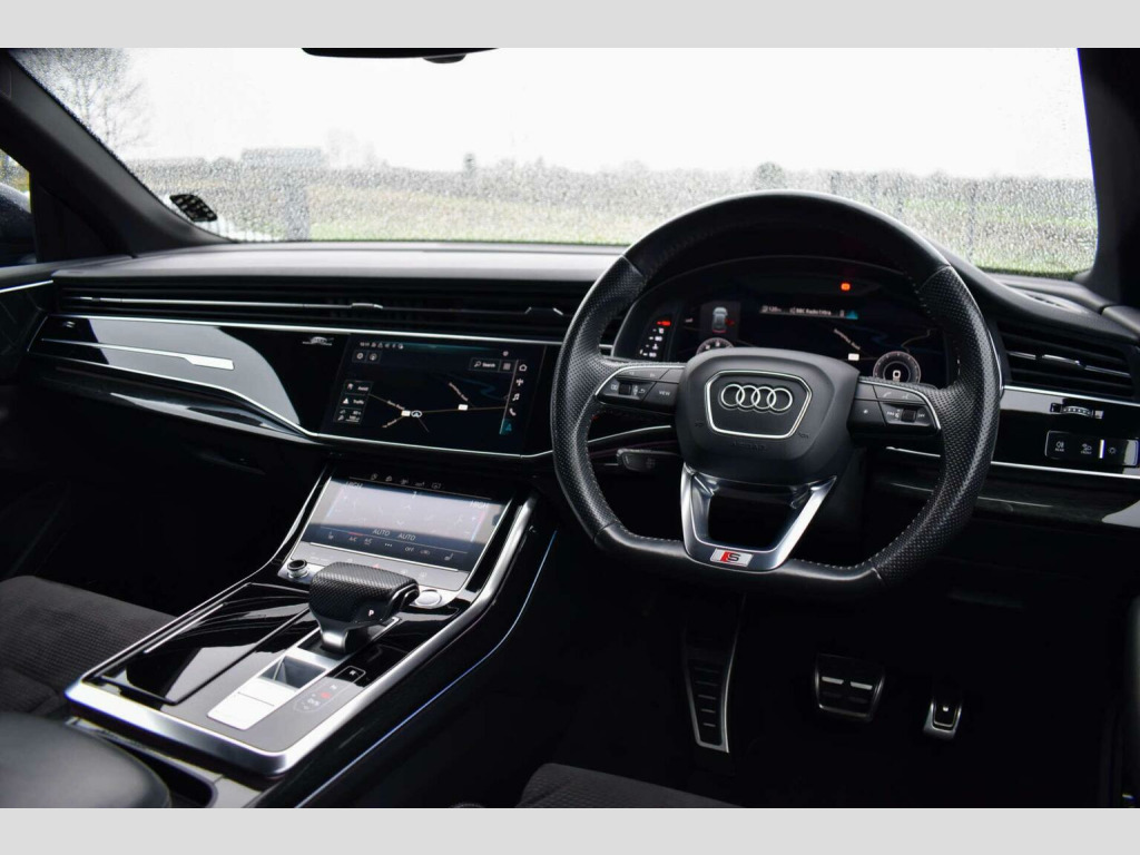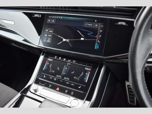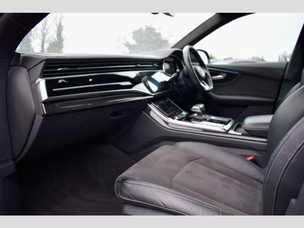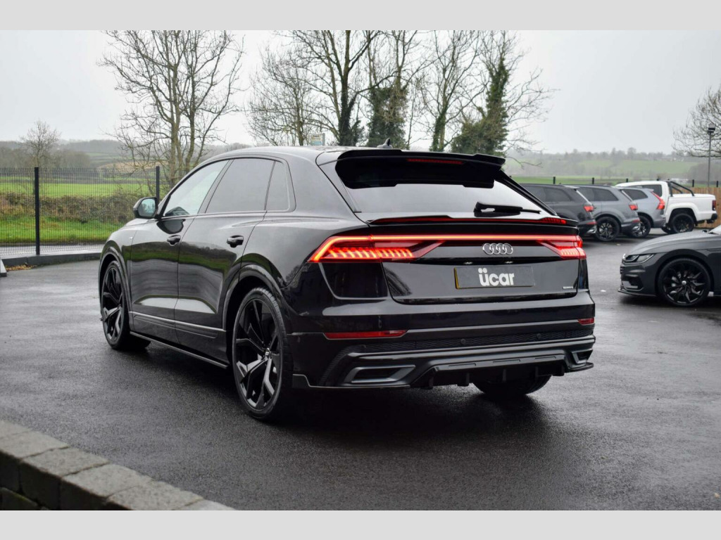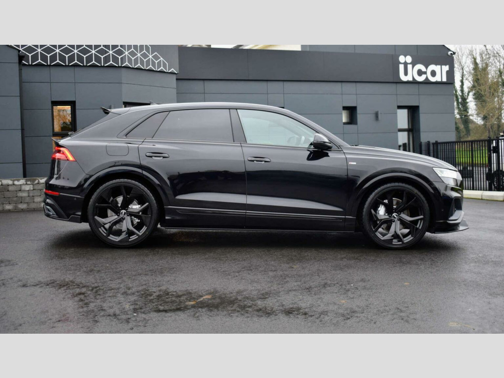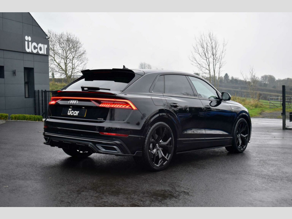 2019 Audi Q8 50 V6 S-Line S-Tronic covered 44k Miles. Finished in Orca Black, Comes with a Full Service History and 2 Keys. Gloss Black Aero Kit, Comfort & Sound Pack, Exterior Black Pack, Matrix LED Headlights, Adaptive Air Suspension, 360 Parking Camera, Bang & Olufsen Sound, Virtual Cockpit , Electric Heated Memory Seating, Flat Bottom Multi Function Steering Wheel, Sat-Nav, Park Assist Pack, Reverse Camera, Front & Rear Parking Sensors, Privacy Glass etc, Fitted with Brand New 23 Audi Style Alloys (optional upgrade £1695 extra)