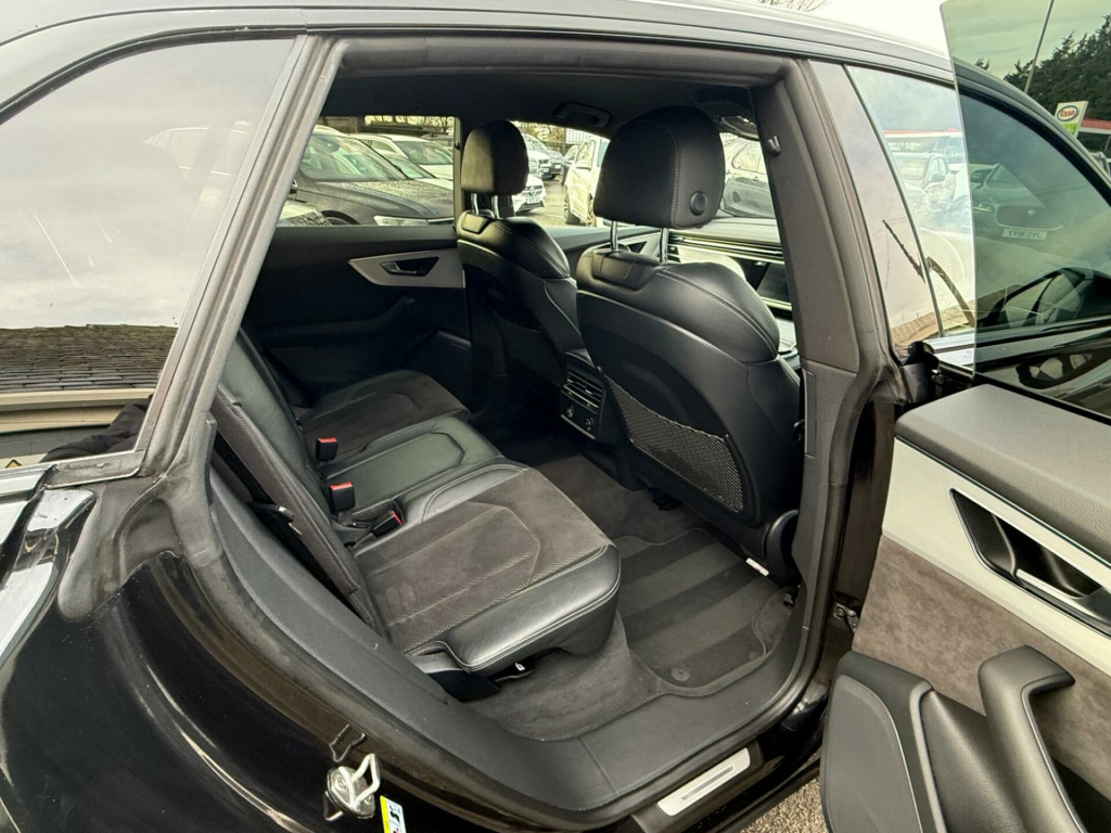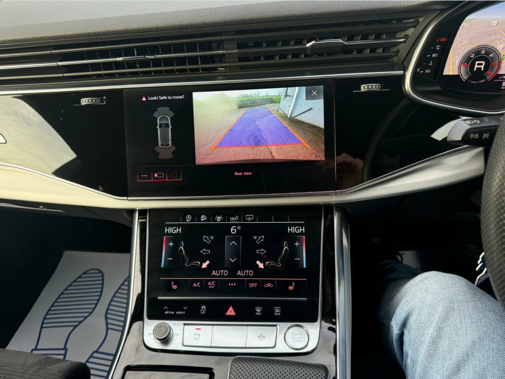 This 2019 Audi Q8 TDI V6 S line offers a compelling blend of performance and luxury, boasting a powerful 3.0 litre diesel engine and Audi's renowned Four Wheel Drive system for confident handling in all conditions. As a Euro 6 compliant vehicle, it meets stringent emission standards. The S line trim enhances its sporty appeal, while features like Deluxe 2-Zone Electronic Climate Control and Heated Front Seats ensure a comfortable experience for all occupants. Navigating and parking are made easier with the Audi HD Matrix LED Headlights, Light and Rain Sensor, and a helpful Rear-View Camera.The Q8 TDI V6 S line excels with its impressive acceleration, reaching 0-62mph in just 6.3 seconds, a testament to its dynamic capabilities. This performance, combined with a substantial towing weight of 2800 kg, makes it a versatile choice for various needs. Furthermore, the generous boot space provides ample room for luggage, shopping, or equipment, setting it apart from many other vehicles in its class. in alloy wheels - 5-segment-spoke design, 48 volt mild hybrid technology, ami - audi music interface, adaptive air sport suspension, airbags - driver, airbags - front curtain, airbags - front passenger, aluminium window trims, anti theft locking wheel bolts and wheel loosening detection, anti-theft alarm with tow-away protection, audi connect, audi connect safety and service, audi drive select, audi hd matrix led headlights, audi phone box with wireless charging, audi pre-sense front, audi smartphone interface, audi sound system, audi virtual cockpit, auto dimming and frameless rear view mirror, cloth headlining in black, comfort front centre armrest, coming-leaving home animations in front and rear, cruise control with speed limiter, dab digital radio, deluxe 2-zone electronic climate control, door mirrors - heated-electrically adjustable-folding and auto dimming with memory function, esc - electronic stabilisation control inc abs - asr and edl, electric windows - front and rear, electrically adjustable front seats with memory function for drivers side, electromechanical parking brake, electromechanical power steering - speed-sensitive provides a precise steering feel at high speeds and excellent assistance when parking., extended pedestrian protection, exterior mirror housings in body colour, first aid kit and warning triangle, front and rear floor mats, front and rear side airbags with head airbag system, headlight washers, heat insulating glass - windscreen, heated front seats, hill descent control, hill hold assist, isofix child seat mounting for the front passenger seat with front passenger airbag deactivation and isofix child seat mounting and top tether for the outer rear seats, illuminated door sill trims with s logo, illuminated sun visors with vanity mirrors, inlays - darkened matt brushed aluminium, keyless go with remote central locking, led interior ambient lighting pack, lane departure warning, leather gear lever, light and rain sensor, luggage compartment sill protection in stainless steel, mmi navigation plus with mmi touch, natural voice recognition, operating buttons in black - glass look with haptic feedback, parking system plus - front and rear sensors, pedals in stainless steel, power operated tailgate, privacy glass, rear-view camera, s line badges on the front wings, s line body styling, s line styling, s line front and rear bumpers - air inlets - door trim strips, seat belt monitoring, seats - split folding rear - 40-20-40, signature led daytime-running lights, steering wheel - 3-spoke leather multi-function with shift paddles, tool kit, tyre pressure loss indicator, tyre repair kit, quattro all-wheel drive