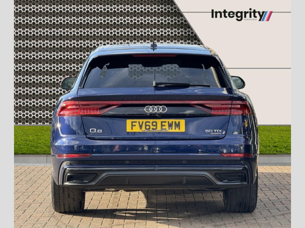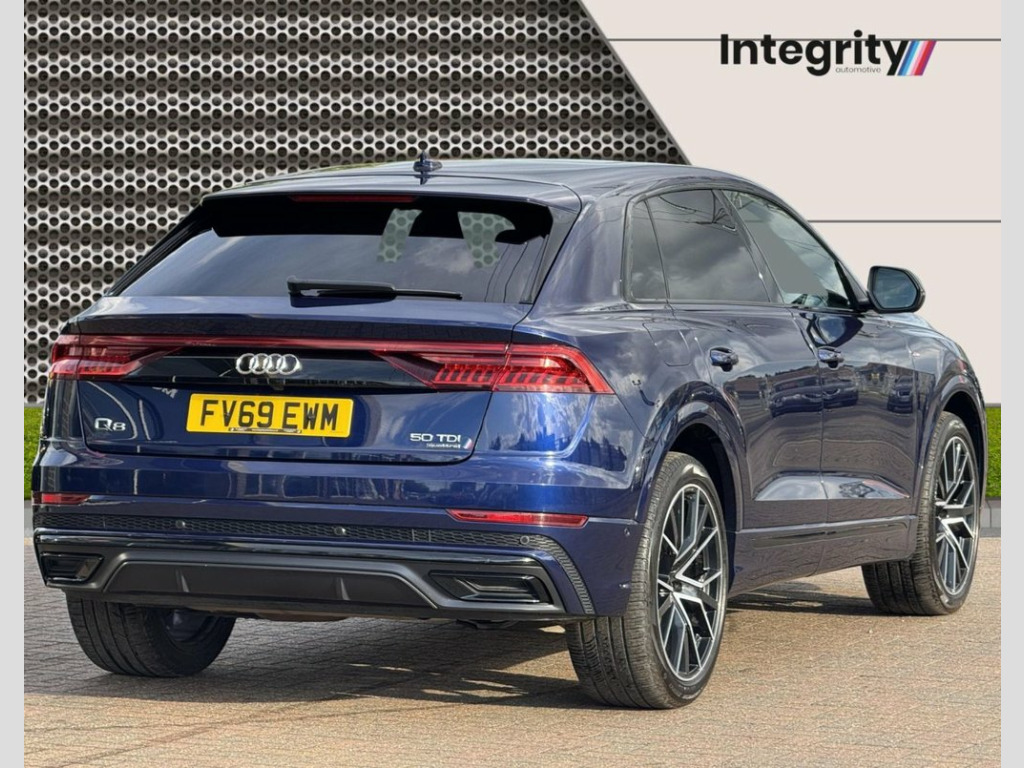 At Integrity Automotive, we are proud to present this 2019 Audi Q8 3.0 TDI V6 50 Vorsprung, finished in the striking Navarra Blue with a luxurious Black Valcona quilted leather interior. With 88,373 miles covered and a full service history including five services, the most recent in July 2024 at 81,994 miles, this example has been meticulously maintained, offering both reliability and peace of mind for its next owner. The Audi Q8 has been widely praised for combining SUV practicality with coupe-like styling and premium refinement. What Car? described the Q8 as "one of the most impressive SUVs in its class, offering a stunning interior, advanced technology and a composed ride," while Auto Express highlighted its "blend of luxury, performance, and versatility, making it a benchmark for large premium SUVs." The Vorsprung trim represents the pinnacle of the Q8 range, with features and finishes that elevate it above the standard model. Powered by the 3.0-litre TDI V6 diesel, the Q8 delivers effortless torque, smooth acceleration, and impressive efficiency for a vehicle of its size. Reviewers have praised this engine for its refinement and usability, with Top Gear noting: "The 3.0 TDI V6 balances performance with long-distance comfort, making it one of the most enjoyable diesel SUVs to drive." Combined with Audi's quattro all-wheel-drive system, it offers confident handling and sure-footed stability in all conditions. Inside, the Vorsprung trim 22in Alloy Wheels - 5-V-Spoke Star Desig, 4-Way Lumbar Support for Front Seats, Adaptive Air Sport Suspension, Adaptive Windscreen Wipers with Integrat, Airbags - Driver - Front Passenger - Fro, All-Wheel Steering, Aluminium Window Trims, AMI - Audi Music Interface, Anti-Theft Alarm with Tow-Away Protectio, Anti-Theft Wheel Bolts and Wheel Looseni, Audi Beam, Audi Connect, Audi Connect Safety and Service - e-call, Audi Drive Select with 7 Modes, Audi Music Interface in the Rear, Audi Phone Box with Wireless Charging, Audi Pre-Sense Front, Audi Smartphone Interface, Audi Virtual Cockpit Plus, Auto Dimming and Frameless Rear View Mir, Body Coloured Door Mirrors, Bumpers in Full Body Colour Pai