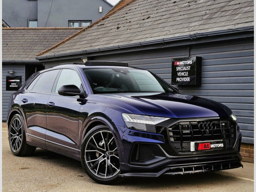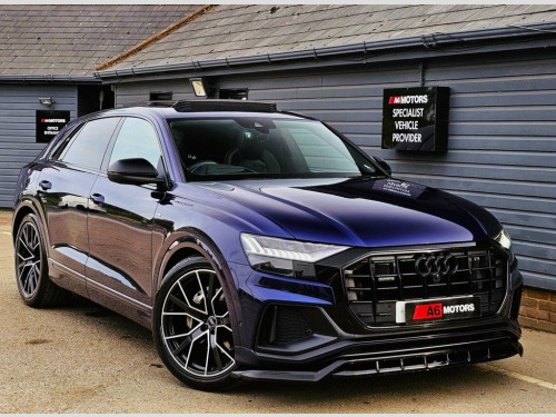 SAME DAY FINANCE AVAILABLE WITH £0 DEPOSIT. CALL OUR FINANCE TEAM FOR A QUOTATION TODAY. REQUEST A PERSONALISED VIDEO TODAY. STUNNING NAVARRA BLUE AUDI Q8 VORSPRIUNG WITH JUST 2 OWNERS FROM NEW BOASTING A FULL AUDI MAIN DEALER SERVICE HISTORY & COMPLIMENTED BY A HUGE FACTORY SPEC & FURTHER BENEFITING FROM HAVING A MAXTON DESIGN BODYKIT. THIS LOVELY EXAMPLE IS SUPPLIED HPI CLEAR & WITH A NATIONWIDE WARRANTY. GOOD CONDITION THROUGH OUT. DRIVES WELL. BEING A VORSPRUNG MODEL IT HAS A HUGE FACTORY SPECIFICATION WHICH INCLUDES PANORAMIC GLASS SUNROOF, HEADS UP DISPLAY. SOFT CLOSURE DOORS, BANG & OLUFSEN SURROUND SOUND, FULL LEATHER INTERIOR WITH FRONT & REAR HEATED SEATS, REAR WINDOW BLINDS, FRONT ELECTRIC & MEMORY SEATS, FRONT MASSAGE SEATS, MULTI FUNCTION STEERING WHEEL, ADAPTIVE CRUISE CONTROL, LANE ASSIST, ELECTRIC HEATED & POWER FOLDING WING MIRRORS, FRONT COOLING SEATS, 360 CAMERA, 3D VIEW CAMERAS, PARK ASSIST, HJEATED STEERING WHEEL, DAB RADIO, BLUETOOTH AUDIO, SAT NAV, APPLE CAR PLAY, ANDROID AUTO, ADAPTIVE AIR SUSPENSION, AMBIENT LIGHTING & MORE. A GREAT EXAMPLE THAT HAS BEEN VERY WELL LOOKED AFTER WITH A TOTAL OF 5 MAIN DEALER VISITS. GREAT CONDITION THROUGH OUT. WILL MAKE FOR AN EXCELLENT FAMILY SUV. Navarra Blue, 2 USB-C Ports with Charging Functionalit, 22in Alloy Wheels - 5-V-Spoke Star Desig, 360 Degree Camera, 4-Way Lumbar Support for Front Seats, AMI - Audi Music Interface, Adaptive Air Sport Suspension, Adaptive Cruise Assist, Adaptive Windscreen Wipers with Integrat, Advanced Key, All-Wheel Steering, Anti-Theft Alarm with Tow-Away Protectio, Anti-Theft Wheel Bolts and Wheel Looseni, Audi Beam, Audi Connect Safety and Service - e-call, Audi Connect with Amazon Alexa Integrati, Audi Drive Select with 7 Modes, Audi Music Interface in the Rear, Audi Pre-Sense Front, Audi Pre-Sense Rear, Audi Side Assist, Audi Smartphone Interface, Audi Virtual Cockpit Plus, Auto Dimming and Frameless