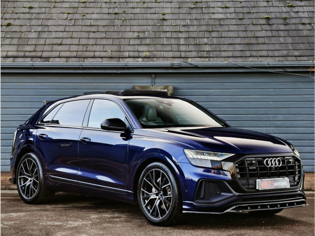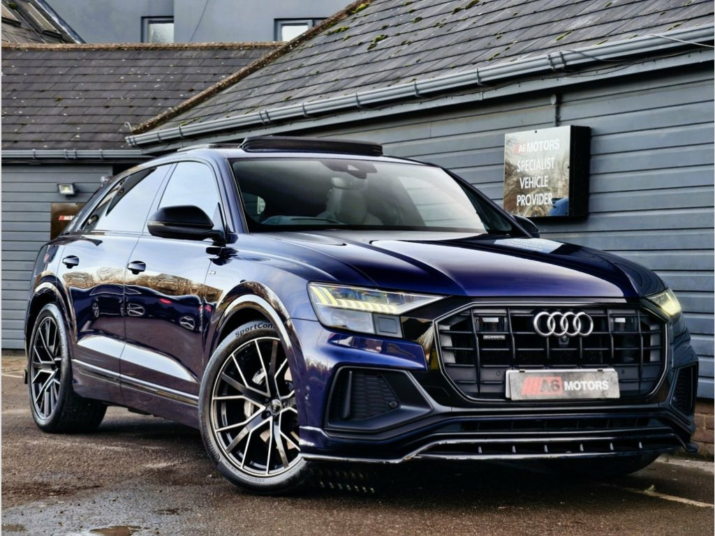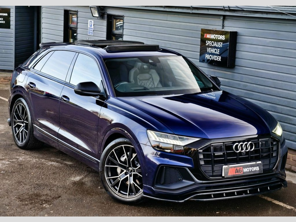 SAME DAY FINANCE AVAILABLE WITH £0 DEPOSIT. CALL OUR FINANCE TEAM FOR A QUOTATION TODAY. REQUEST A PERSONALISED VIDEO TODAY. STUNNING NAVARRA BLUE AUDI Q8 VORSPRUNG EDITION BOASTING A FULL SERVICE HISTORY & COMPLIMENTED BY A BIG FACTORY SPEC FURTHER BENEFITING FROM HAVING A MAXTON DESIGN BODYKIT FITTED. THIS LOVELY EXAMPLE IS SUPPLIED HPI CLEAR & WITH A NATIONWIDE WARRANTY. THE MOST RECENT SERVICE LESS TAN 500 MILES AGO. A WELL LOOKED AFTER EXAMPLE. DRIVES SPOT ON. GOOD TYRES ALL ROUND. BEING A VORSPRUNG MODEL IT IS FULLY LOADED. Bang and Olufsen 3D Advanced Sound Syste, Audi Warranty - Extended to 60 Months or, Navarra Blue, Air Quality Pack, 22in Alloy Wheels - 5-V-Spoke Star Desig, 360 Degree Camera, 48 Volt Mild Hybrid Technology, AMI - Audi Music Interface, Adaptive Air Sport Suspension, Adaptive Cruise Control with Stop&Go, Adaptive Windscreen Wipers, Advanced Key, Airbags - Driver, Airbags - Front Curtain, Airbags - Front Passenger, All-Wheel Steering, Anti Theft Locking Wheel Bolts and Wheel, Anti-Theft Alarm with Tow-Away Protectio, Audi Active Lane Assist, Audi Connect, Audi Connect Safety and Service, Audi Drive Select, Audi HD Matrix LED Headlights, Audi Music Interface in the Rear, Audi Phone Box wit