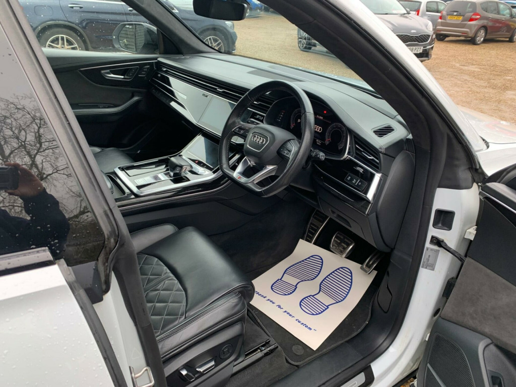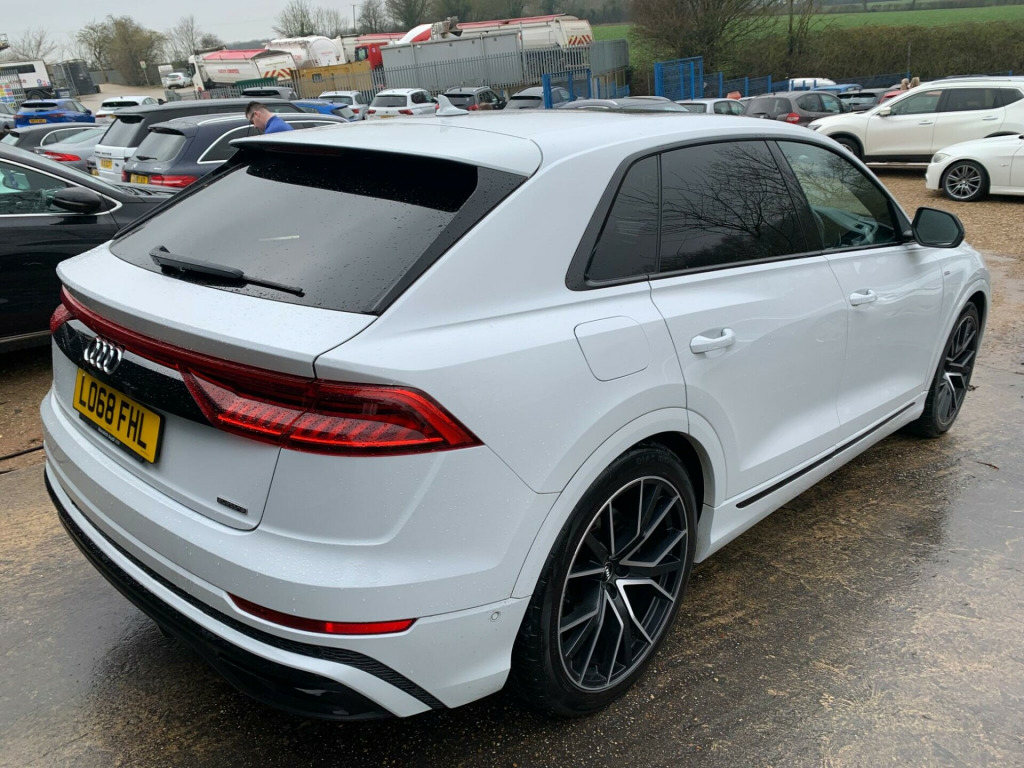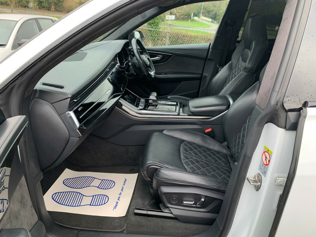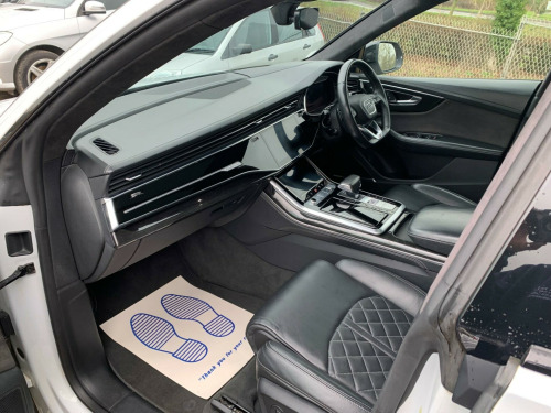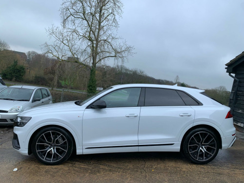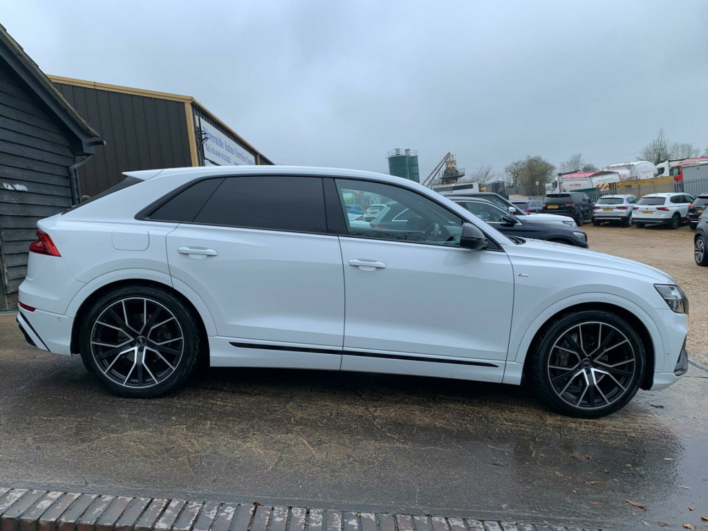 FREE UK DELIVERY - FINANCE AVAILABLE, CONTACT US NOW FOR A NO OBLIGATION QUOTE - CALL NOW TO ARRANGE A TEST DRIVE - PART EXCHANGE WELCOME - ONE YEAR WARRANTY MINIMUM, EXTENDED AVAILABLE, WARRANTY CAN BE REDEEMED AT VAT REGISETERED GARAGE - NO ADMIN FEES - ALL VEHICLES HPI CHECKED - FULL USED CAR INSPECTION MECHANICAL APPRAISAL CARRIED OUT ON ALL VEHICLES BEFORE LEAVING OURSELVES - YOU CAN REST ASSURED YOU'RE MAKING THE RIGHT DECISION WHEN PURCHASING YOUR NEW VEHICLE FROM US - OVER 100 VEHICLES IN STOCK - RIVERSIDE AUTOS LTD FAMILY RUN BUSINESS ESTABLISHED SINCE 2005 -This 2019 Audi Q8 TDI V6 Vorsprung boasts exceptionally low mileage for its age, having covered just 66,618 miles. This premium SUV features a powerful 3.0 litre Euro 6 diesel engine paired with a smooth four wheel drive system, offering a towing weight of 2800 kg. The Vorsprung trim level ensures a wealth of desirable features, including Advanced Key with keyless entry, a stunning panoramic glass sunroof, and the advanced Parking System Plus with front and rear sensors and 360 degree camera assistance.Experience impressive performance with a swift 0-62mph acceleration time of just 6.3 seconds, demonstrating its capability. The Q8 also offers generous boot space, making it practical for everyday use and longer journeys. Inside, the Bang and Olufsen premium sound system provides an immersive audio experience, elevating every drive. These carefully selected features and impressive performance figures set this Audi Q8 apart from other vehicles in its class.. 22in Alloy Wheels - 5-V-Spoke Star Design - Gloss Anthracite Black, 360 Degree Camera, 48 Volt Mild Hybrid Technology, AMI - Audi Music Interface, Adaptive Air Sport Suspension, Adaptive Cruise Control with Stop&Go and Traffic-Jam Assist, Adaptive Windscreen Wipers, Advanced Key, Airbags - Driver, Airbags - Front Curtain, Airbags - Front Passenger, All-Wheel Steering, Anti Theft Locking Wheel Bolts and Wheel Loosening Detection, Anti-Theft Alarm with Tow-Away Protection, Audi Active Lane Assist, Audi Connect, Audi Connect Safety and Service, Audi Drive Select, Audi HD Matrix LED Headlights, Audi Music Interface in the Rear, Audi Phone Box with Wireless Charging, Audi Pre-Sense Front, Audi Pre-Sense Rear, Audi Side Assist, Audi Smartphone Interface, Audi Virtual Cockpit, Auto Dimming and Frameless Rear View Mirror, Bang and Olufsen Premium Sound System, Black Alcantara Headlining, Camera-Based Traffic Sign Recognition, City Assist Pack, Collision Avoidance Assistant, Comfort Front Centre Armrest, Comfort and Sound Package, Coming-Leaving Home Animations in Front and Rear, Cross Traffic Assist Front and Rear, DAB Digital Radio, Deluxe 4-Zone Automatic Climate Control, Door Mirrors - Heated-Electrically Adjustable-Folding and Auto Dimming with Memory Function, Double Sun Visor, Driver and Front Passenger Memory Function for the Electrically Adjustable Front Seats, Dynamic All-Wheel Steering, ESC - Electronic Stabilisation Control inc ABS - ASR and EDL, Electric Sunblinds for the Rear Side Windows and Manual Sunblind for the Rear Window, Electric Windows - Front and Rear, Electrically Adjustable Front Seats with Memory Function for Drivers and Front Passenger, Electrically Adjustable Steering Column, Electromechanical Parking Brake, Electromechanical Power Steering - Speed-Sensitive Provides a Precise Steering Feel at High Speeds and Excellent Assistance when Parking., Exit Warning, Extended LED Interior Lighting Package - Multi-Coloured, Extended Leather Package, Extended Pedestrian Protection, First Aid Kit and Warning Triangle, Front and Rear Floor Mats, Front and Rear Side Airbags with Head Airbag System, Head-Up Display, Headlight Washers, Heat Insulating Glass - Windscreen, Heated Front and Rear Seats, Hill Descent Control, Hill Hold Assist, ISOFIX Child Seat Mounting for the Front Passenger Seat with Front Passenger Airbag Deactivation and ISOFIX Child Seat Mounting and Top Tether for the Outer Rear Seats, Illuminated Sun Visors with Vanity Mirrors, Inlays - Darkened Matt Brushed Aluminium, Keyless Go with Remote Central Locking, Lane Departure Warning with Emergency Assist, Leather Gear Lever, Light and Rain Sensor, Luggage Compartment Sill Protection in Stainless Steel, MMI Navigation Plus with MMI Touch, Natural Voice Recognition, Operating Buttons in Black - Glass Look with Haptic Feedback, Panoramic Glass Sunroof, Parking System Plus - Front and Rear Sensors, Pedals in Stainless Steel, Power Door Closure, Power Operated Tailgate, Pre-Sense Basic, Predictive Efficiency Assistant, Rear Bench Seat Plus, Seat Belt Monitoring, Signature LED Daytime-Running Lights, Steering Wheel - 3-Spoke Leather-Multi-function-Flat Bottomed-Sports-Shift Paddles, Titanium Black Door Mirrors, Titanium Black Styling Pack, Tool Kit, Tour Pack, Turn Assist, Tyre Pressure Loss Indicator, Tyre Repair Kit, quattro All-Wheel Drive, Privacy Glass, Front and Rear Electric Windows, Electric Folding Mirrors, Electric Memory Seats, Automatic Headlamps and Wipers, Bang & Olufsen Sound System, Adaptive Cruise Control, Multi Function Steering Wheel, Digital Dash / Cockpit, Lane Assist, Reverse Camera, Birds Eye View Camera, Dual Zone Climate Control, Heated Seats, Drive Select, Bluetooth, Sat Nav, Apple Car Play, Android Auto, Keyless Start, Cup Holders, Wireless Phone Charging, Panoramic Sunroof, Alcantara Headlining, Quilted Leather Seats, HUD - Heads Up Display, Privacy Glass, 22'' Alloy Wheels.