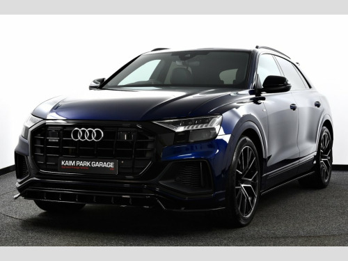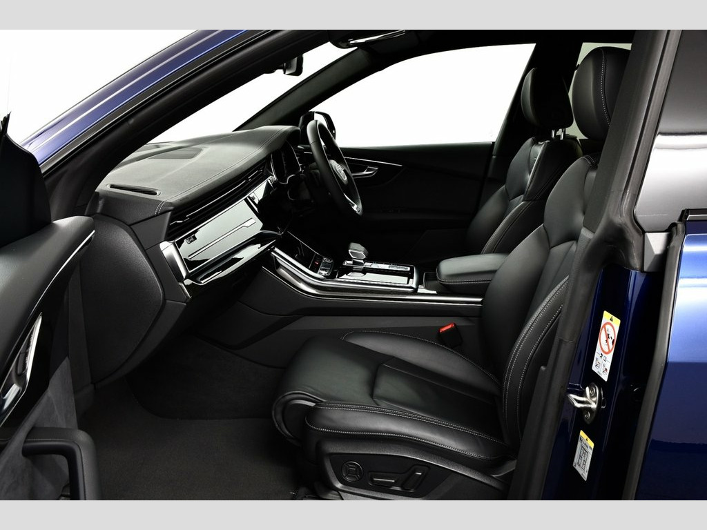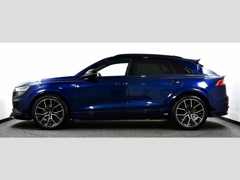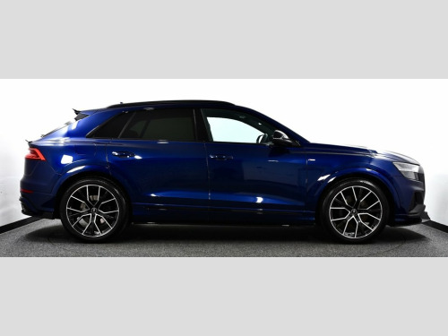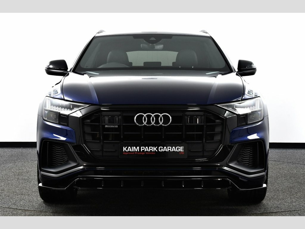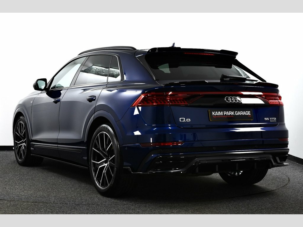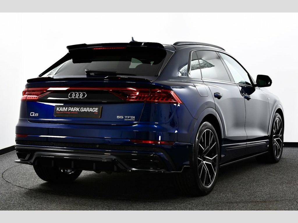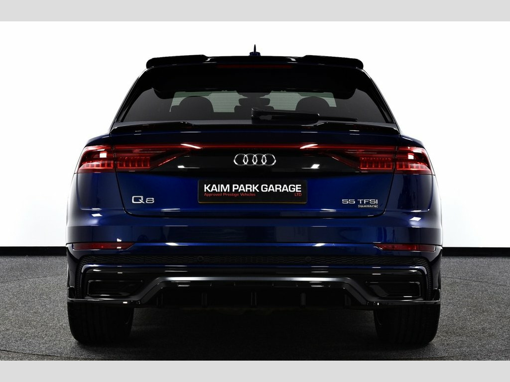 Navarra Blue metallic with Valcona leather - Black with grey stitching + front sports seats S embossed logo, 1 Owner from New covered only 38k miles & backed with Full Audi Service History, We are delighted to offer the market this Beautiful looking Q8 with the rare TFSi engine and Great Spec including £5,100 Extra's! SPECIFICATION INCLUDES - Risper Aero body styling kit in Gloss black, Tour Pack (Adaptive Cruise, Heated 3-Spoke Leather High Multi-Function Steering Wheel with Gear-Shift Paddles), 22in Alloy Wheels - 5-V-Spoke Star Design - Gloss Anthracite Black, Black Roof Rails, Navarra Blue paint option, Audi HD Matrix LED headlights with dynamic front and rear indicators, Titanium Black Styling Pack, Electrically folding auto dimming/adjustable/heated door mirrors with memory function, LED side indicators and kerb view function for passenger side, Privacy glass - dark tinted rear and rear side windows from B-pillar backwards, Audi drive select, Power operated tailgate, Rear view camera, Quattro all wheel drive with self locking centre differential, Adaptive sport air suspension, 48V Mild hybrid technology, Audi virtual cockpit - 12.3" high resolution LCD display with fully customisable instrument cluster, Audi smartphone interface includes wireless Apple carplay/Android Auto, 10.1" and 8.6" Dual colour touchscreens, Audi connect with Amazon Alexa Integration, MMI navigation plus with MMI touch, Natural voice recognition, Audi music interfac Risper Aero body styling kit in Gloss bl, Tour Pack, 22in Alloy Wheels - 5-V-Spoke Star Desig, Black Roof Rails, Navarra Blue, Heated 3-Spoke Leather High Multi-Functi