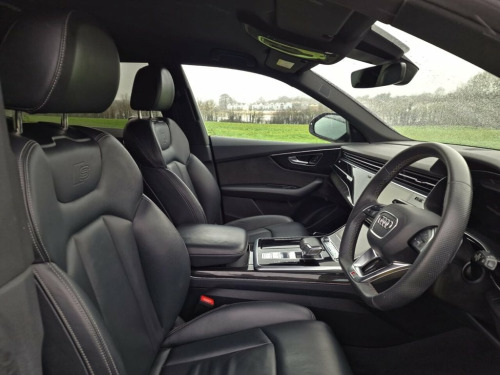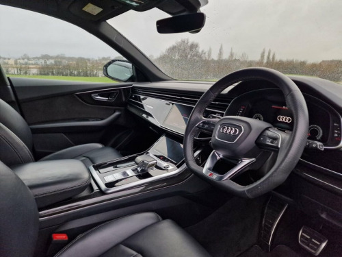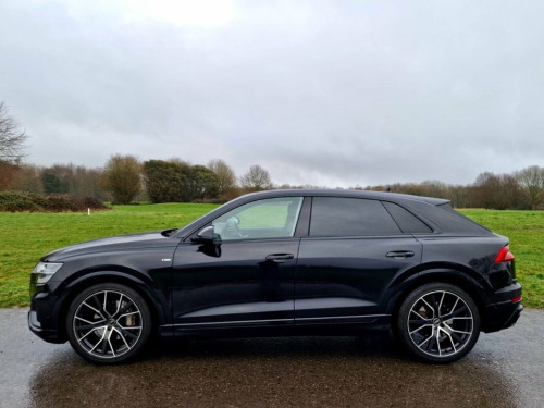 This 2021 Audi Q8 TFSI V6 Black Edition boasts a single owner from new, offering a lovely example of this luxurious SUV. Powered by a potent 3.0 litre petrol engine and featuring Audi's renowned four wheel drive system, this Euro 6 compliant vehicle delivers both performance and efficiency. The Black Edition trim enhances its striking appearance, while the Comfort and Sound Package adds significant refinement. This includes keyless entry for effortless access, a luxury branded sound system for an immersive audio experience, and advanced parking assistance with a 360 degree camera for complete peace of mind. Further enhancing its practicality, a rear view camera and Parking System Plus with front, rear, and side sensors provide comprehensive visibility. The Audi Smartphone Interface seamlessly integrates your Android Auto or Apple CarPlay, keeping you connected on every journey. The performance of this Q8 is truly impressive, accelerating from 0 to 60 miles per hour in just 5.9 seconds, a testament to its powerful V6 engine. This swift acceleration indicates a superior driving experience compared to many other vehicles in its class. The inclusion of a light and rain sensor ensures automatic headlight activation, adapting to changing conditions for enhanced safety. With a substantial towing weight of 2800 kg, this Audi Q8 is not only a stylish and dynamic SUV but also a highly capable and versatile vehicle for a variety of needs. 22in Alloy Wheels - 5-Twin-Spoke Design, 4-Way Lumbar Support for Front Seats, Adaptive Air Sport Suspension, AMI - Audi Music Interface, Anti-Theft Alarm with Tow-Away Protectio, Anti-Theft Wheel Bolts and Wheel Looseni, Audi Connect Safety and Service - e-call, Audi Connect with Amazon Alexa Integrati, Audi Drive Select with 7 Modes, Audi Pre-Sense Front, Audi Smartphone Interface, Audi Sound System, Audi Virtual Cockpit - 12.3in High Resol, Auto Dimming and Frameless Rear View Mir, Black Cloth Headlining, Bluetooth Interface, Comfort and Sound Package, Comfort Front Centre Armrest, Coming-Leaving Home Animations in Front , Cruise Control with Speed Limiter, DAB Digital Radio, Deluxe 4-Zon