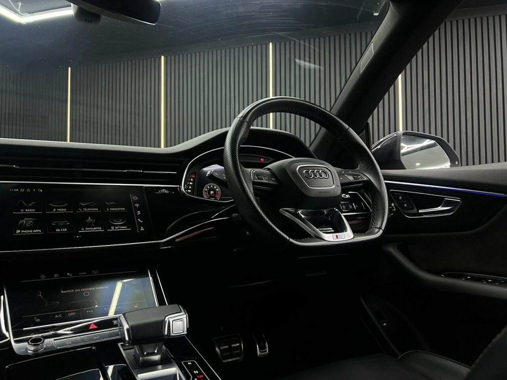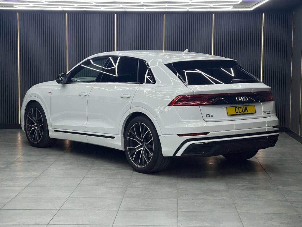 Audi Q8 55 TFSI Black Edition – Powerful, Luxurious & Striking Reg: DG72 CBY Price: £43,963 Mileage: 33,757 miles Experience commanding performance and head-turning style with this Audi Q8 55 TFSI Black Edition. Powered by a refined 3.0 V6 TFSI petrol engine producing 340 PS, paired with the smooth Tiptronic automatic gearbox and legendary quattro all-wheel drive, this Q8 delivers effortless pace with premium comfort. ? Key Features & Highlights: 3.0 V6 TFSI Petrol Engine – 340 PS Tiptronic Automatic Transmission quattro All-Wheel Drive Black Edition Styling Audi Virtual Cockpit Satellite Navigation Rear View Camera Premium Bang & Olufsen Sound System Heated Leather Seats Adaptive Cruise Control Electric Tailgate Euro 6 (Stop/Start) compliance With just 33,757 miles, this Audi Q8 combines bold design, advanced technology, and powerful petrol performance—ideal for drivers wanting luxury with presence. Sophisticated design. Strong performance. Premium Audi quality. Contact us today to arrange a viewing or test drive. Pure White, City Assist Pack, 22in Alloy Wheels - 5-V-Spoke Star Desig, 22in Alloy Wheels - 5-Twin-Spoke Design, 4-Way Lumbar Support for Front Seats, AMI - Audi Music Interface, Adaptive Air Sport Suspension, Anthracite Black Door Mirrors, Anthracite Black Styling Pack, Anti-Theft Alarm with Tow-Away Protectio, Anti-Theft Wheel Bolts and Wheel Looseni, Audi Connect (3 Year Subscription From N, Audi Connect Safety and Service - e-call, Audi Connect with Amazon Alexa Integrati, Audi Drive Select with 7 Modes, Audi Pre-Sense Front, Audi Smartphone Interface, Audi Sound System, Audi Virtual Cockpit - 12.3in High Resol, Auto Dimming and Frameless Rear View Mir, Black Cloth Headlining, Comfort Fr