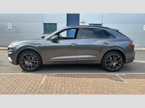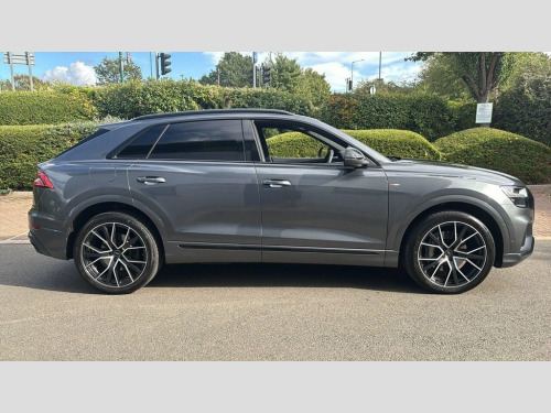 This 2022 Audi Q8 TFSI V6 Black Edition offers a compelling blend of performance and sophisticated technology. As a Euro 6 compliant vehicle, it is powered by a robust 3.0 litre petrol engine, delivering impressive acceleration from 0 to 62mph in just 5.9 seconds. This Four Wheel Drive model boasts a substantial towing weight of 2800 kg, making it a versatile choice for various needs with a lovely specification Inside, you'll find the convenience of the Audi Phone Box with Wireless Charging, an Electrically Adjustable Front Seat with Driver Memory Function, and a Rear View Camera complemented by Parking System Plus for effortless manoeuvring. The Light and Rain Sensor ensures optimal visibility, automatically activating headlights when needed. The Q8 TFSI V6 Black Edition stands out with its generous boot space, providing ample room for luggage or shopping. The inclusion of features like the wireless phone charging and the memory function for the front seats demonstrates a higher level of comfort and convenience compared to many vehicles in its class. These thoughtful additions, alongside the advanced parking assistance systems, highlight how this Audi Q8 is designed to enhance your driving experience. 22in Alloy Wheels - 5-Twin-Spoke Design, 4-Way Lumbar Support for Front Seats, AMI - Audi Music Interface, Adaptive Air Sport Suspension, Anti-Theft Alarm with Tow-Away Protectio, Anti-Theft Wheel Bolts and Wheel Looseni, Audi Connect, Audi Connect Safety and Service - e-call, Audi Drive Select with 7 Modes, Audi Phone Box with Wireless Charging, Audi Pre-Sense Front, Audi Smartphone Interface, Audi Sound System, Audi Virtual Cockpit - 12.3in High Resol, Auto Dimming and Frameless Rear View Mir, Black Cloth Headlining, Comfort Front Centre Armrest, Coming-Leaving Home Animations in Front , Cruise Control with Speed Limiter, DAB Digital Radio, Deluxe 4-Zone Automatic Climate Control, Door Mir