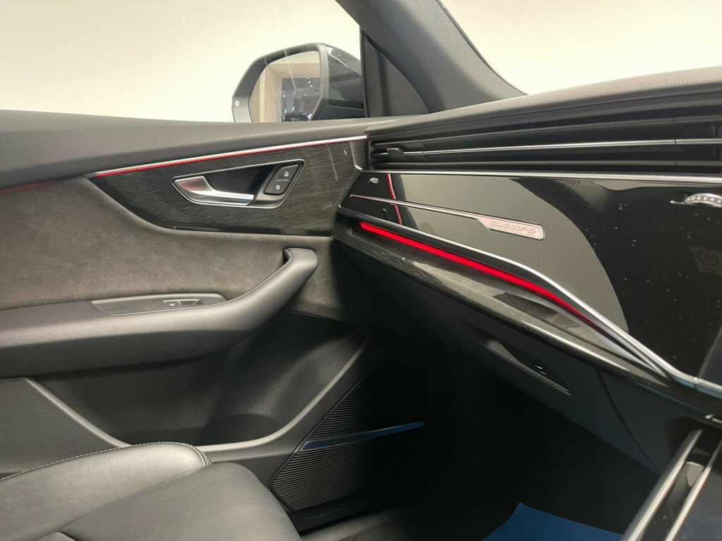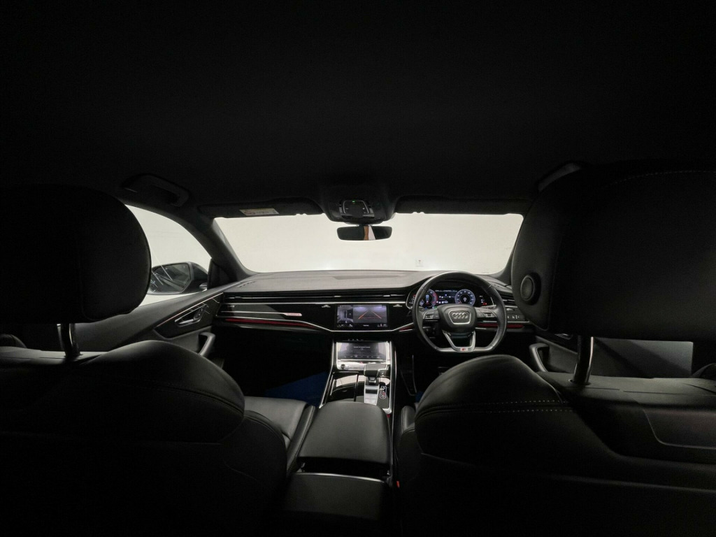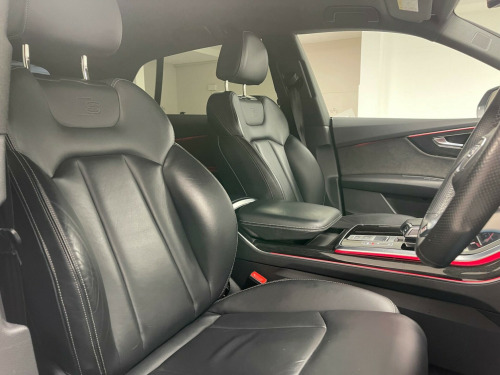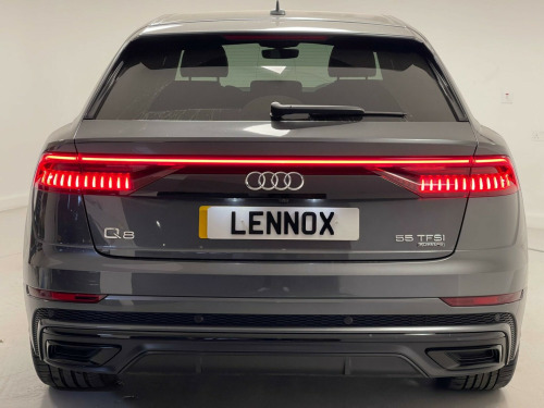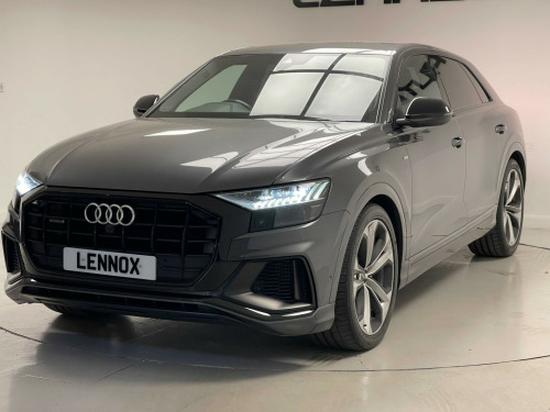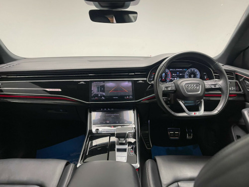 This 2021 Audi Q8 TFSI V6 Black Edition boasts exceptionally low mileage for its age, having covered just 31,694 miles. This premium SUV features a powerful 3.0 litre petrol engine paired with a smooth four wheel drive system, meeting Euro 6 emissions standards. The Black Edition trim enhances its sophisticated appearance. Inside, you'll find a host of convenient features including electrically adjustable front seats with a driver memory function, a deluxe four zone automatic climate control system, and a rear view camera integrated with parking assistance. The light and rain sensor automatically adjusts headlights, while the Parking System Plus provides front and rear sensors for confident manoeuvring.The Audi Q8 TFSI V6 Black Edition offers impressive performance, accelerating from 0 to 62 miles per hour in a swift 5.9 seconds, demonstrating its dynamic capabilities. Its substantial towing weight of 2800 kg makes it a versatile choice for various needs. Furthermore, the generous boot space ensures ample room for luggage or shopping, making it a practical option for families and adventurers alike. These attributes collectively position this Q8 as a compelling choice, offering a superior blend of performance, comfort, and utility compared to other vehicles in its class. in alloy wheels - 5-twin-spoke design, 4-way lumbar support for front seats, ami - audi music interface, adaptive air sport suspension, anti-theft alarm with tow-away protection, anti-theft wheel bolts and wheel loosening warning, audi connect, audi connect safety and service - e-call, audi drive select with 7 modes, audi phone box with wireless charging, audi pre-sense front, audi smartphone interface, audi sound system, audi virtual cockpit - 12.3in high resolution lcd display, auto dimming and frameless rear view mirror, black cloth headlining, comfort front centre armrest, coming-leaving home animations in front and rear, cruise control with speed limiter, dab digital radio, deluxe 4-zone automatic climate control, door mirrors - electrically adjustable - heated - folding - automatically dimming with memory function and integrated led indicators with kerb view function for passenger side, driver - front passenger - front side and curtain airbag system, esc - electronic stabilisation control inc abs - asr and edl, electric windows - front, electrically adjustable front seats with driver memory function, electromechanical parking brake, electromechanical power steering, first aid kit and warning triangle, front sports seats with s embossed logo, front sun visors with illuminated vanity mirrors, front and rear floor mats, hd matrix led headlights and dynamic front and rear indicators, headlight washers, heated front seats, hill descent control, hill hold assist, isofix child seat mounting for front passenger, illuminated door sill trims with s line logo, keyless go with remote central locking, led interior ambient lighting, lane departure warning, light and rain sensor, luggage compartment sill protection in stainless steel, mmi navigation plus including mmi touch, natural voice recognition, operating buttons in black - glass look, parking system plus - front and rear sensors, pedals in stainless steel, platinum grey front spoiler lip and diffuser insert with honeycomb grid in black, power operated tailgate, privacy glass - dark-tinted rear and rear-side windows - from b-pillar backwards, quattro with self-locking centre differential, rear bench seat plus, rear-view camera, seat belt monitoring, signature led daytime-running lights, standard pedestrian protection measures, steering wheel - 3-spoke leather-multi-function-flat bottomed-sports-shift paddles, titanium black door mirrors, titanium black styling pack, tool kit, tyre pressure loss indicator, tyre repair kit, windshield with heat insulated glass