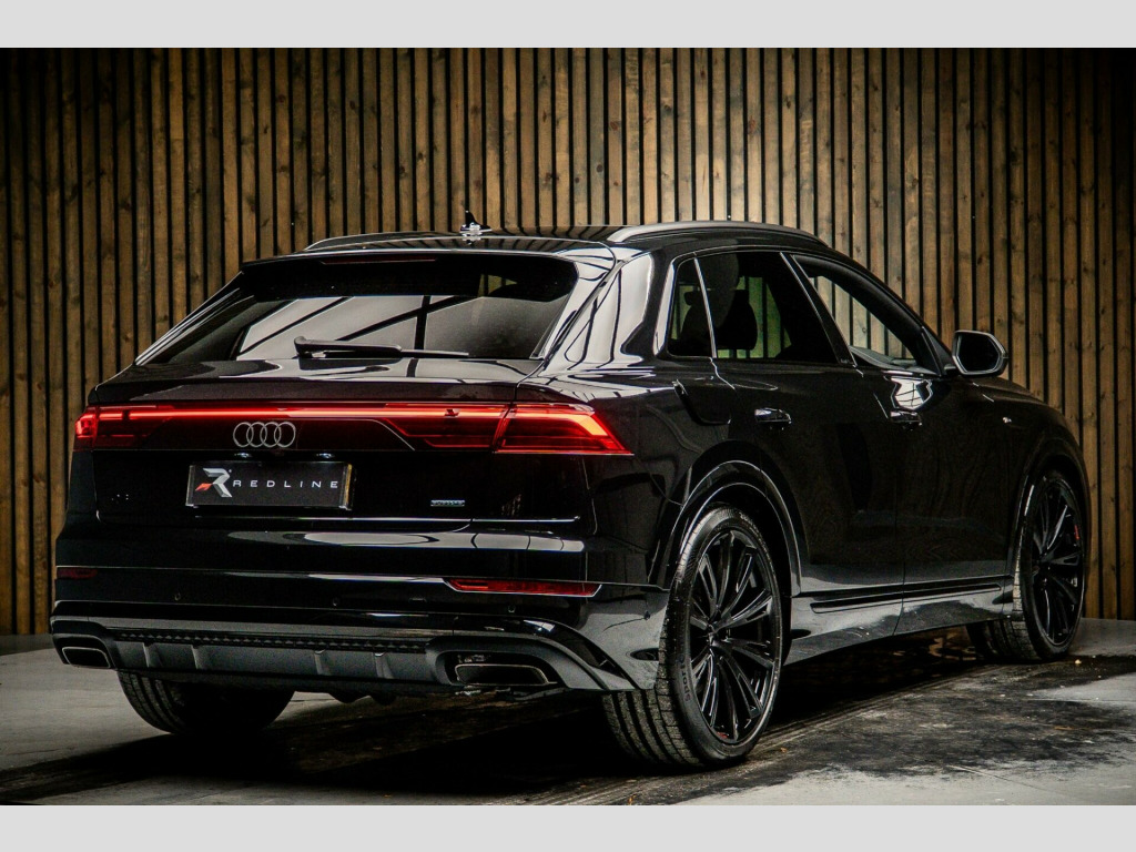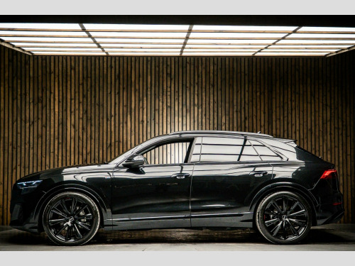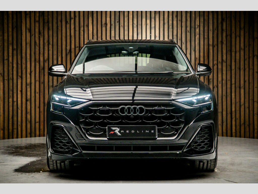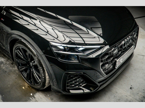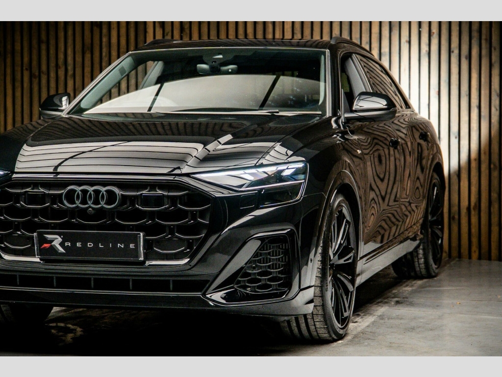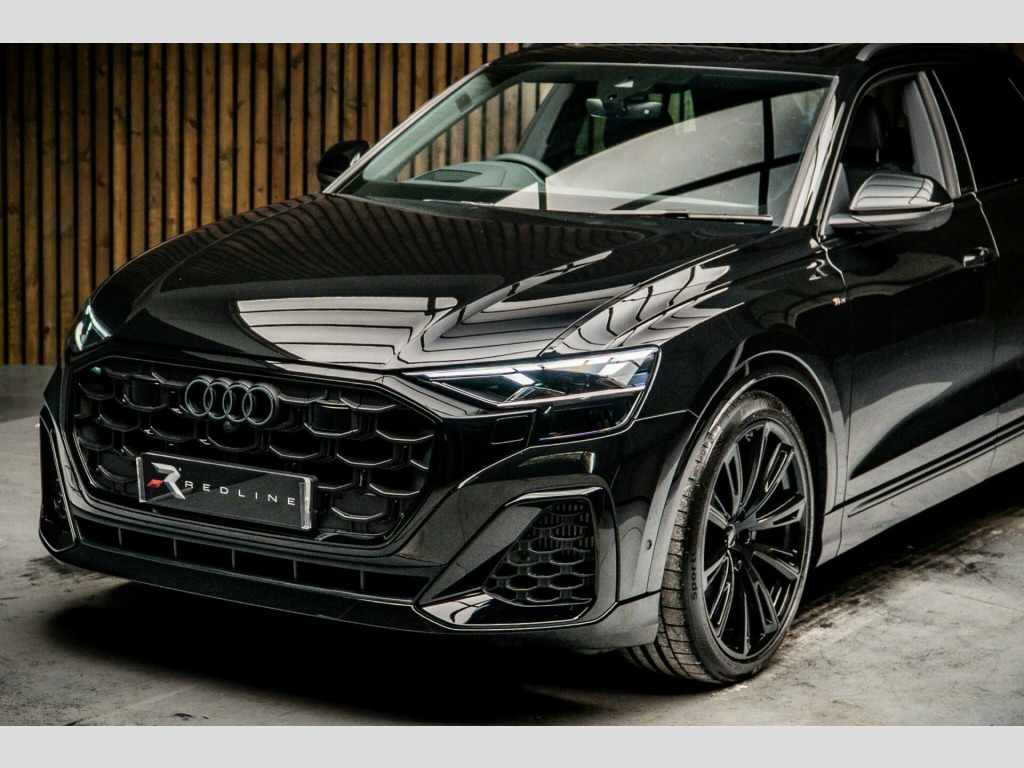 With an exceptionally low mileage of just 175 miles, this 2025 Audi Q8 TFSI V6 Black Edition represents a remarkable find. This striking example, finished in the sought after Black Edition trim, boasts a powerful 3.0 litre petrol engine paired with Audi's renowned four wheel drive system, ensuring confident performance in all conditions. As a Euro 6 compliant vehicle, it meets stringent emission standards. Its impressive towing weight of 3500 kg makes it a versatile choice for those needing to transport trailers or caravans.The Q8 TFSI V6 Black Edition comes equipped with the comprehensive Technology Pack Pro, enhancing your driving experience with features such as air conditioning, a head up display, and a luxury branded sound system for immersive audio. Enjoy the open air with the opening panoramic glass sunroof, and manoeuvre with ease thanks to the 360 degree parking assistance camera. The striking 23 inch Audi Sport alloy wheels in a black trapezoidal style, carbon exterior door mirrors, and black roof rails further accentuate its bold aesthetic. This model also offers generous boot space, perfect for luggage or shopping. Its acceleration from 0 to 62mph in a swift 5.6 seconds demonstrates its dynamic capabilities, setting it apart from many similar vehicles. This single owner vehicle is in pristine condition, reflecting its minimal use.. 2-Zone Automatic Climate Control, 22in Alloy Wheels - Audi Sport - 10-Y-Spoke Style - Black Metallic, AMI - Audi Music Interface - 2 USB-C Ports with Charge and Data Functions, Adaptive Air Sport Suspension, Anthracite Black Door Mirrors, Anti-Theft Alarm with Tow-Away Protection, Anti-Theft Wheel Bolts and Wheel Loosening Warning, Audi Beam, Audi Connect Navigation and Infotainment (3 Year Subscription From New), Audi Connect Safety and Service - e-call, Audi Connect with Amazon Alexa Integration, Audi Drive Select with 7 Modes, Audi Phone Box Light, Audi Pre-Sense Front, Audi Smartphone Interface, Audi Sound System, Audi Virtual Cockpit - 12.3in High Resolution LCD Display, Auto Dimming and Frameless Rear View Mirror, Black Cloth Headlining, Black Exhausts, Black Styling Pack Plus, Bluetooth Interface, Camera Based Traffic Sign Recognition, Convenience Key, Cruise Control with Speed Limiter, DAB Digital Radio, Daytime Running Lights, Door Mirrors - Electrically Adjustable - Heated - Folding - Automatically Dimming with Memory Function and Integrated LED Indicators with Kerb View Function for Passenger Side, Driver - Front Passenger - Front Side and Curtain Airbag System, ESC - Electronic Stabilisation Control inc ABS - ASR and EDL, Electric Windows - Front, Electromechanical Parking Brake, Electromechanical Power Steering, First Aid Kit and Warning Triangle, Front Sun Visors with Illuminated Vanity Mirrors, Front and Rear Floor Mats, HD Matrix LED Headlights and Dynamic Front and Rear Indicators, Headlight Washers, Heated Front Seats, Hill Descent Control, Hill Hold Assist, ISOFIX Child Seat Mounting for Front Passenger, Illuminated Door Sill Trims with S Line Logo, Inlays - Oak - Grey, Keyless Go with Remote Central Locking, LED Interior Ambient Lighting, LED Rear Lights Plus, Lane Departure Warning, Light and Rain Sensor, Loading Edge Protection in Stainless Steel, Luggage Compartment Sill Protection in Stainless Steel, MMI Navigation Plus including MMI Touch, Natural Voice Recognition, Operating Buttons in Black - Glass Look, Parking System Plus with 360 Degree Display - Front - Rear and Side Sensors, Pedals in Stainless Steel, Power Operated Tailgate, Privacy Glass - Dark-Tinted Rear and Rear-Side Windows - From B-Pillar Backwards, Quattro with Self-Locking Centre Differential, Rear Bench Seat Plus, Rear-View Camera, Seat Belt Monitoring, Singleframe Mask in Black, Standard Pedestrian Protection Measures, Steering Wheel - 3-Spoke Leather-Multi-function-Flat Bottomed-Sports-Shift Paddles, Tool Kit, Tyre Pressure Loss Indicator, Tyre Repair Kit, Windshield with Heat Insulated Glass, Wireless Charging, Technology Pack Pro, 23in Alloy Wheels - Audi Sport - 10-Spoke Trapezoidal Style - Black, Black Roof Rails, Panoramic Glass Sunroof, Carbon Exterior Door Mirrors.