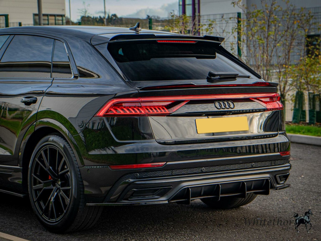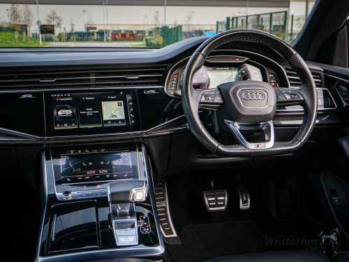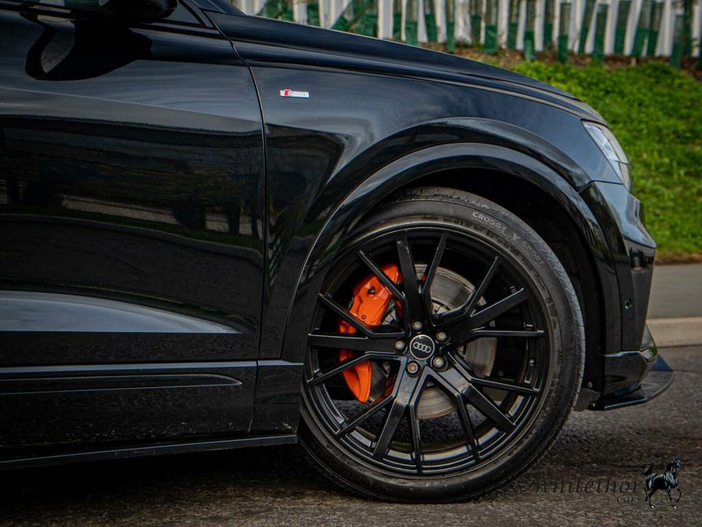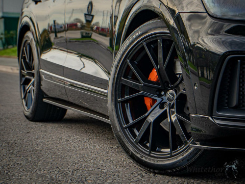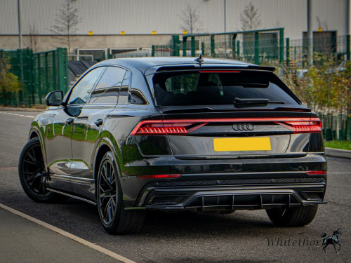 FREE DELIVERY WITHIN 200 MILES – Here we have a stunning Audi Q8 Black Edition finished in Black Metallic. This being the Black Edition trim means it comes with fantastic spec from the factory, but this example also boasts a plethora of optional extras such as: 22in Alloy Wheels -- Comfort and Sound Package (Keyless Entry and Start, Ambient Lighting, 360 View Camera, Bang & Olufsen Sound System, Rear Full Autopark, and more) -- Valcona Leather in Black -- Exterior Gloss Black Kit -- and more. This car has had 4 services in total, all carried out by Audi, last at 66,595 miles. The MOT expires February 2027. 3 Month £2000 Claim Limit Warranty is included with the sale but the option to upgrade to a 12M, 24M, & 36M £5000 Claim Limit Nation Wide Premium Autoguard Warranty with Breakdown Cover is available. Multiple Finance Options, Competitive Part Exchange Prices. All Cars Are HPI, MotorCheck & Experian Clear. Further Vehicle Delivery Options Also Available. All Rights Reserved - Whitethor cars exercise all reasonable care and skill in providing you with vehicle information and data. The specification is attained through HPI, Experian & Autotrader VRM. Options Sold as packs may be shown individually, spec check is a guide so please contact us or physically verify any info that is crucial.