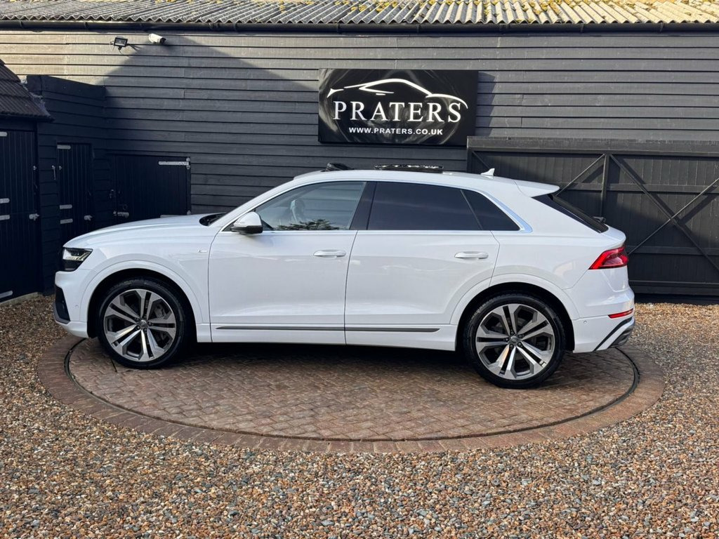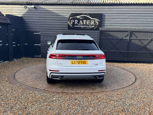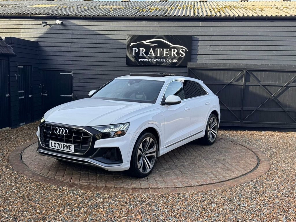 2020 70 Reg AUDI Q8 3.0 TFSI V6 55 S line SUV 5dr Petrol Tiptronic quattro Euro 6 (s/s) (340 ps) 59050 Miles with Good service history Full leather interior Electric windows Heated seats Air-con climate control Cruise control Panoramic roof Alloy Wheels Sat-Nav Reverse camera Tinted windows Alloy Wheels Tinted windows Px Welcome Finance Available Please call anytime 07739836672 - 07979953776 Open 7 Days Week 2-Zone Automatic Climate Control, 21in Alloy Wheels - 5-V-Spoke S Design -, 4-Way Lumbar Support for Front Seats, AMI - Audi Music Interface, Adaptive Air Sport Suspension, Aluminium Window Trims, Anti-Theft Alarm with Tow-Away Protectio, Anti-Theft Wheel Bolts and Wheel Looseni, Audi Connect, Audi Connect Safety and Service - e-call, Audi Drive Select with 7 Modes, Audi Phone Box with Wireless Charging, Audi Pre-Sense Front, Audi Smartphone Interface, Audi Sound System, Audi Virtual Cockpit - 12.3in High Resol, Auto Dimming and Frameless Rear View Mir, Black Cloth Headlining, Body Coloured Door Mirrors, Comfort Front Centre Armrest, Coming-Leaving Home Animations in Front , Cruise Control w